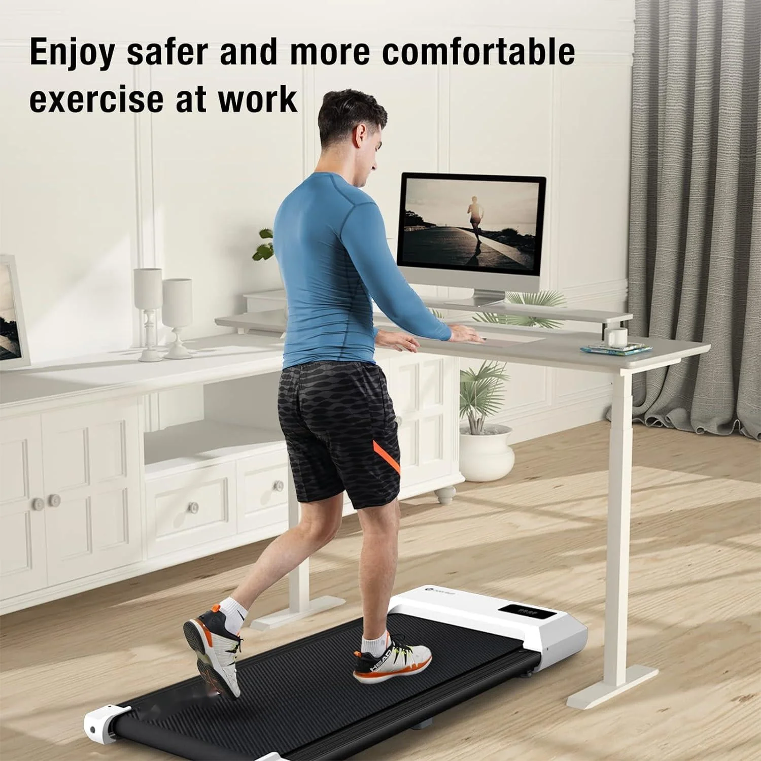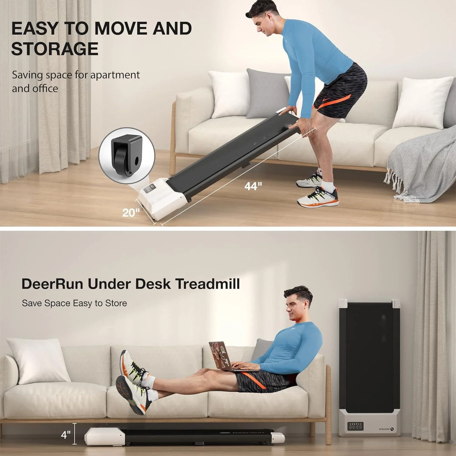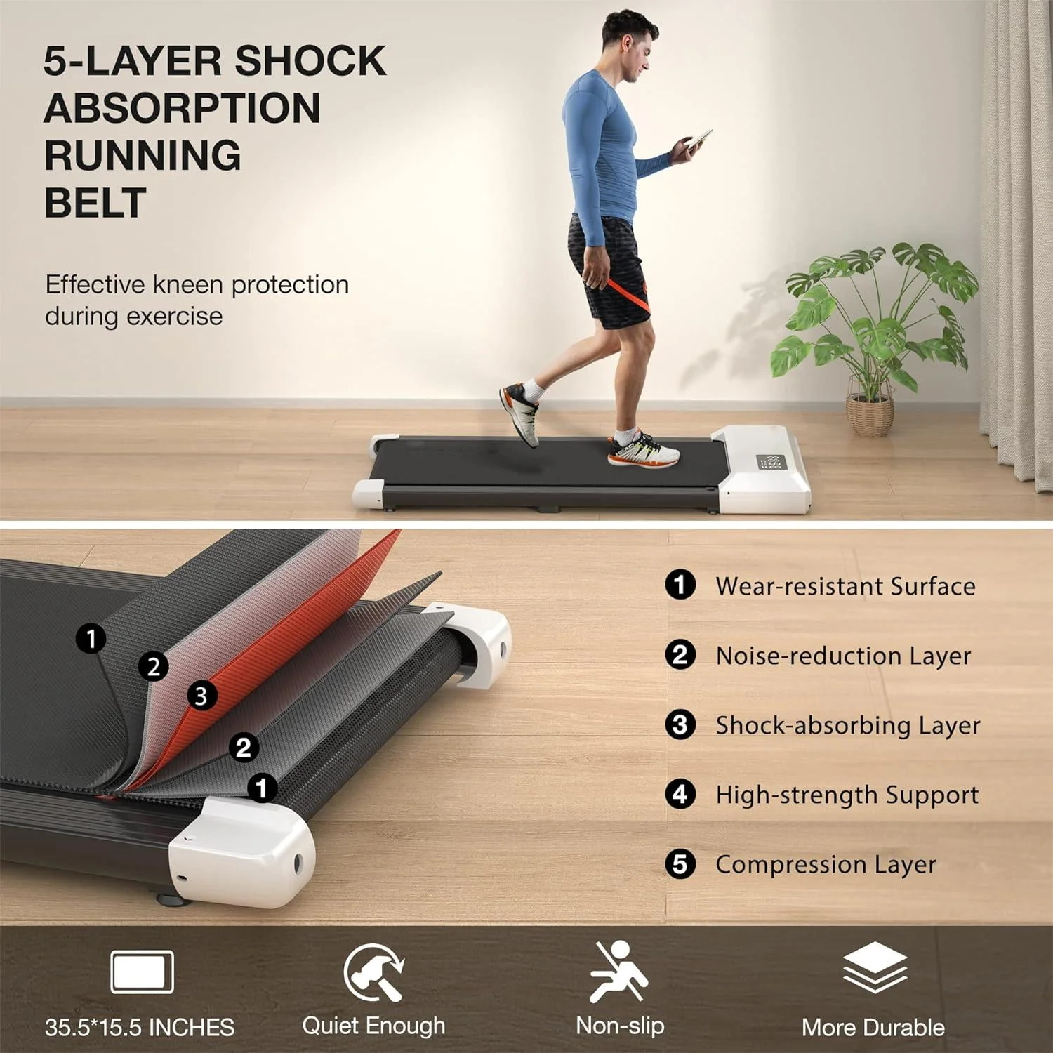 SupeRun Under Desk Treadmill, 35.5*15.5 Walking Area Walking Pad for Home/Office, Portable Walking Treadmill 2.5HP, 2 in 1 Electric Desk Treadmill with Remote Control and LED Display