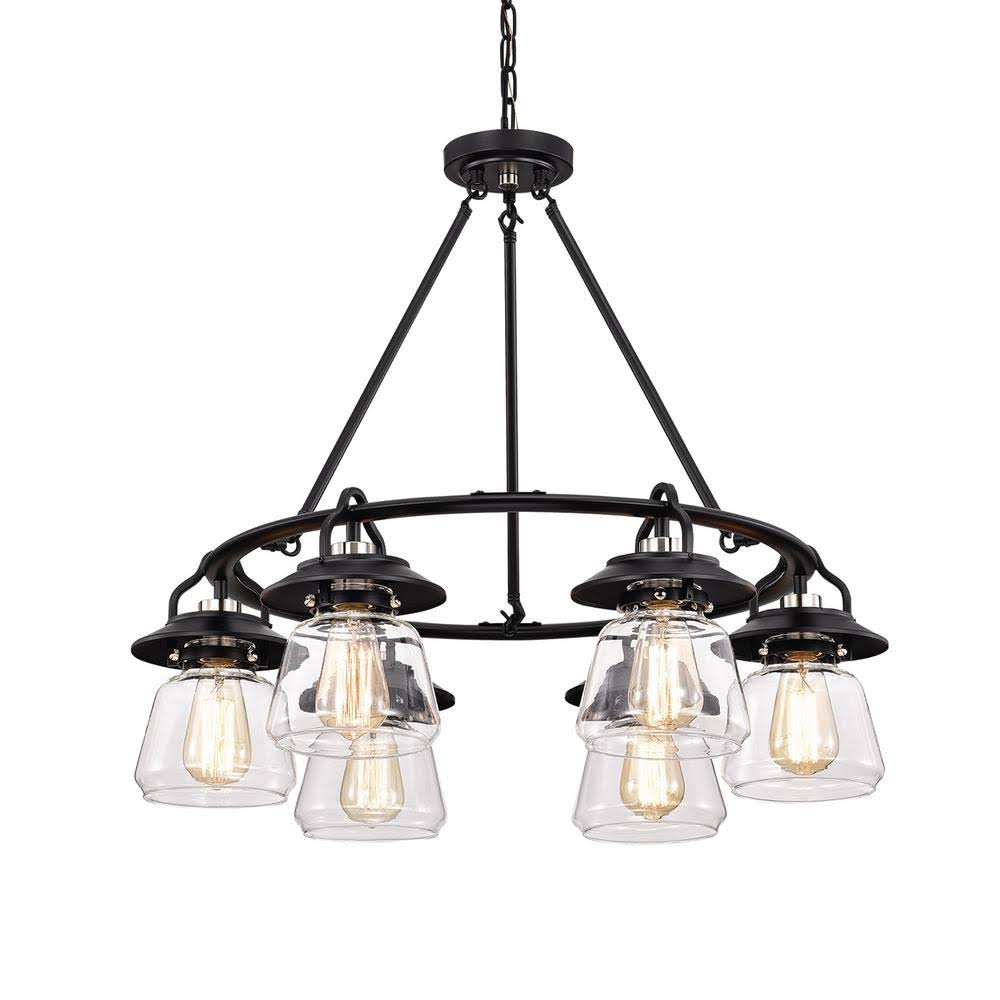 Edvivi 6-Light Antique Black Wagon Wheel Chandelier with Glass Shade - Avayadevconnect