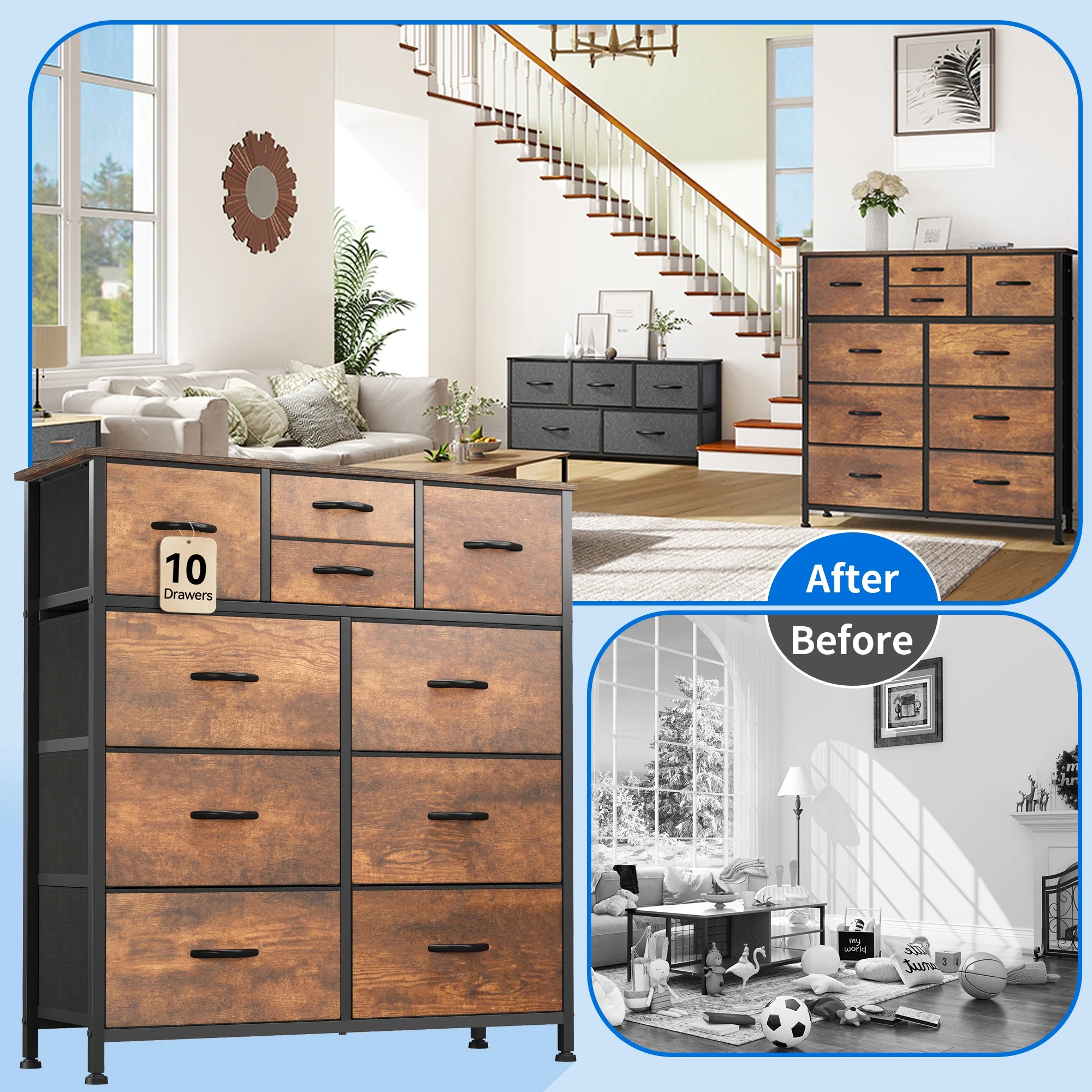 Dextrus 10 Drawer Dresser, Dresser for Bedroom, Fabric Storage Dresser, Chest of Drawers for Living Room, Hallway, Closets & Nursery