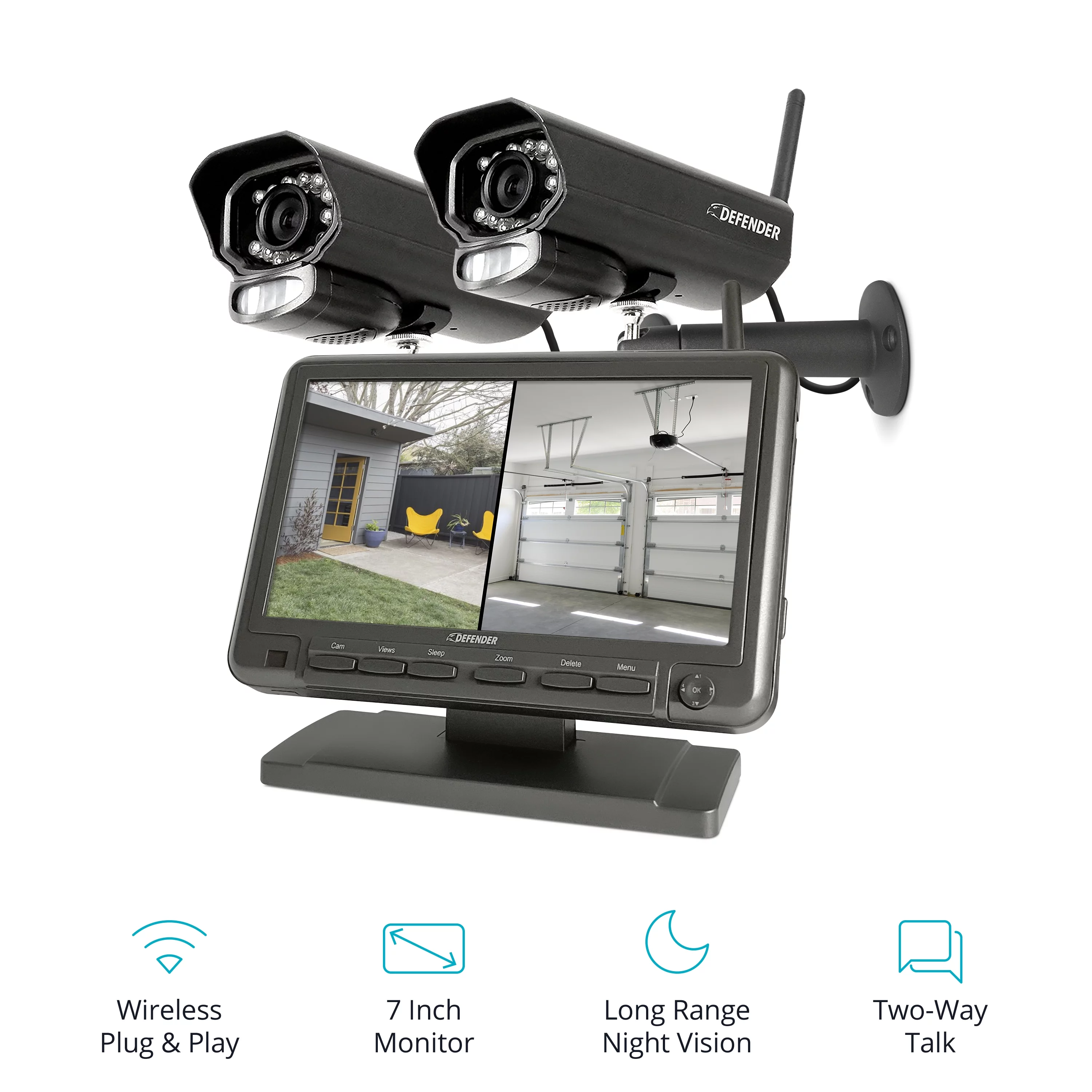 Defender PhoenixM2 Non Wi-Fi. Plug-in Power. Security Camera System with 7 Display Monitor and 2 Long-Range Night Vision Cameras, 32GB SD Card Recording, Plug & Play
