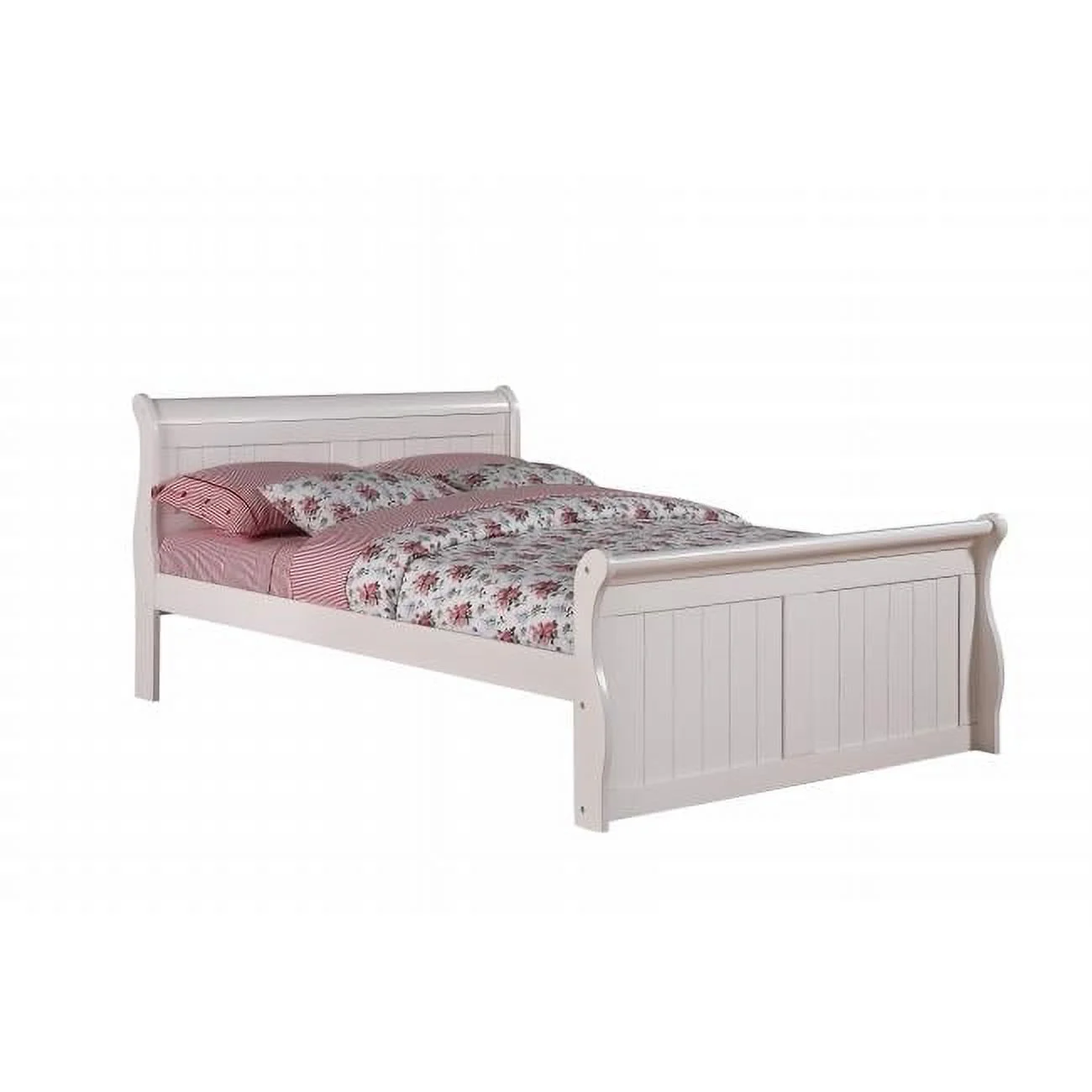 Full Sleigh Bed with Slat-Kits Mattress Ready - White