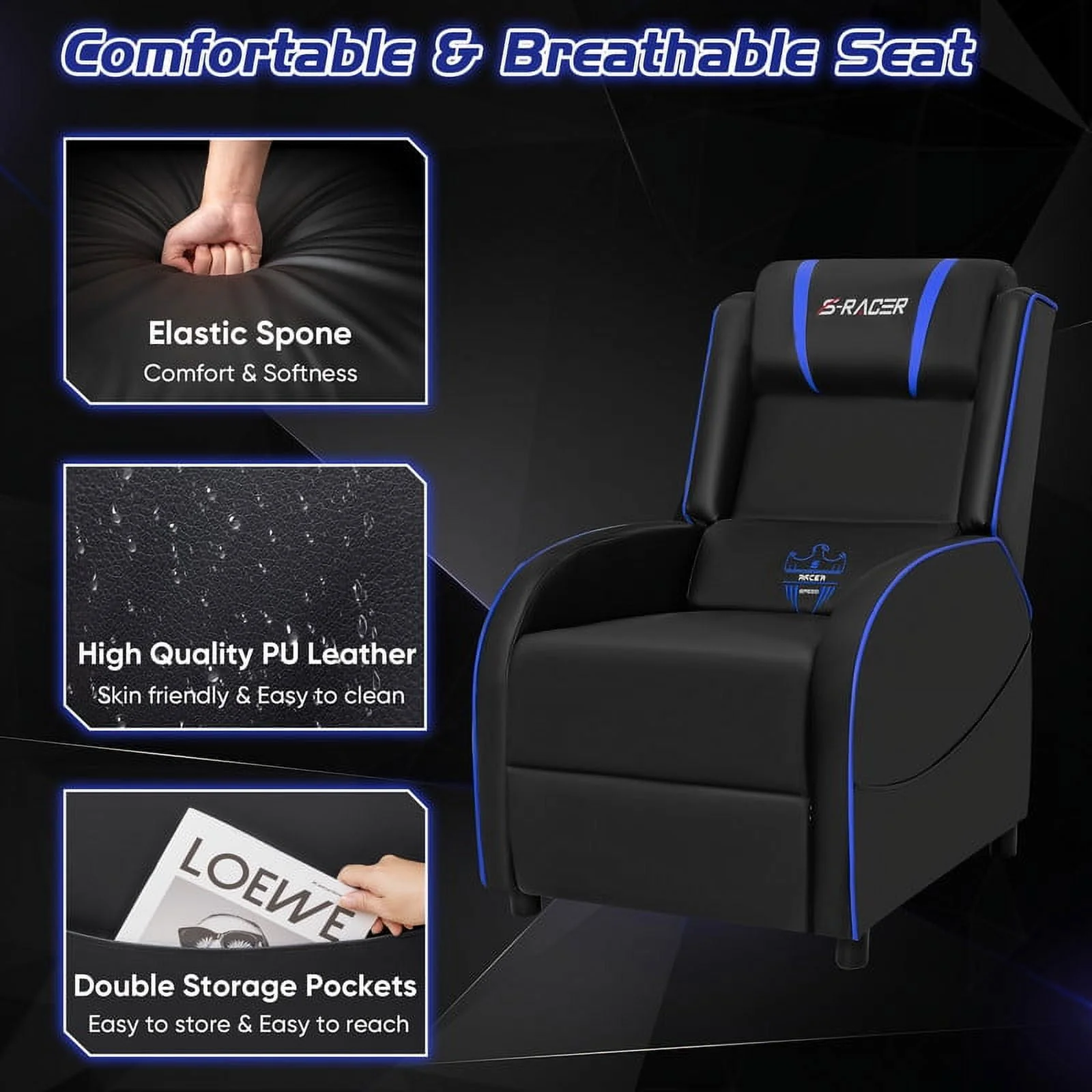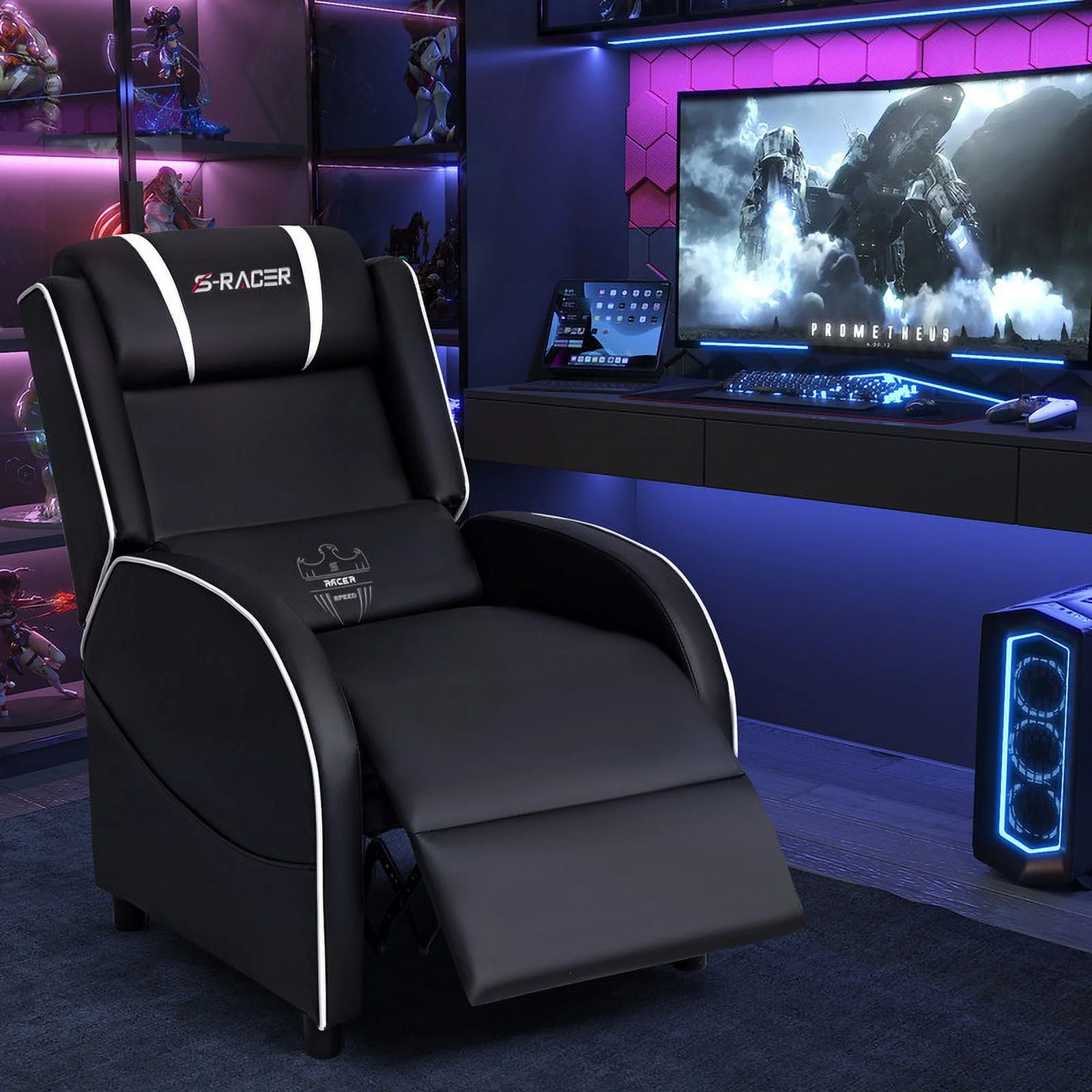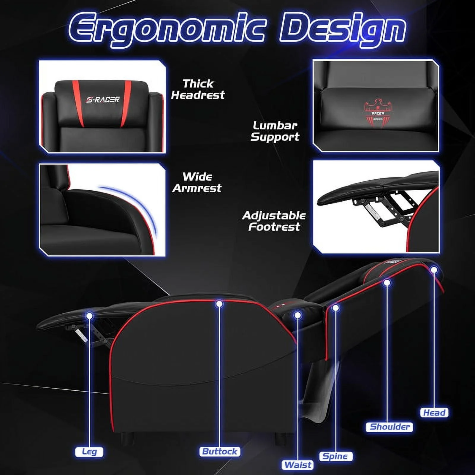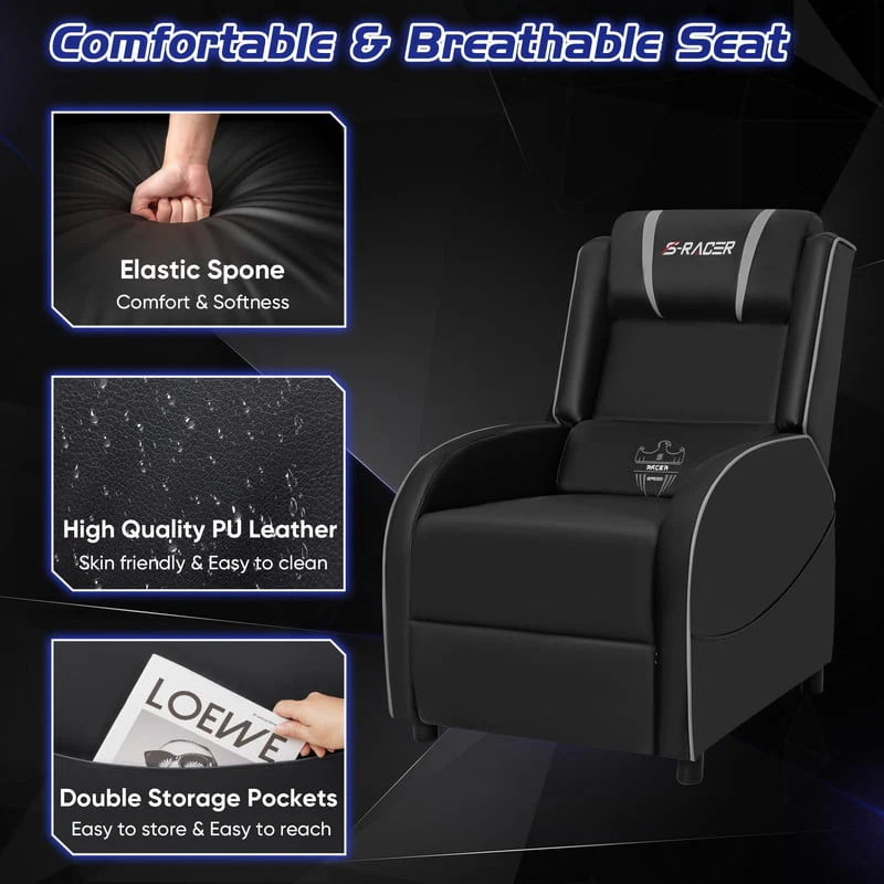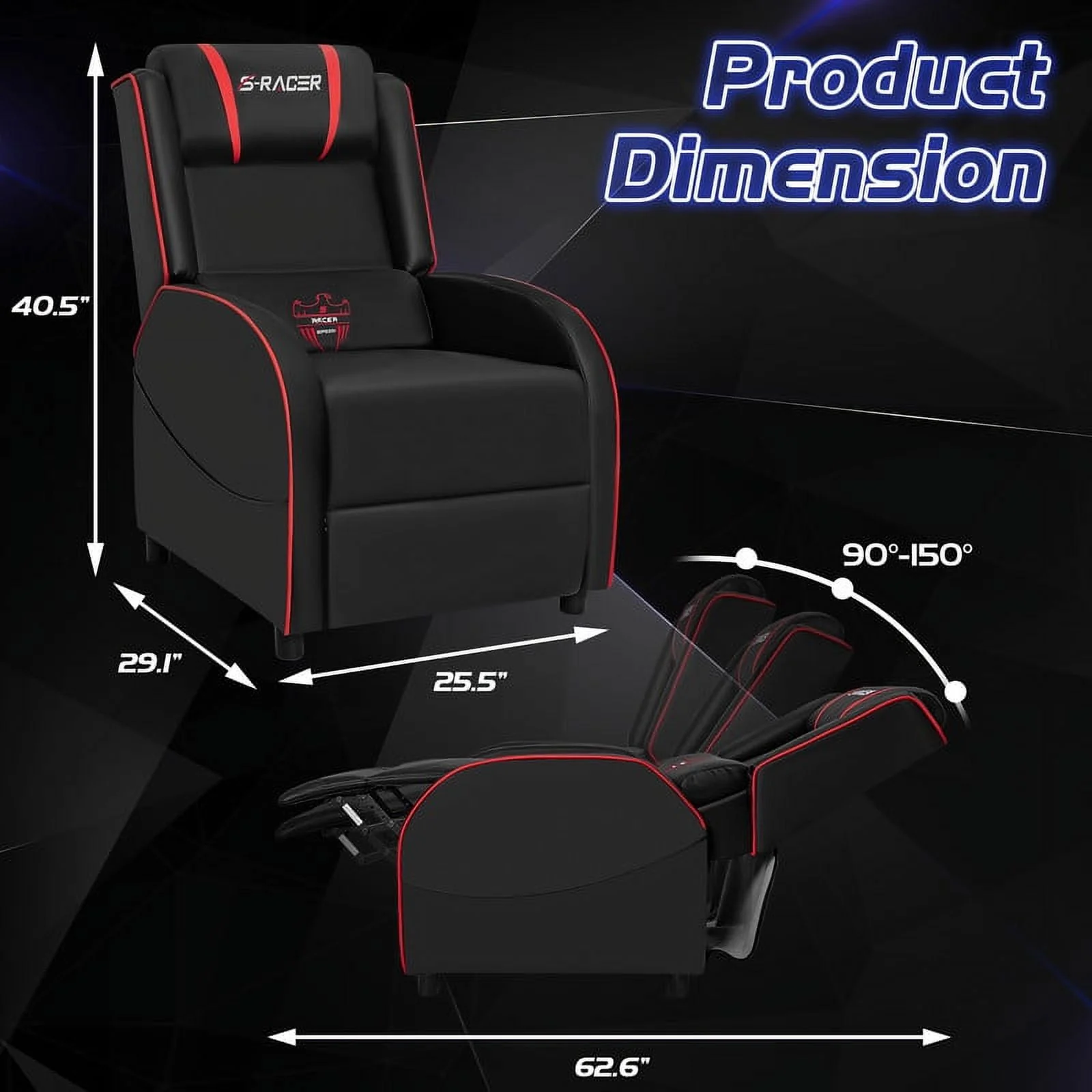 Homall Massage Gaming Recliner Chair Video Game Chair Racing Sofa Chair PU Leather Living Room Sofa Single Home Theater Seating, Red