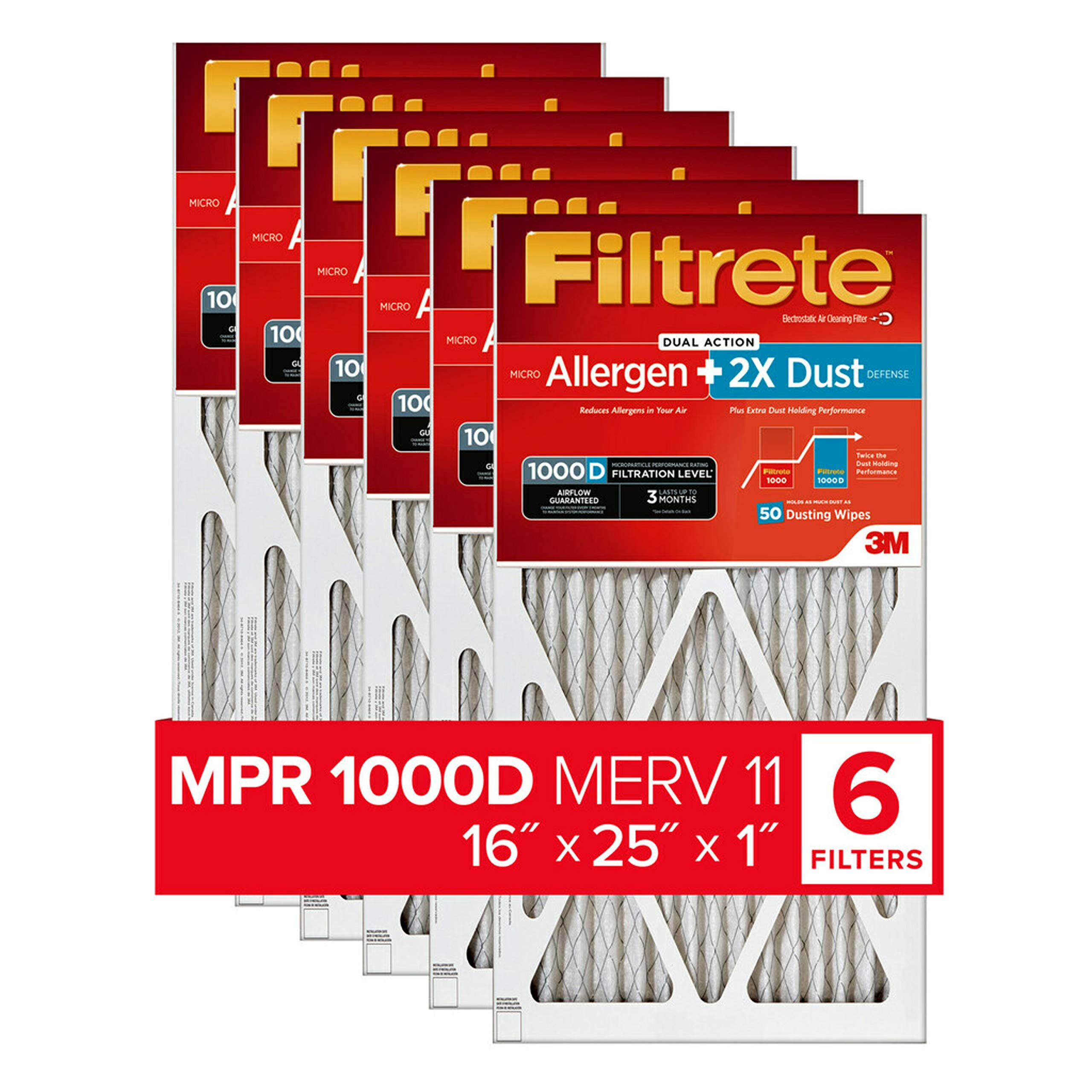 Filtrete 16x25x1, AC Furnace Air Filter, MPR 1000D, Micro Allergen Plus DUST, 6-Pack - Megean