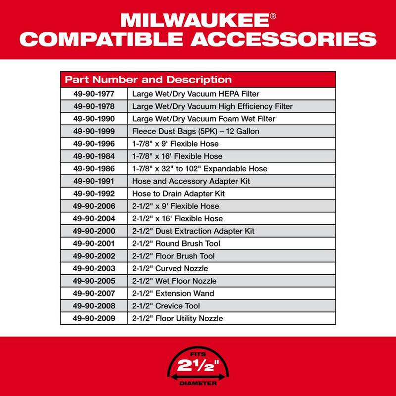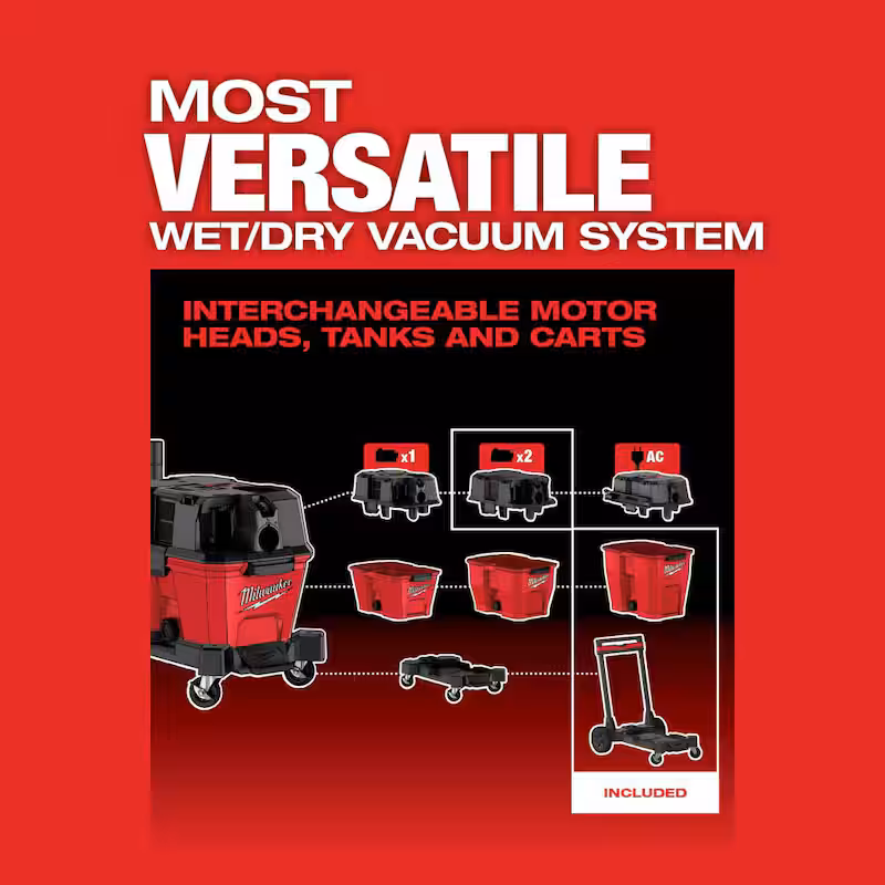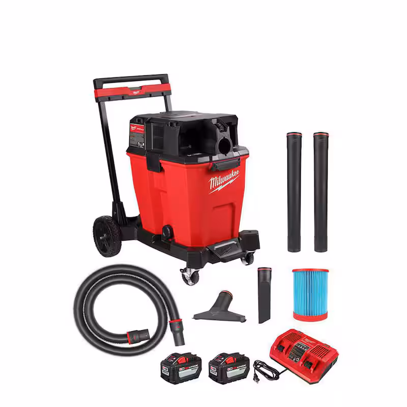 M18 FUEL 12 Gallon Cordless DUAL-BATTERY Wet/Dry Shop Vac Kit W/12.0 Ah Battery, Charger, Filter, Hose, and Accessories