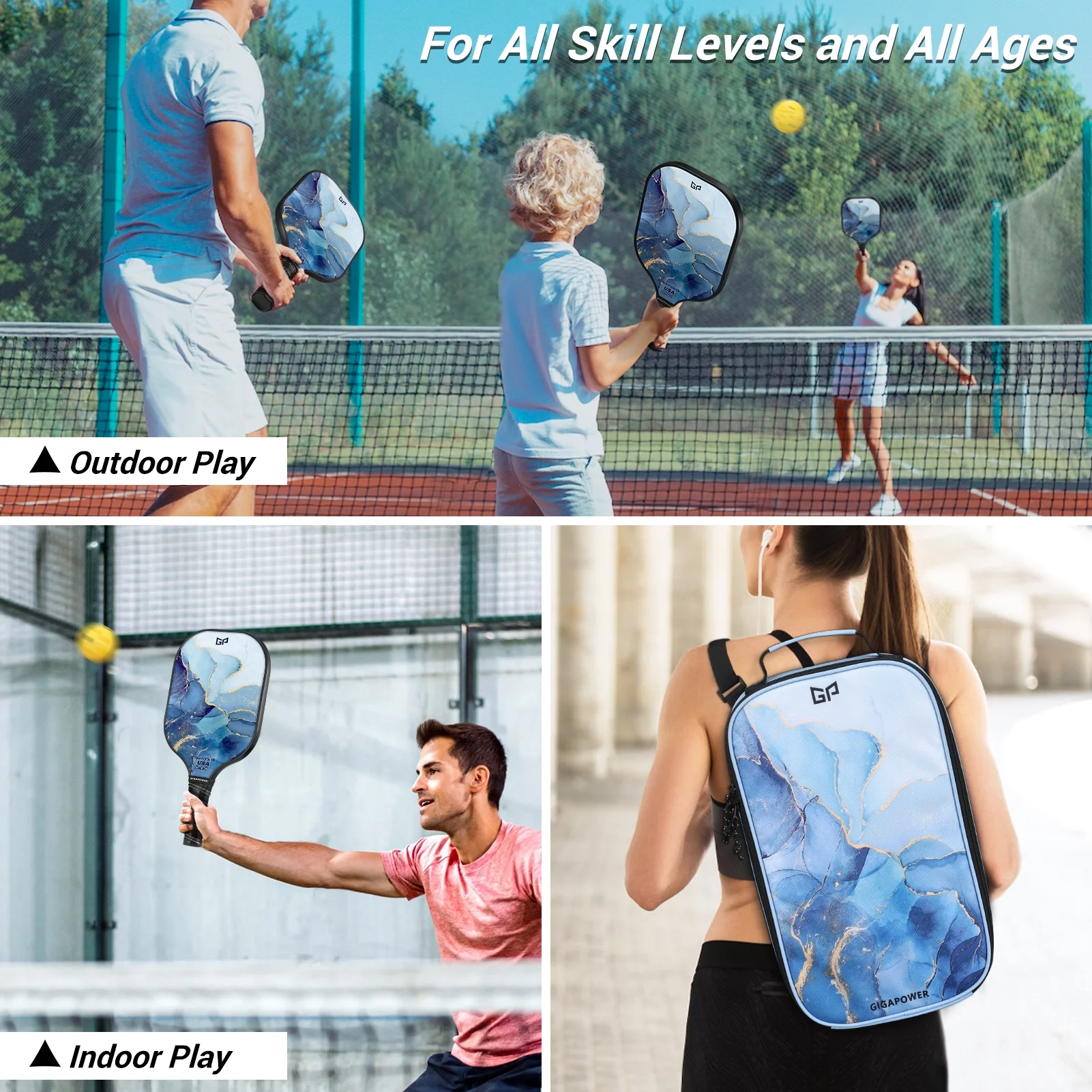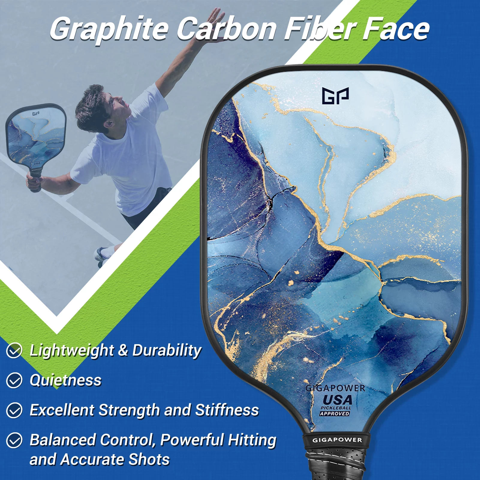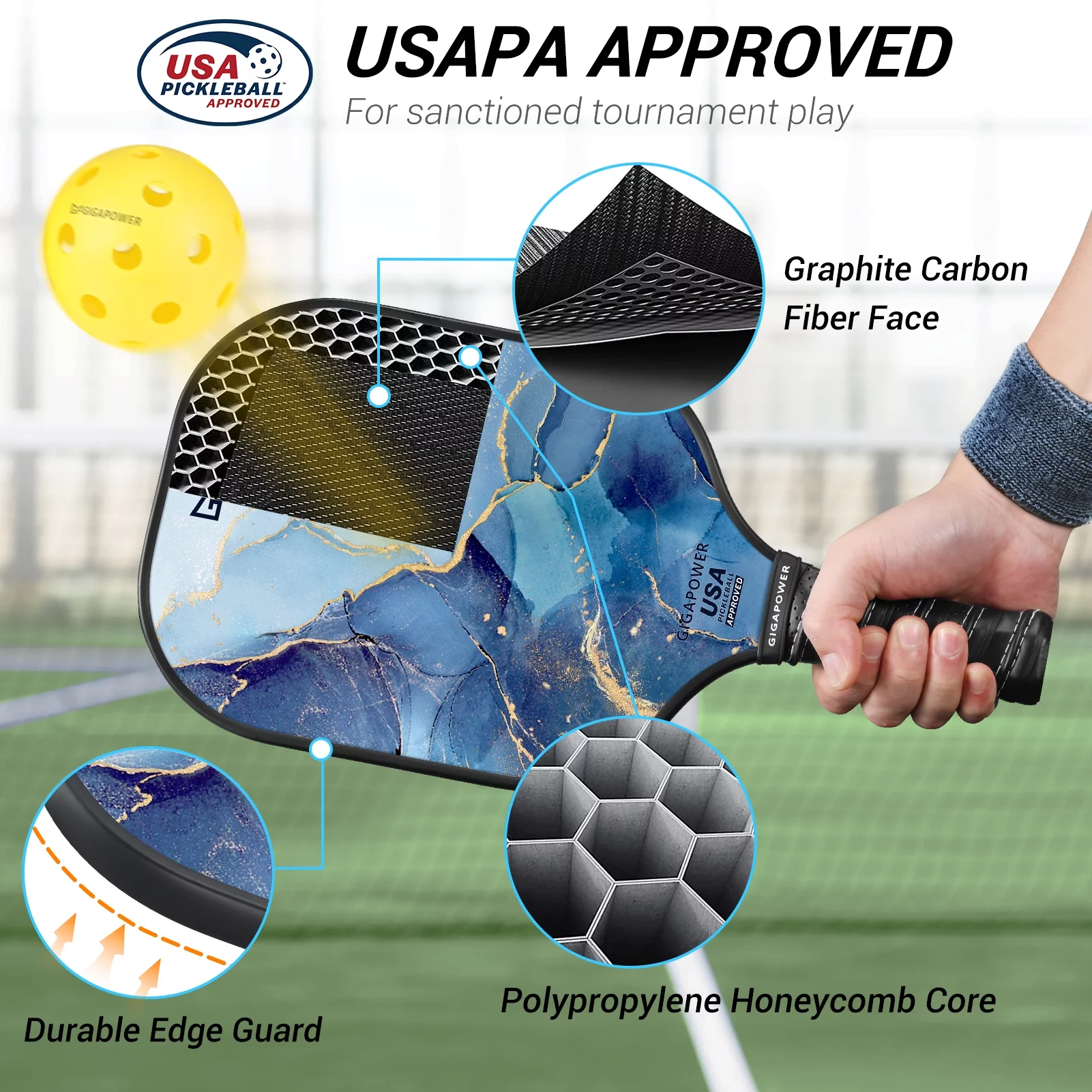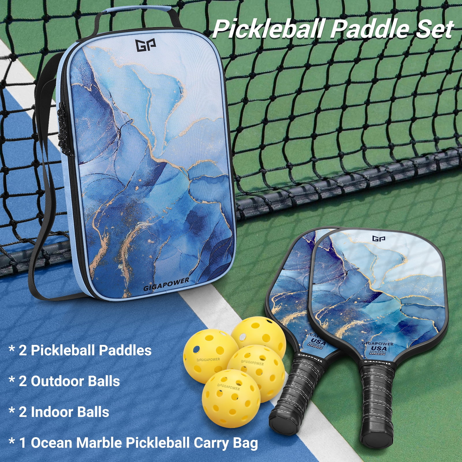 GIGAPOWER Pickleball Paddles Set of 2, USAPA Approved Graphite Carbon Face with Polypropylene Honeycomb Core Pickleball Paddle Set, Lightweight Pickleball Rackets for Women Men, Ocean Marble