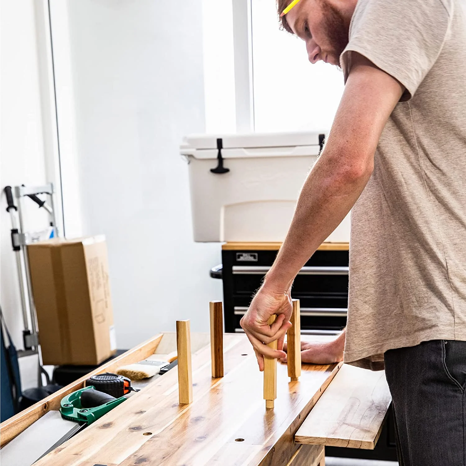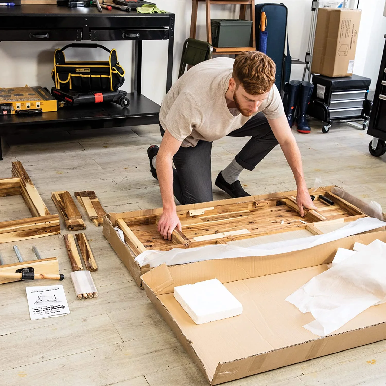 AUCHI 48-Inch Wood Workbench - 330 lbs Weight Capacity Wooden Workbench for Garage, Workshop and Home - New Acacia Wood - Curated Treasures Market