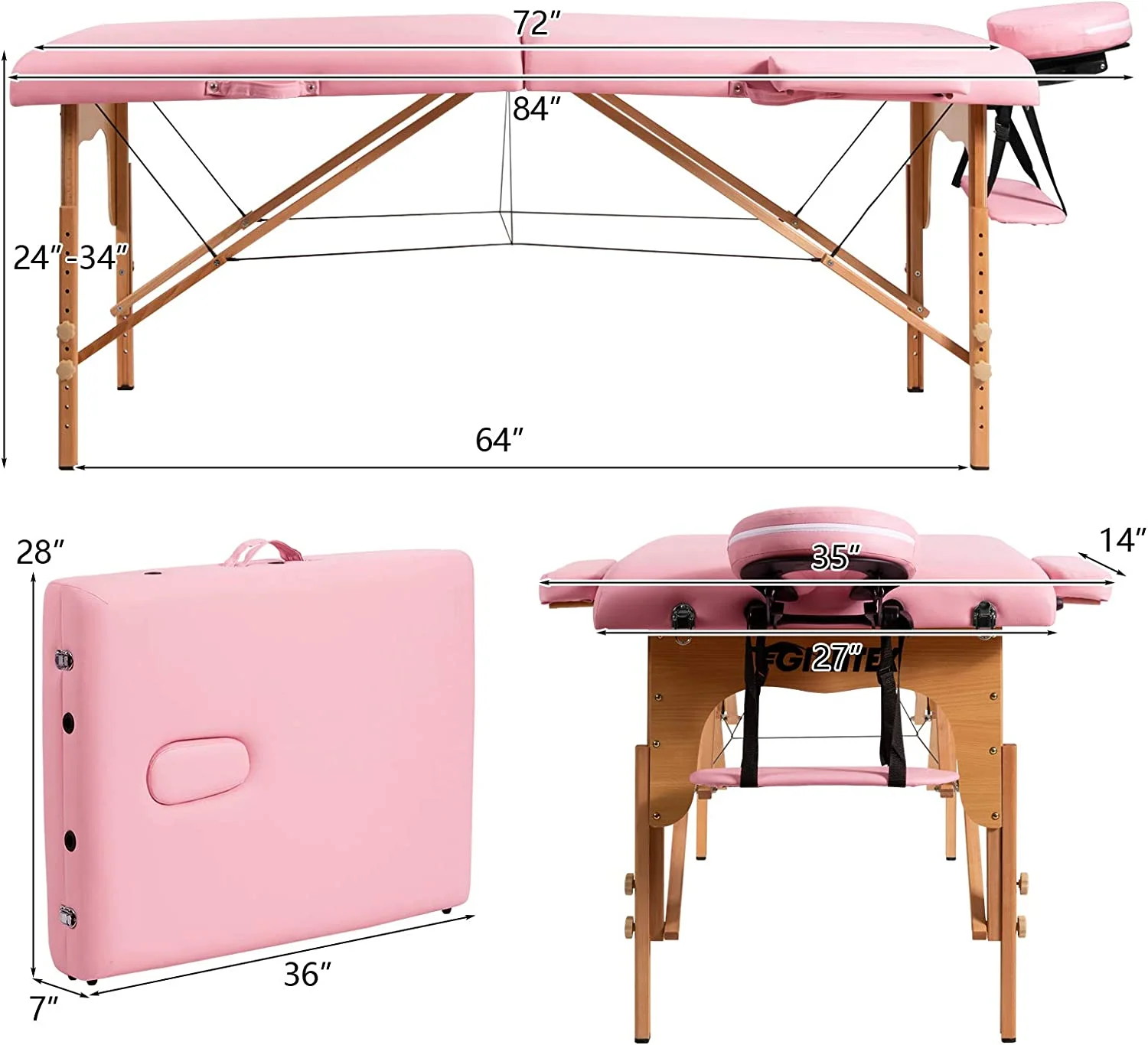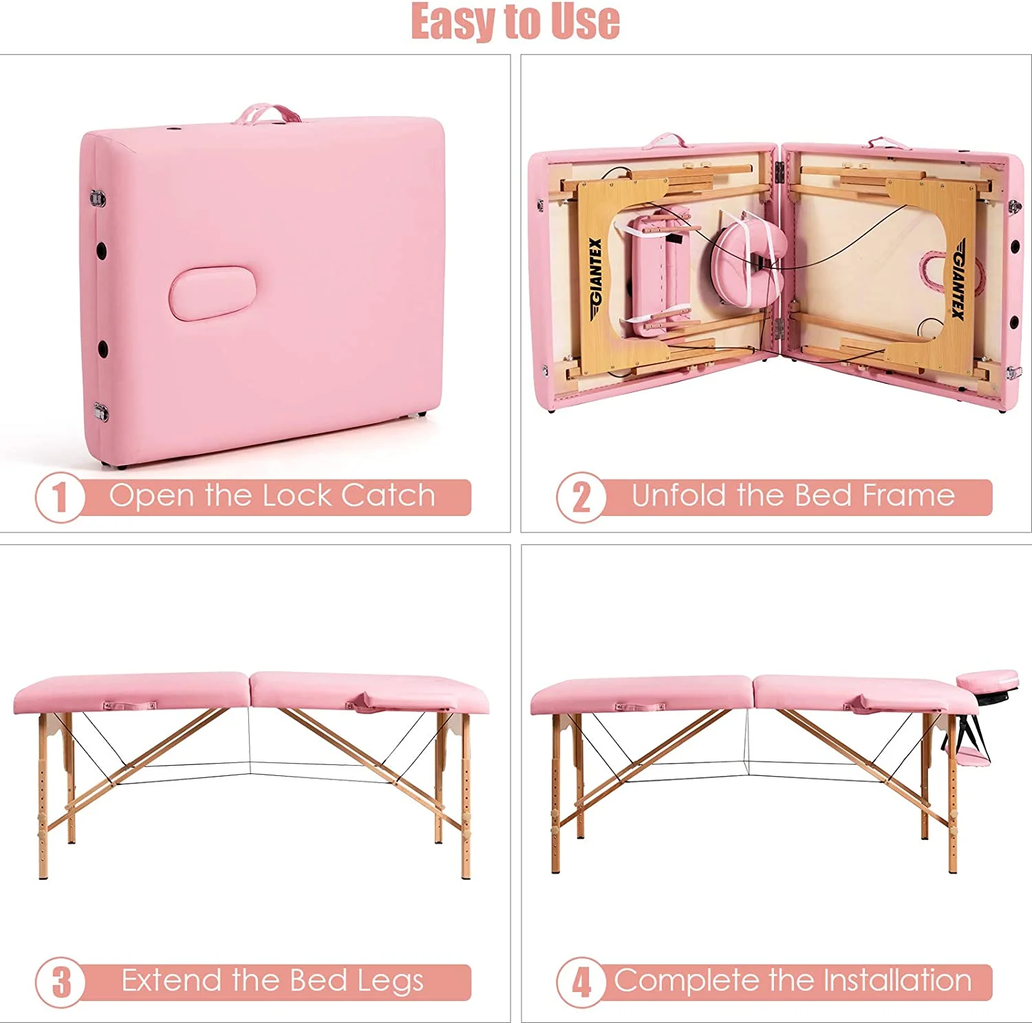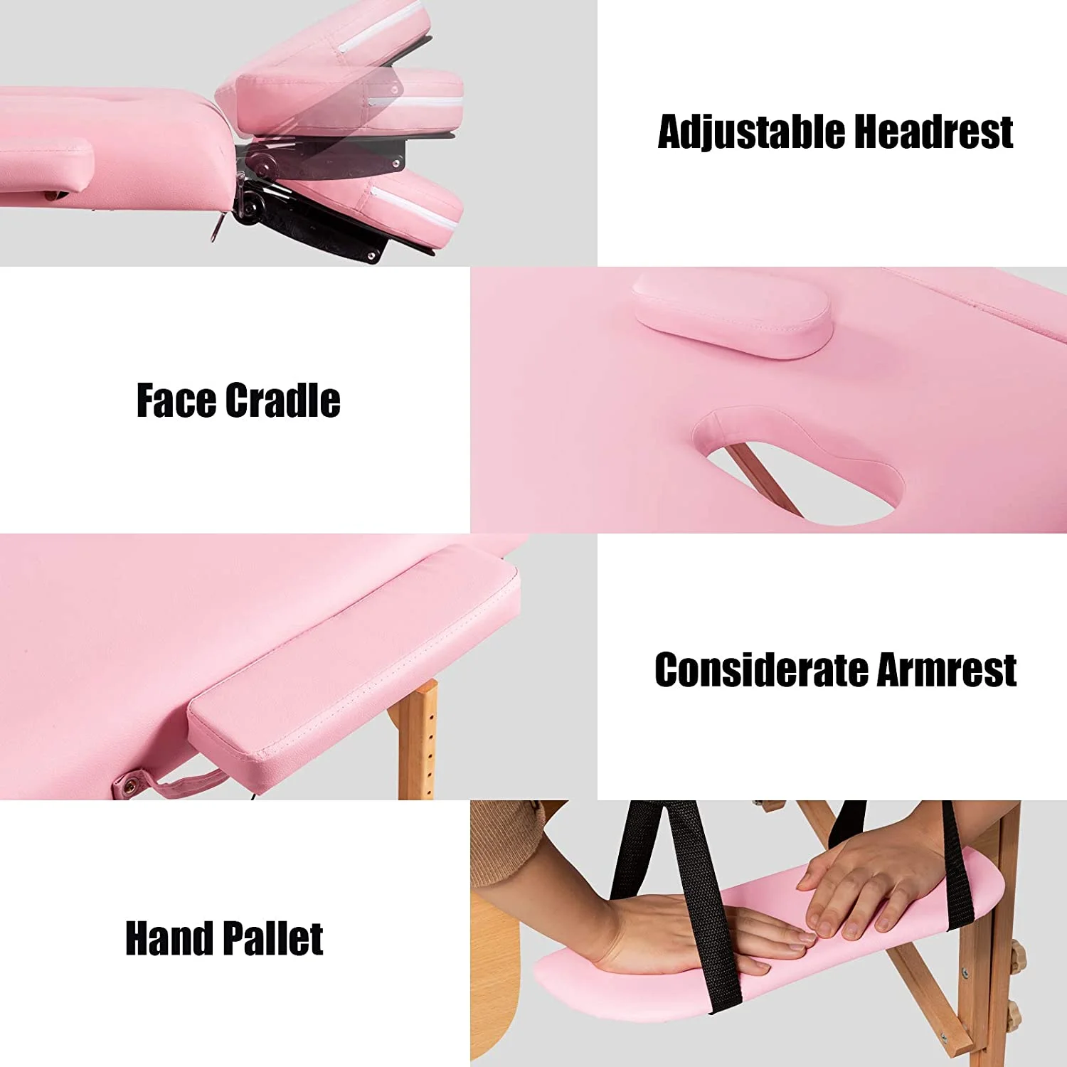 Portable Massage Table Lash Bed, 2 Fold Massage Bed Spa Bed Height Adjustable w/Face Cradle & Carry Case, Professional Facial Salon Tattoo Table for Spa Beauty Salon Home Use (Pink) - Curated Treasures Market