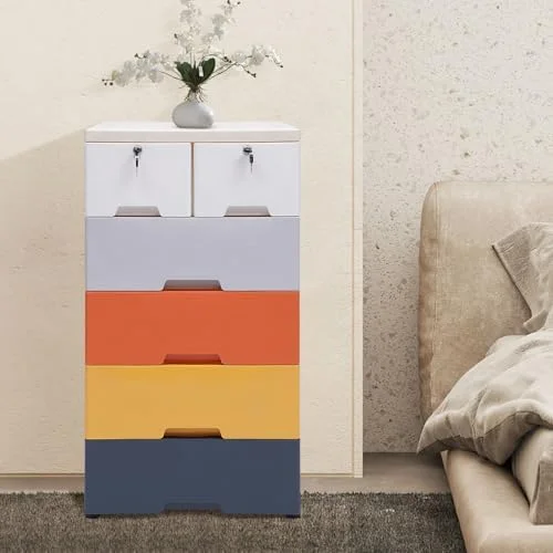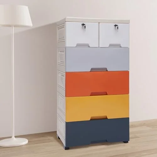 CDHJKKB Plastic Drawers Dresser Cabinet with 5 Drawers Closet Drawers Tall Dresser Organizer with 4 Wheels for Clothes Playroom Bedroom 18"x12"x33" - Morandi - Curated Treasures Market