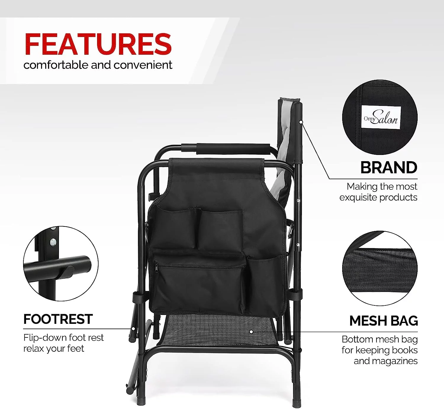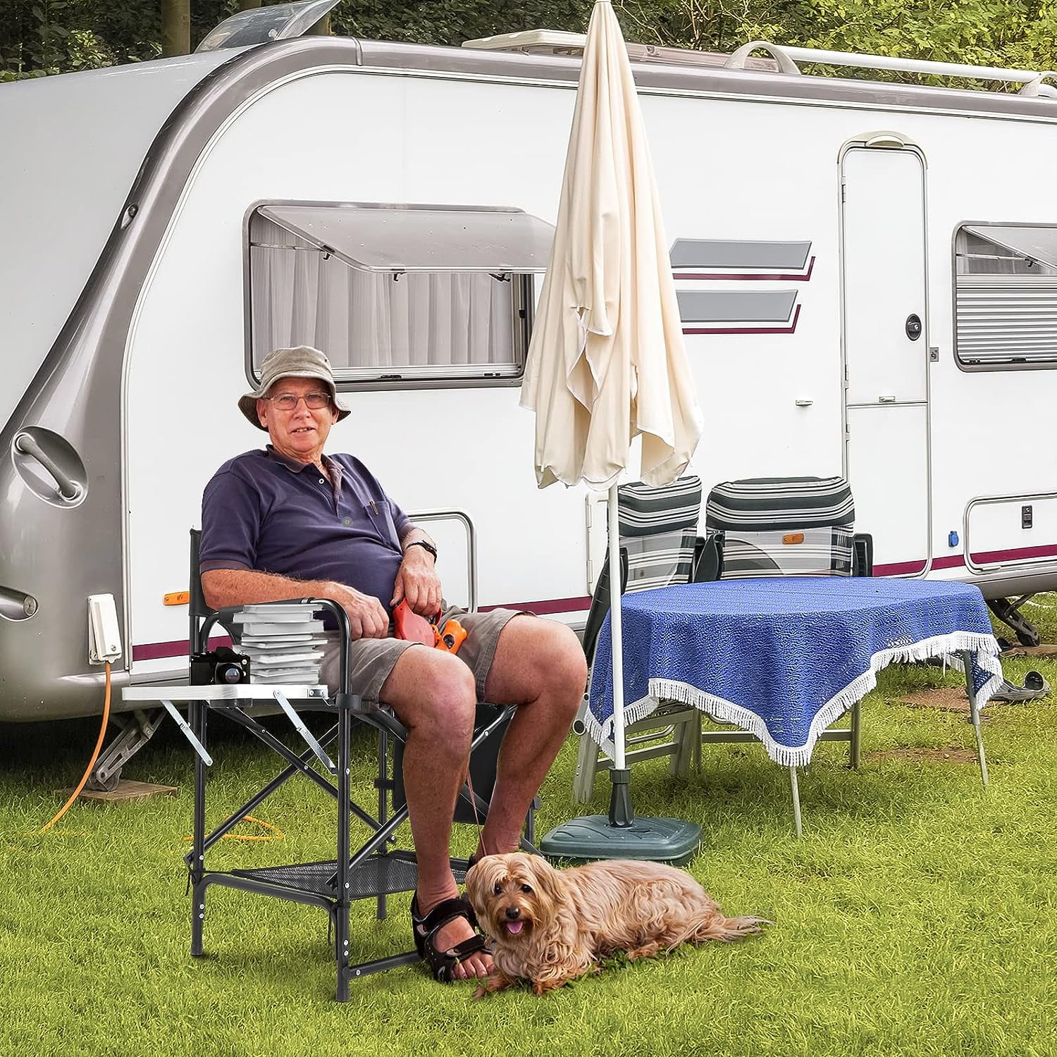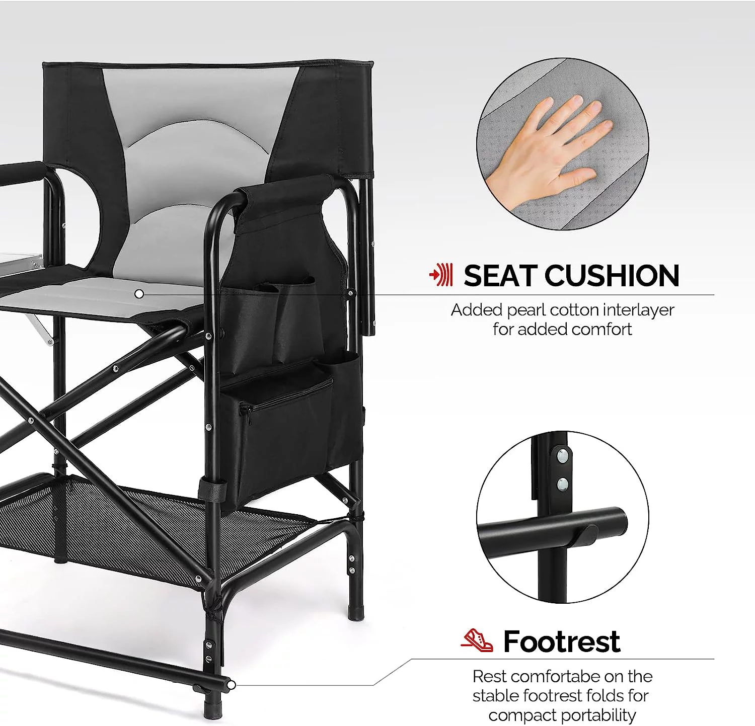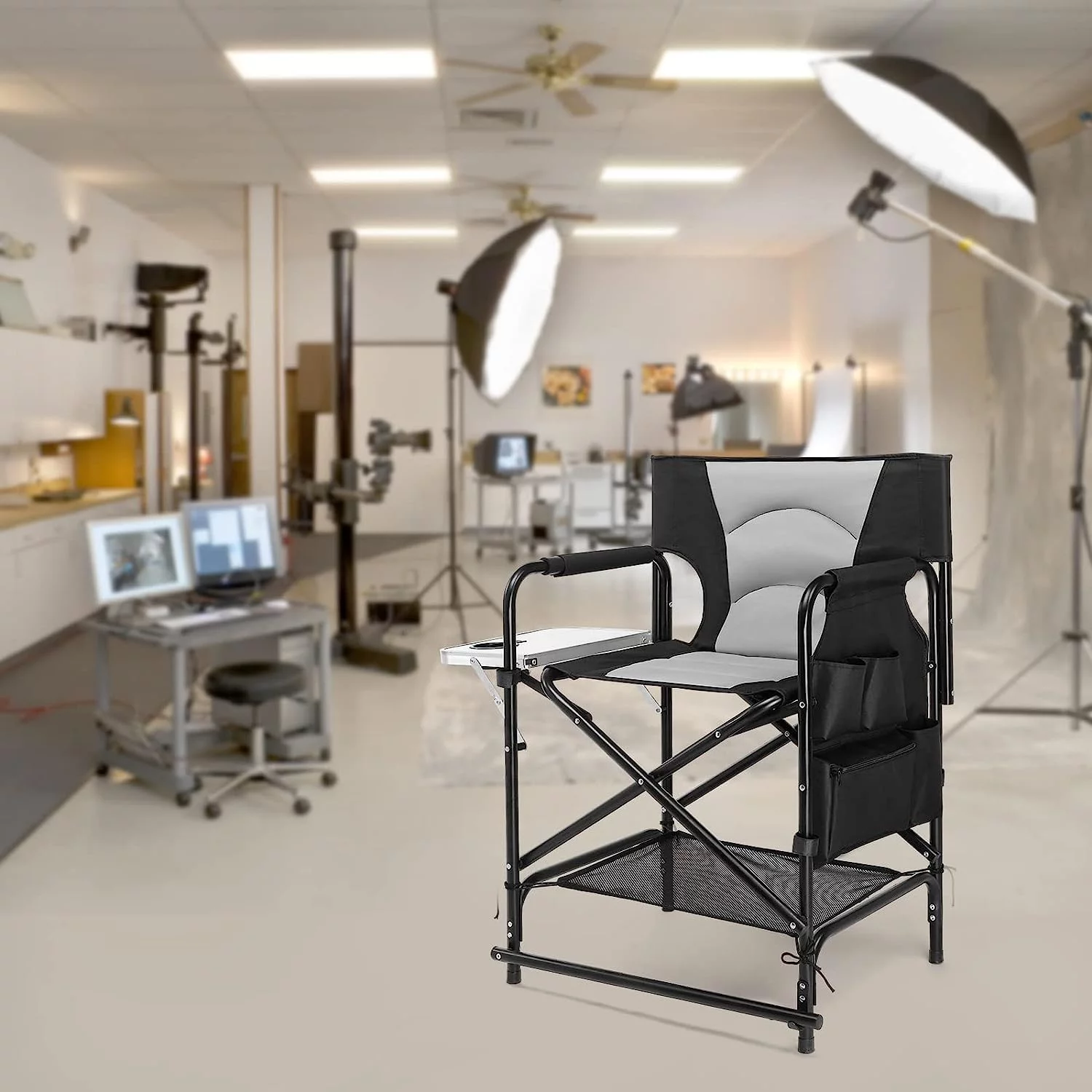 22" Directors Camping Chair Camping Folding with Side Table Storage Bag,Portable Makeup Artist Bar Height, Aluminum Frame 300 lbs Capacity - Curated Treasures Market