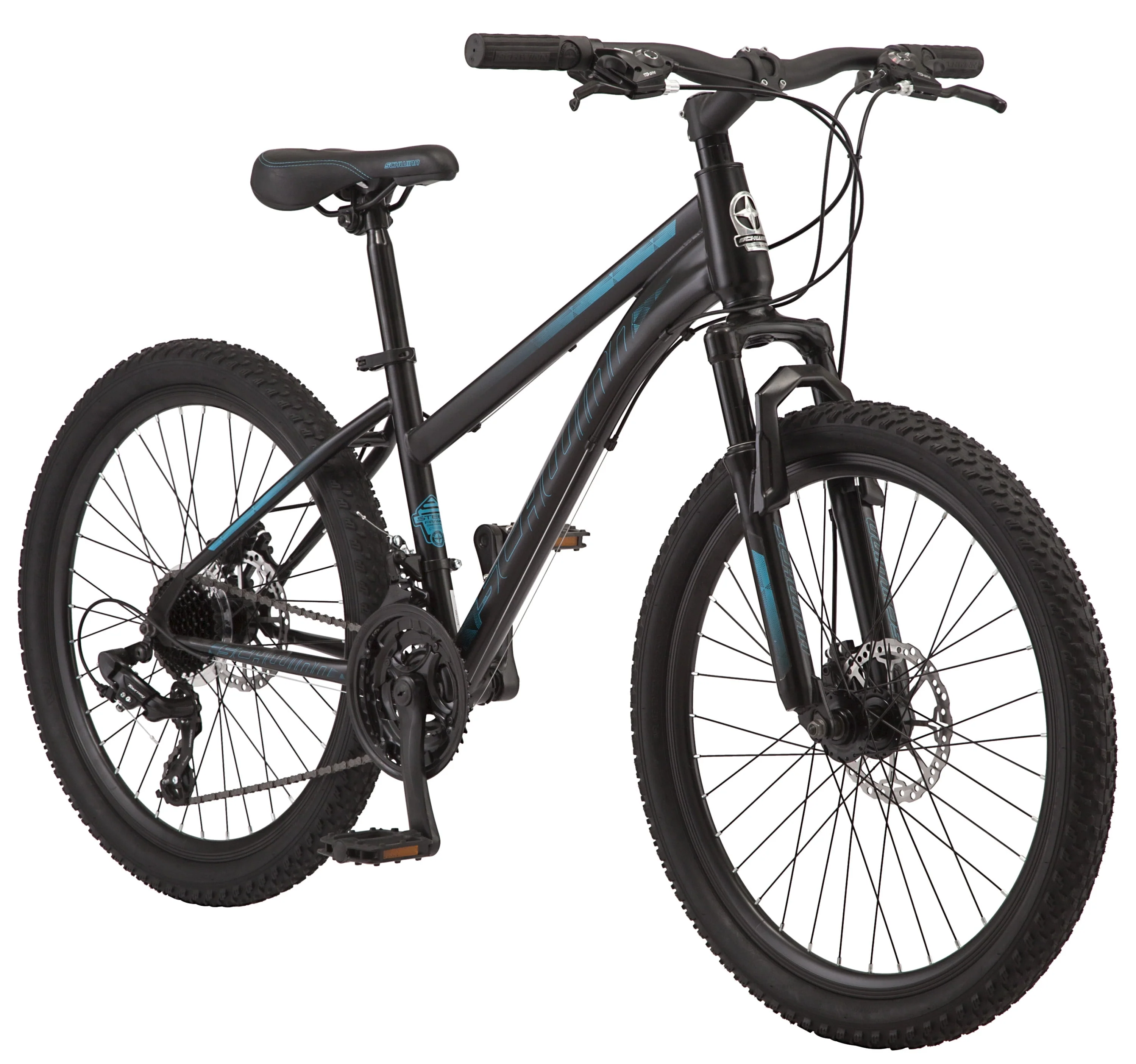 Schwinn Sidewinder Mountain Bike, 24-inch Wheels, 21 Speeds, Black / Teal
