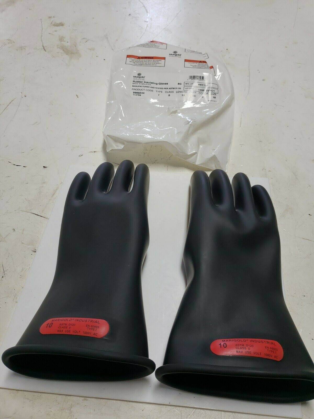 Marigold Industrial 9999244 Rubber 1000V Insulating Gloves Size 10, 11x22 Black - Avayadevconnect