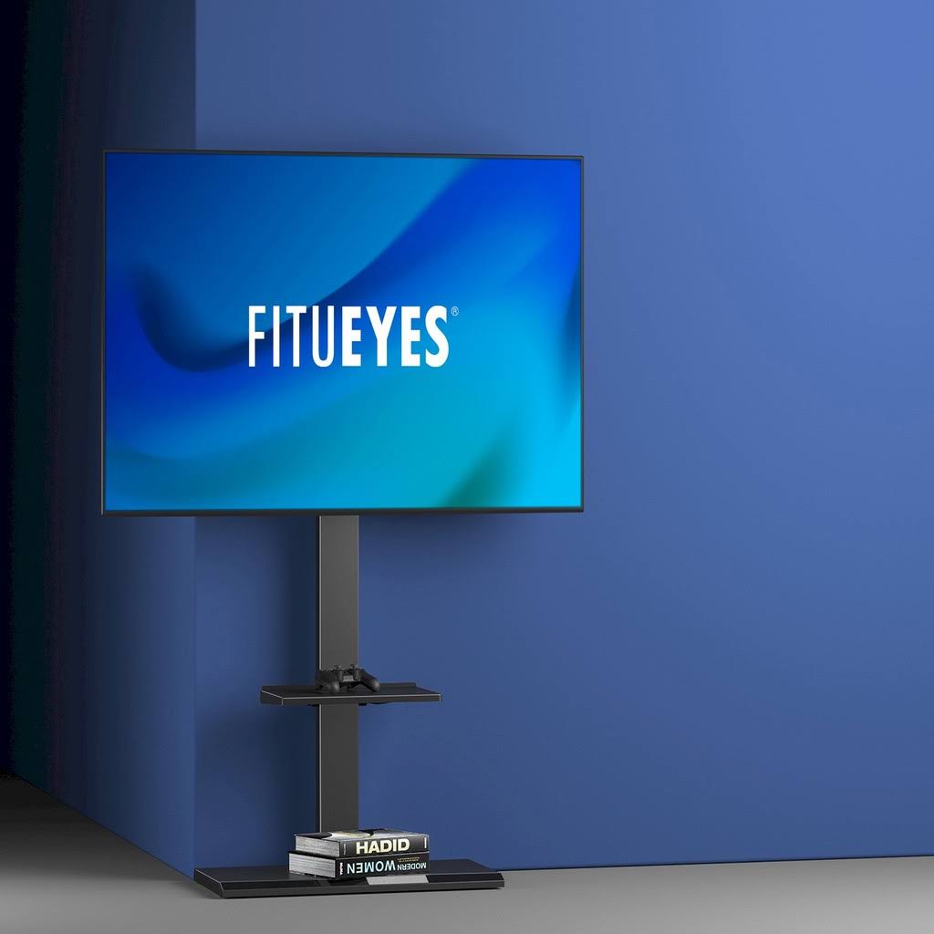 Fitueyes Swivel Floor TV Stand with Mount for 50 55 60 65 70 75 80 Inc - Black - Megean