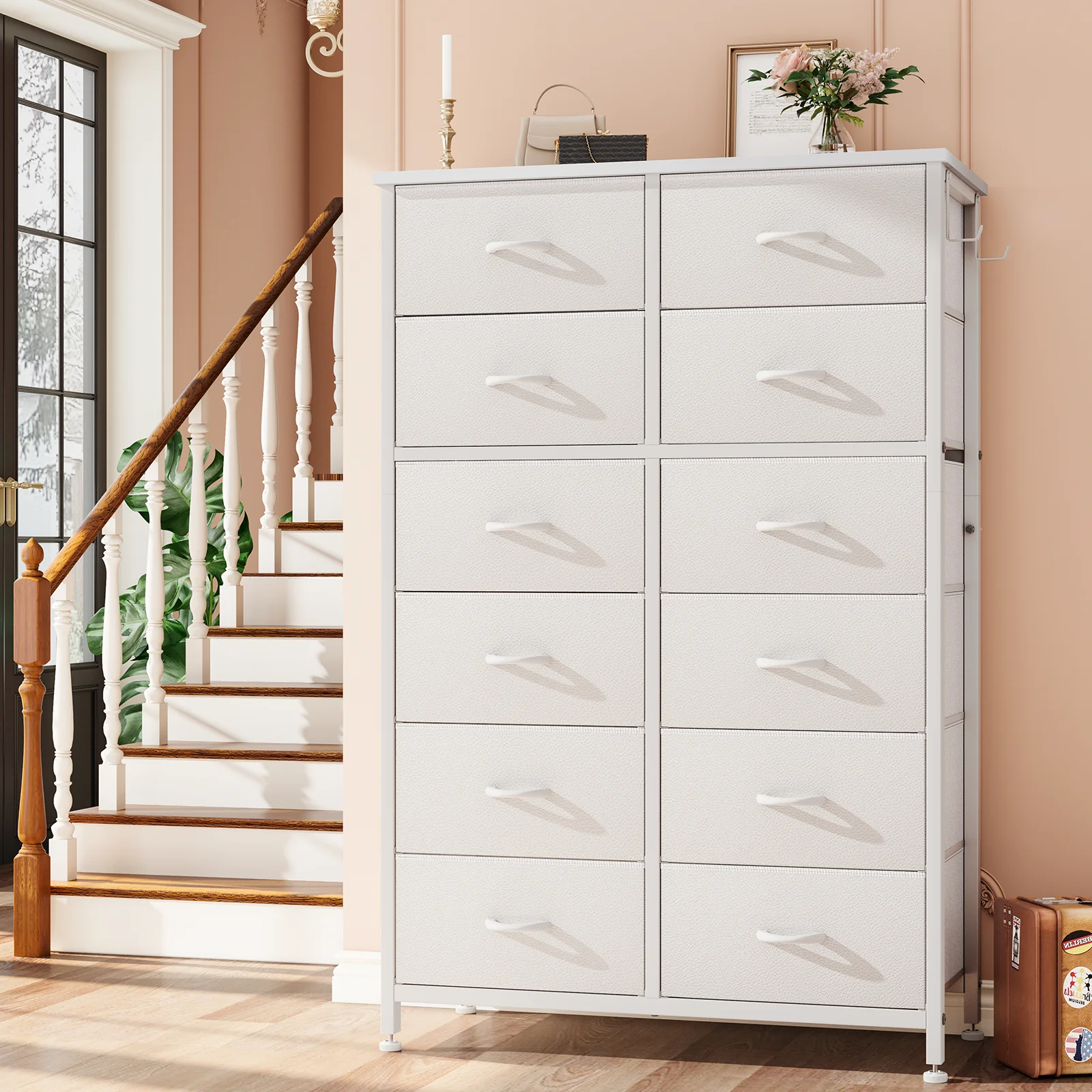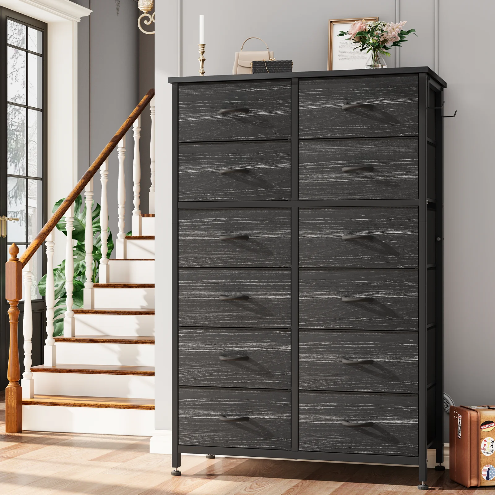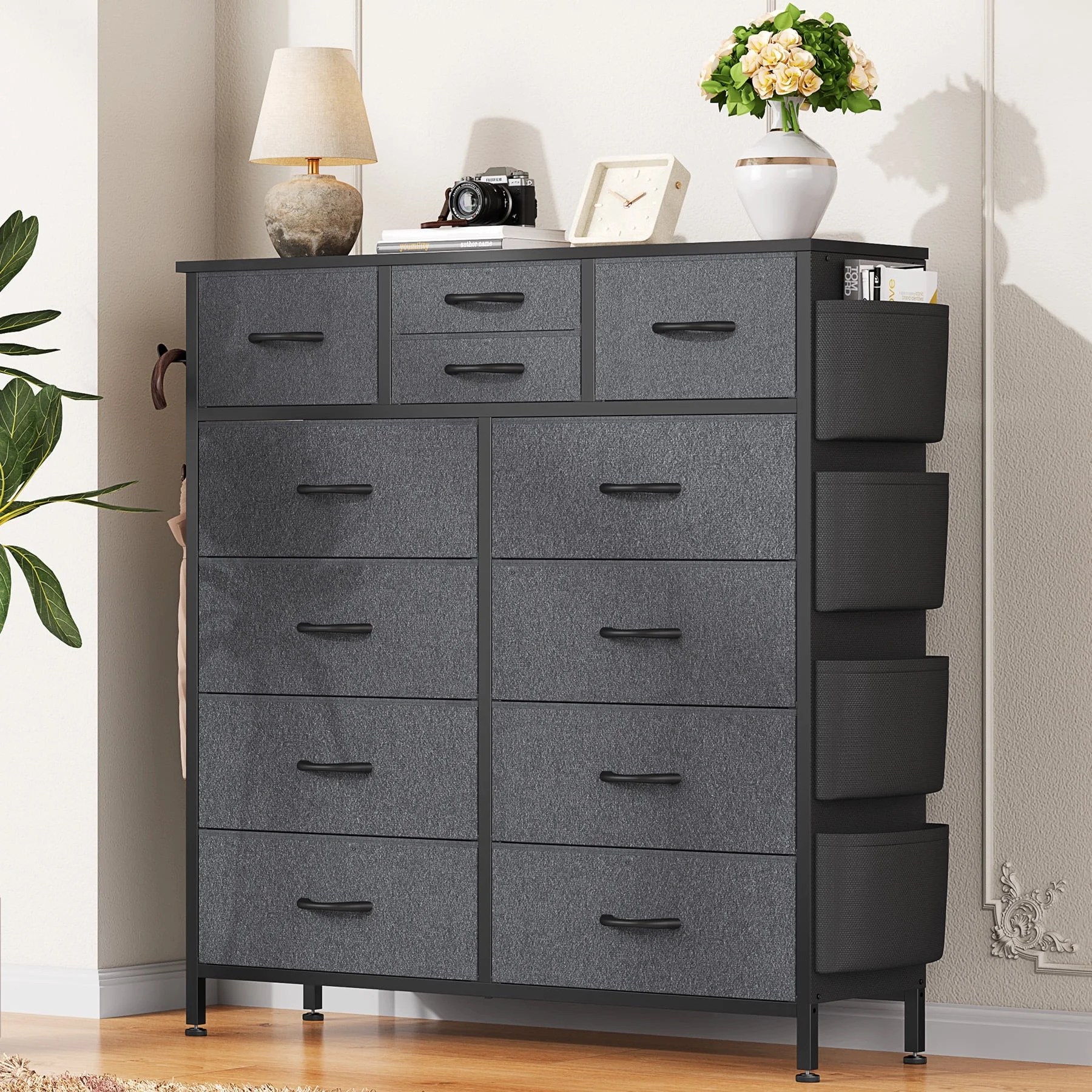 GIKPAL 12 Drawer Dresser, Dressers for Bedroom Chest of Drawers Tall Dresser Fabric Long Dresser for Kids and Adults, Steel Frame and Wooden Top Brown