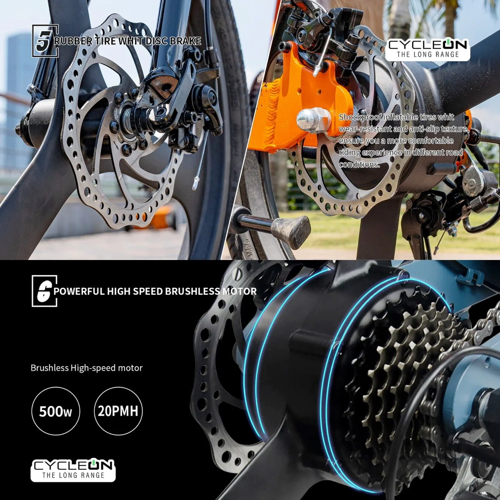 CycleOn - The Long Range 20 Foldable Electric Bicycle 7 Speed, 500W Motor, 36V Battery
