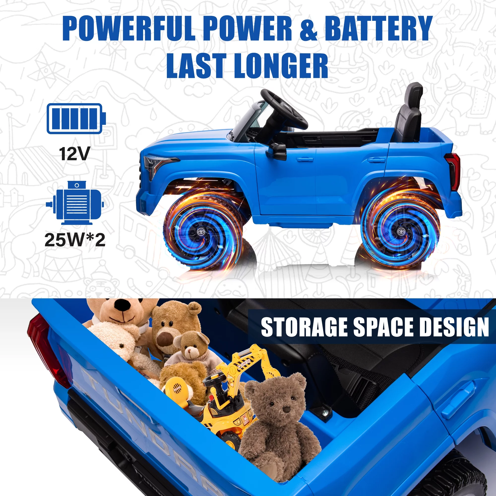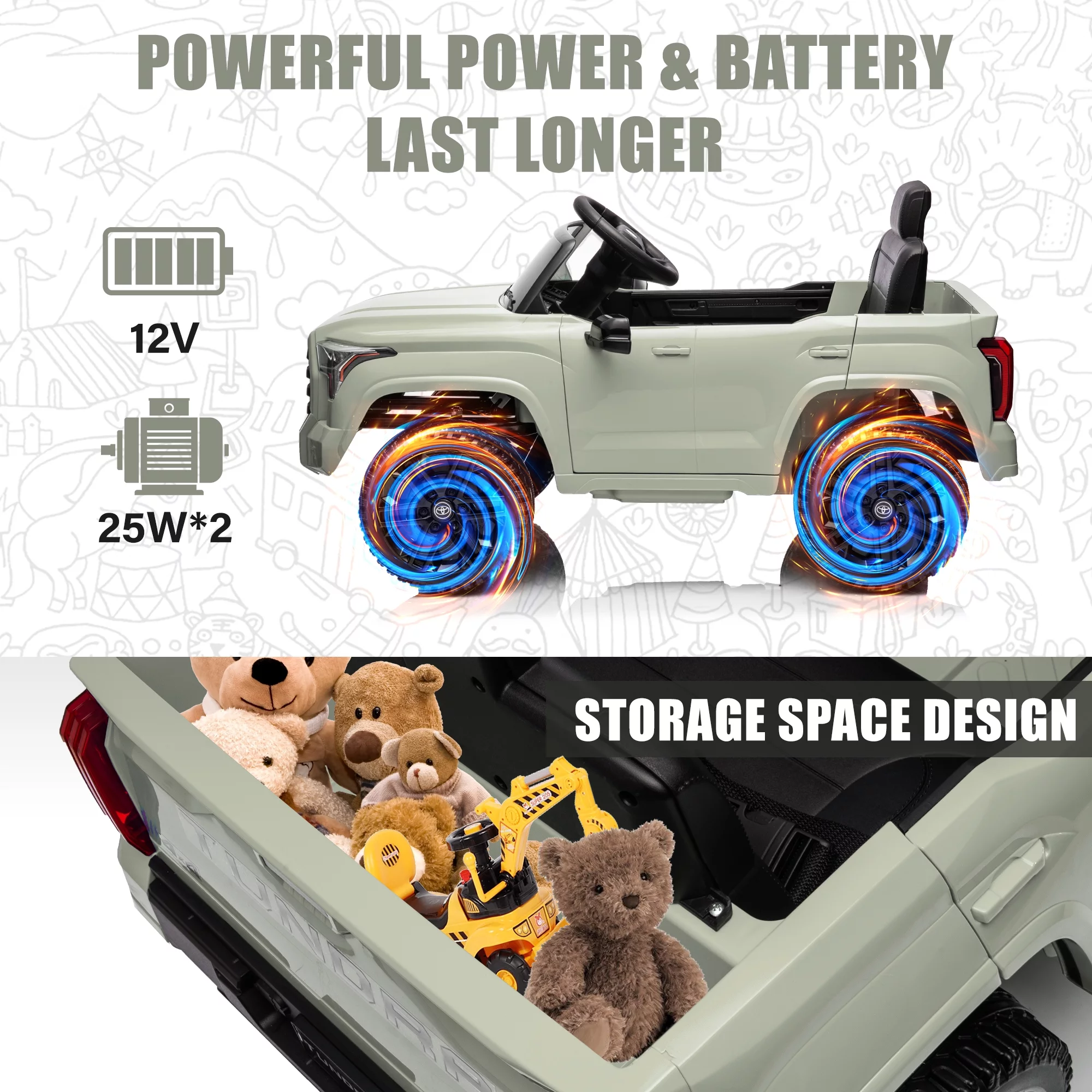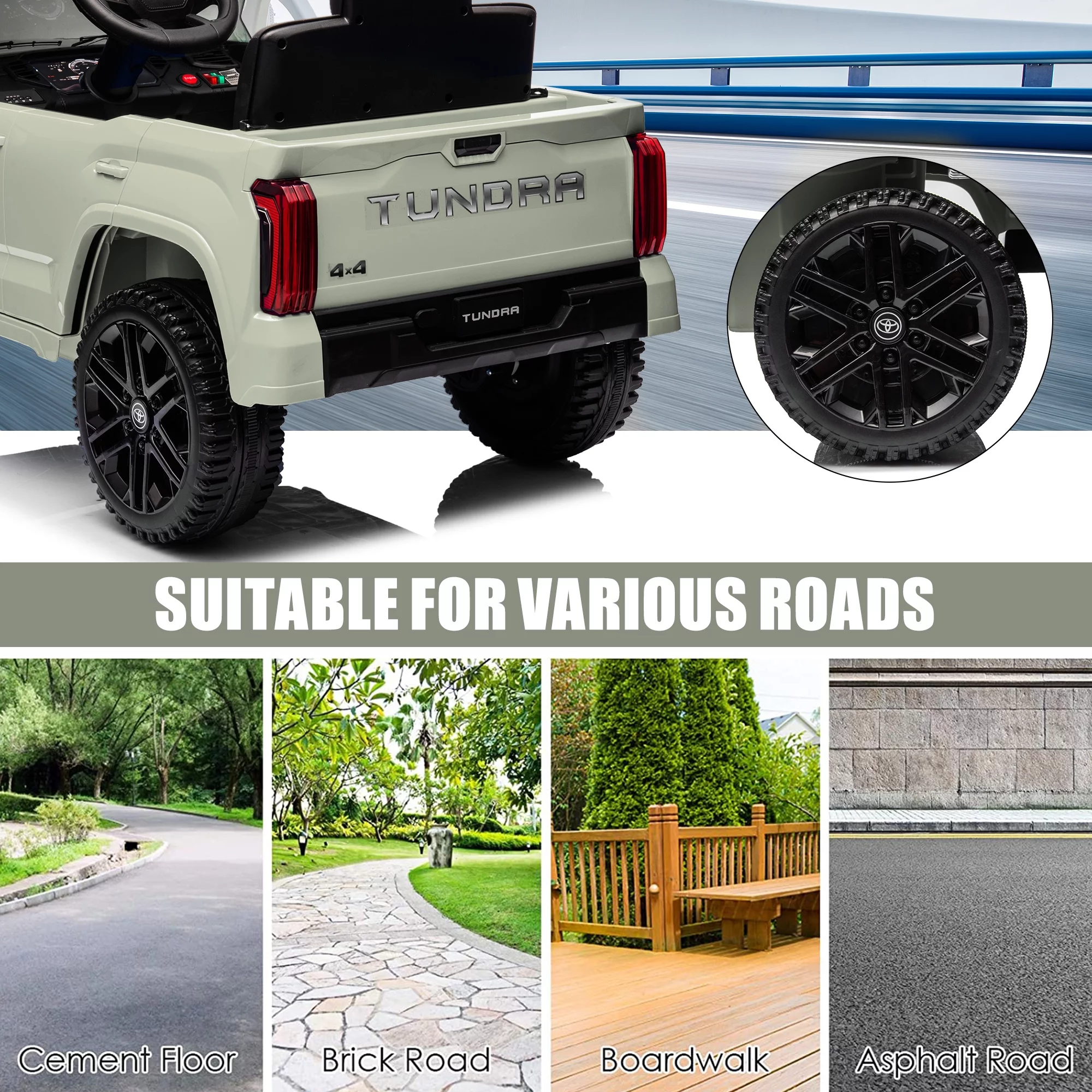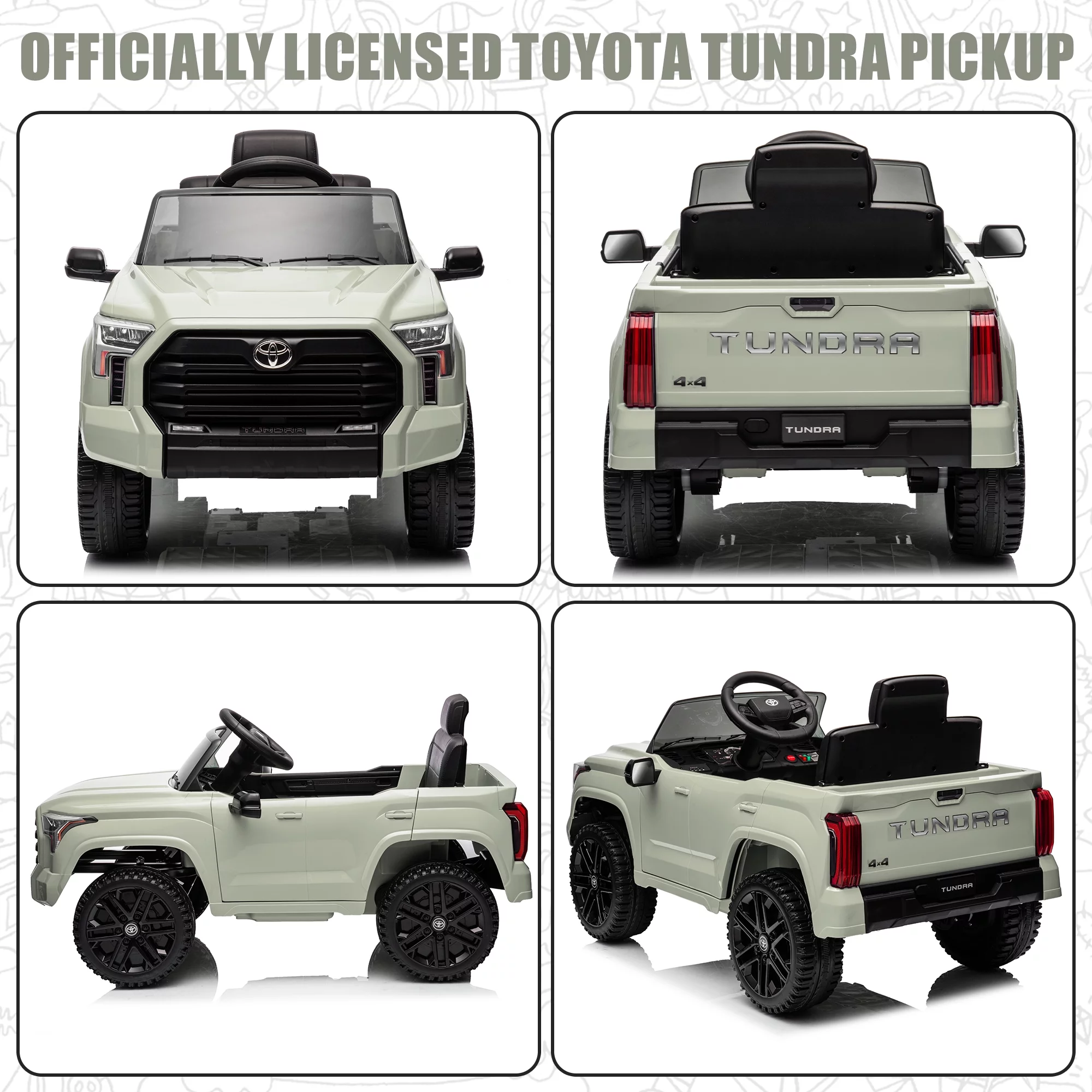 Toyota Tundra 12 V Powered Ride on Cars, Electric Pickup Truck Toys for Kids with Remote Control, 4 Wheels, Battery Powered, LED Light, MP3 Player, Green