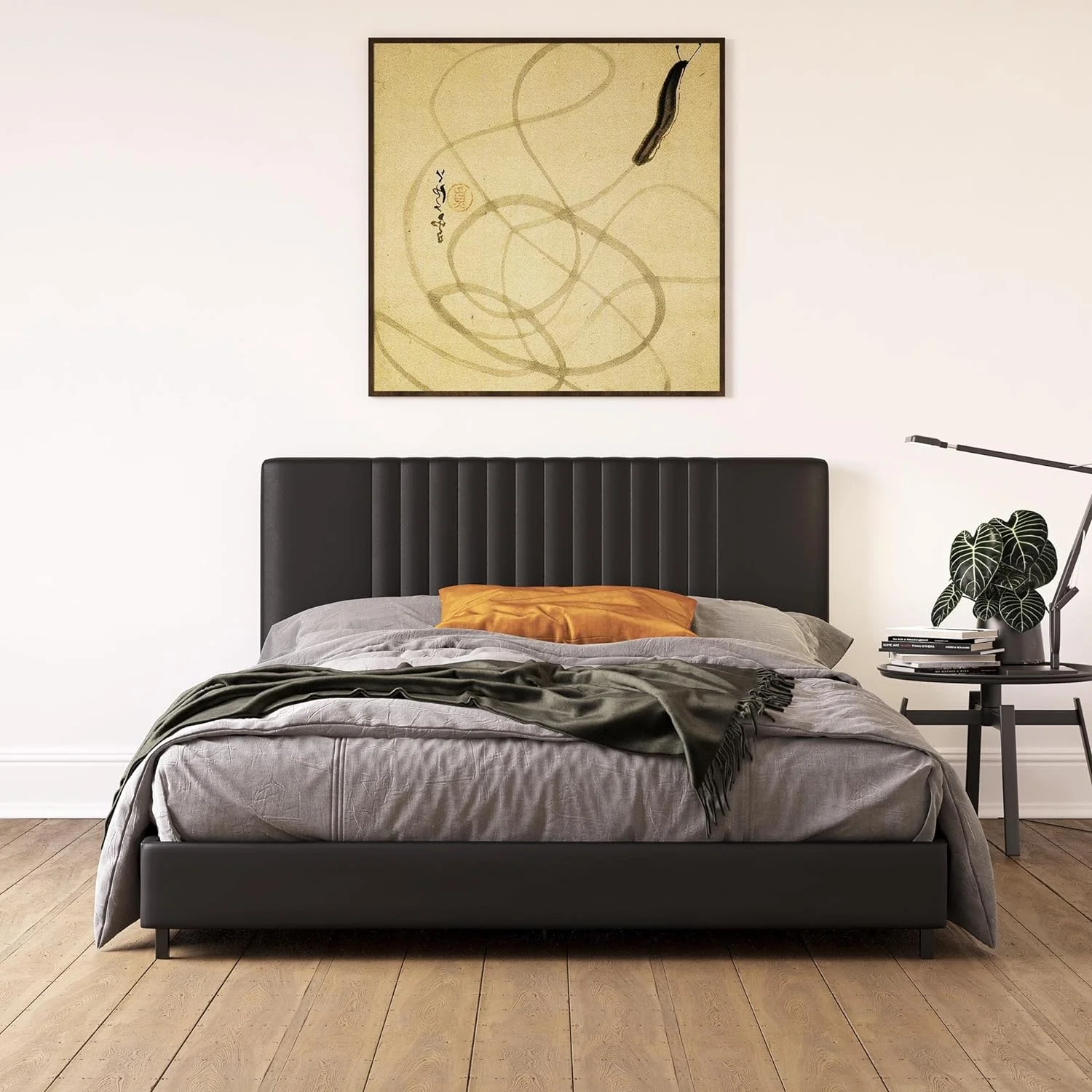 Rio Faux Leather Upholstered Platform Bed With Tufted Headboard. Full. Black