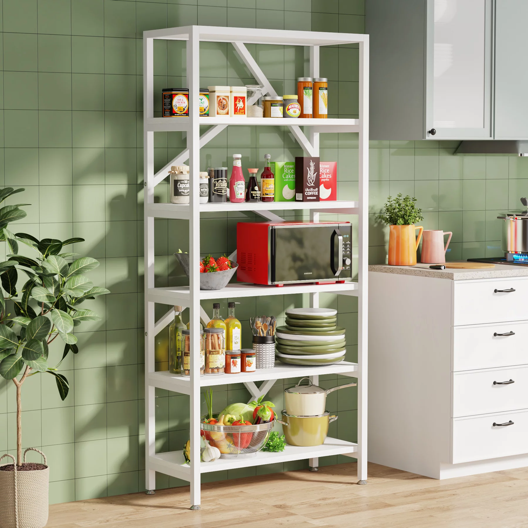 Tribesigns 6 Tier Etagere Bookcase, 71 Inch Industrial Bookshelf, Free Standing Open Book Shelves Storage Display Shelf, Wood Shelving Units Organizer Rack - Curated Treasures Market