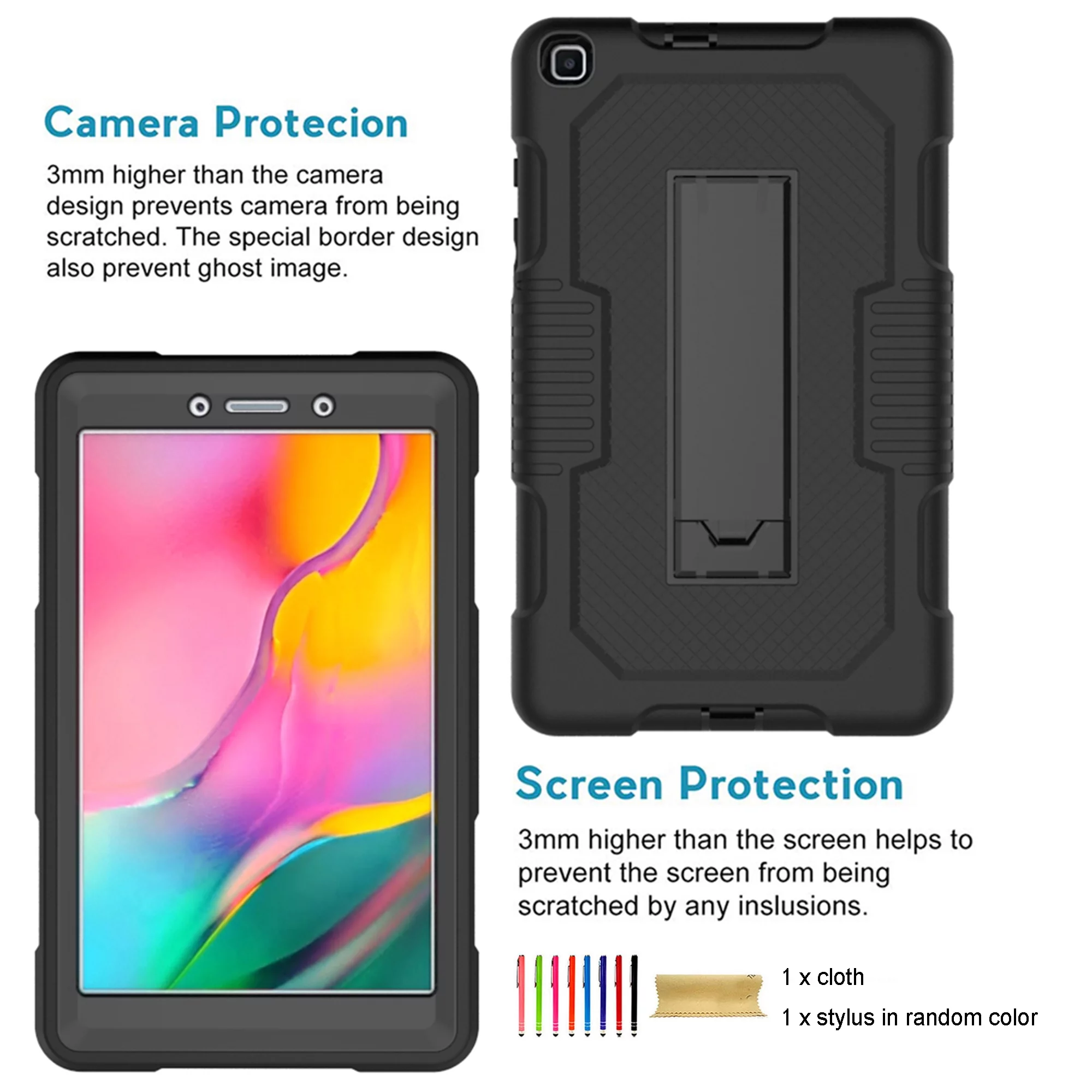 ELEHOLD Samsung Galaxy Tab A7 Lite Case 8.7 inch for Kids, Hybrid Shockproof Rugged Drop Protection Cover with Kickstand for Samsung Galaxy Tab A7 Lite 8.7" SM-T220/T225/T227 2021,Black - Curated Treasures Market