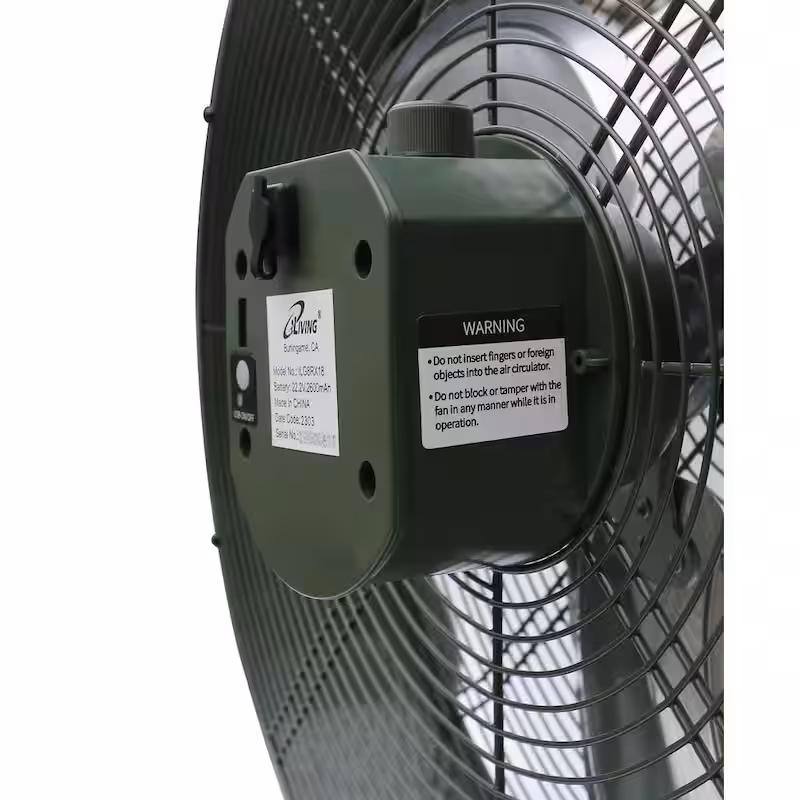 18 in. Rechargeable Battery-Operated Camping Floor Fan, High Velocity Portable Outdoor Fan with Built-in Lithium Battery