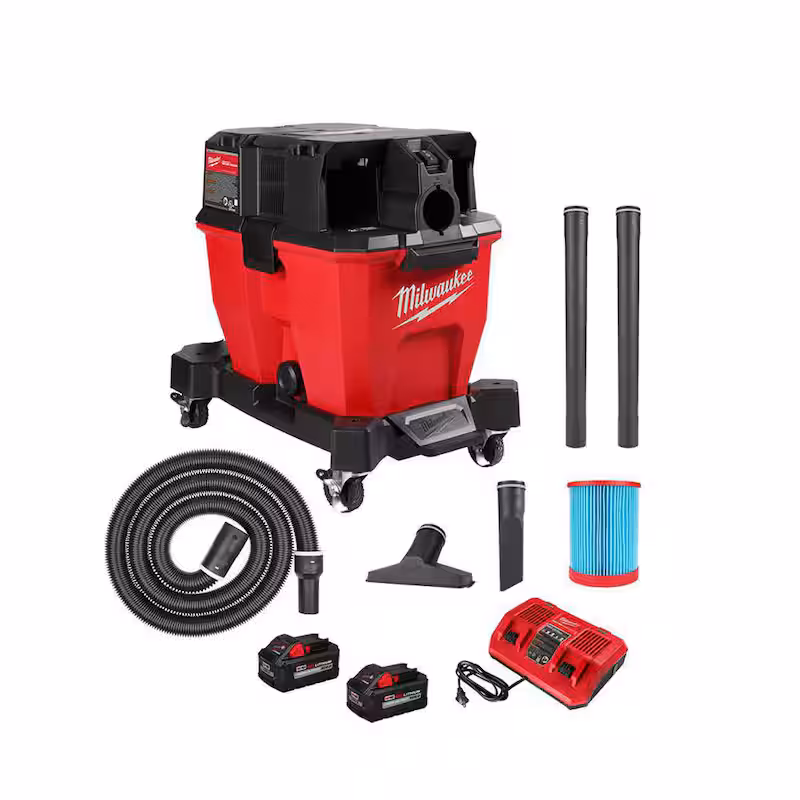 M18 FUEL 9 Gal. Cordless DUAL-BATTERY Wet/Dry Shop Vacuum Kit with (2) 8.0 ah Batteries, Filter, Hose, and Accessories