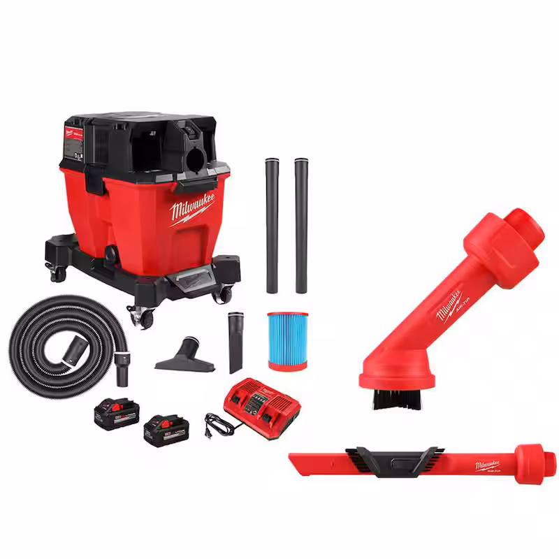 M18 FUEL 9 Gal. Cordless Dual-Battery Wet/Dry Shop Vacuum Kit with AIR-TIP 1-1/4 in. - 2-1/2 in. Brush and Crevice Tools