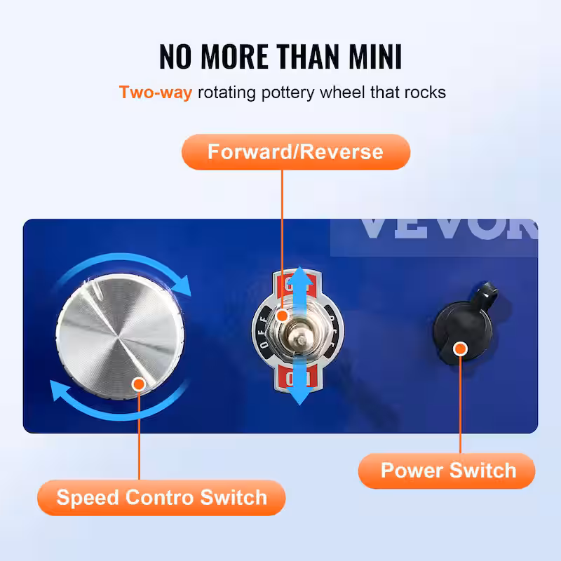 Mini Pottery Wheel 2-Turntables 2.6 in./3.9 in. Ceramic Work Clay Forming Machine 30-Watts 0-300 RPM Sculpting Tools