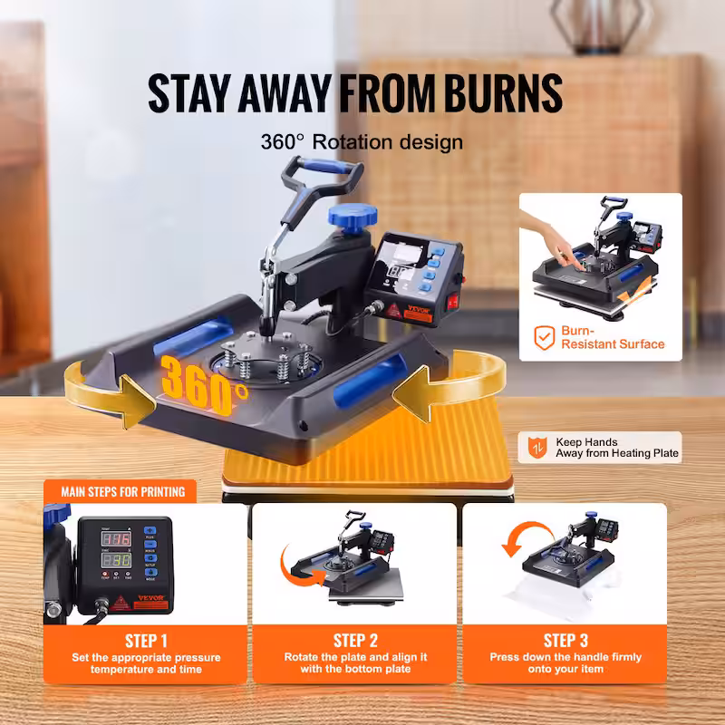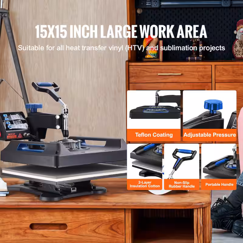 15 in. x 15 in. Pro Heat Press Machine 5 in 1 Combo 360 Swing Away Digital Sublimation Vinyl Transfer Printer, Blue