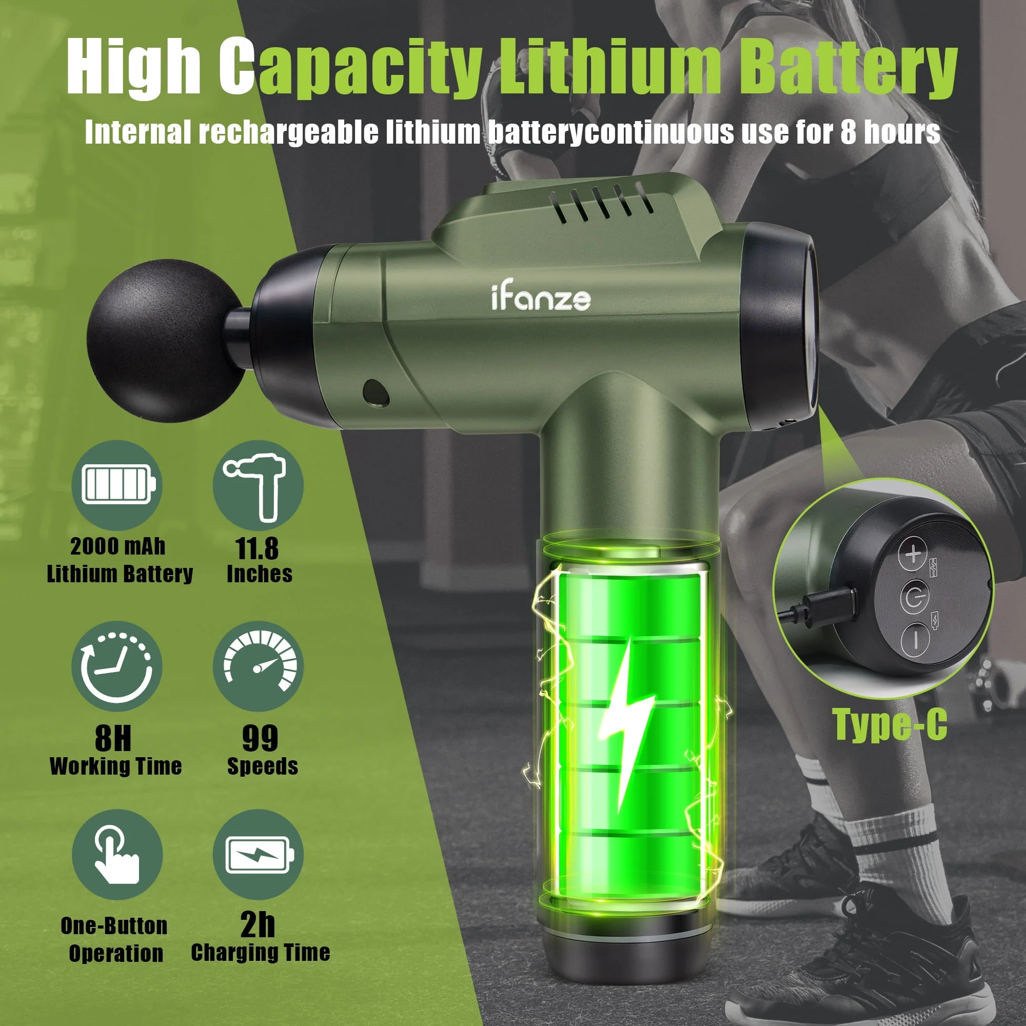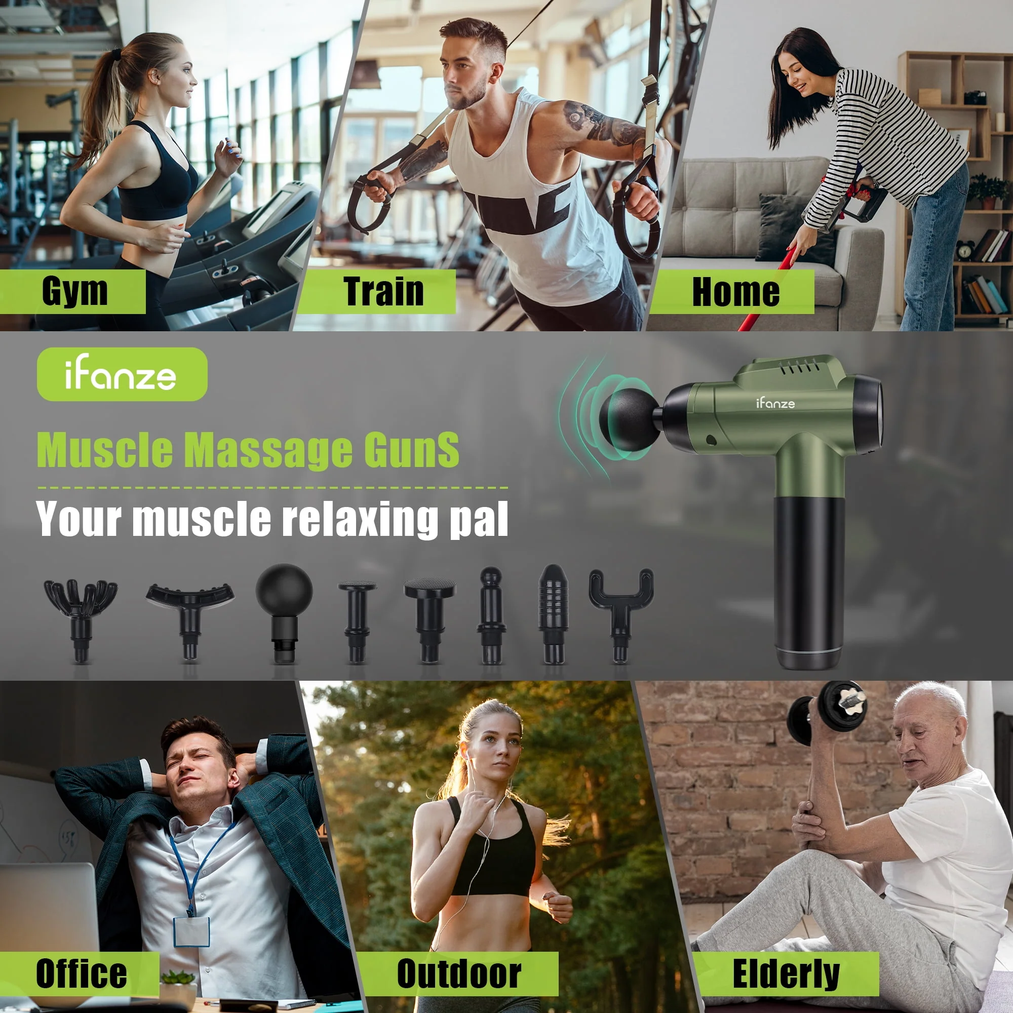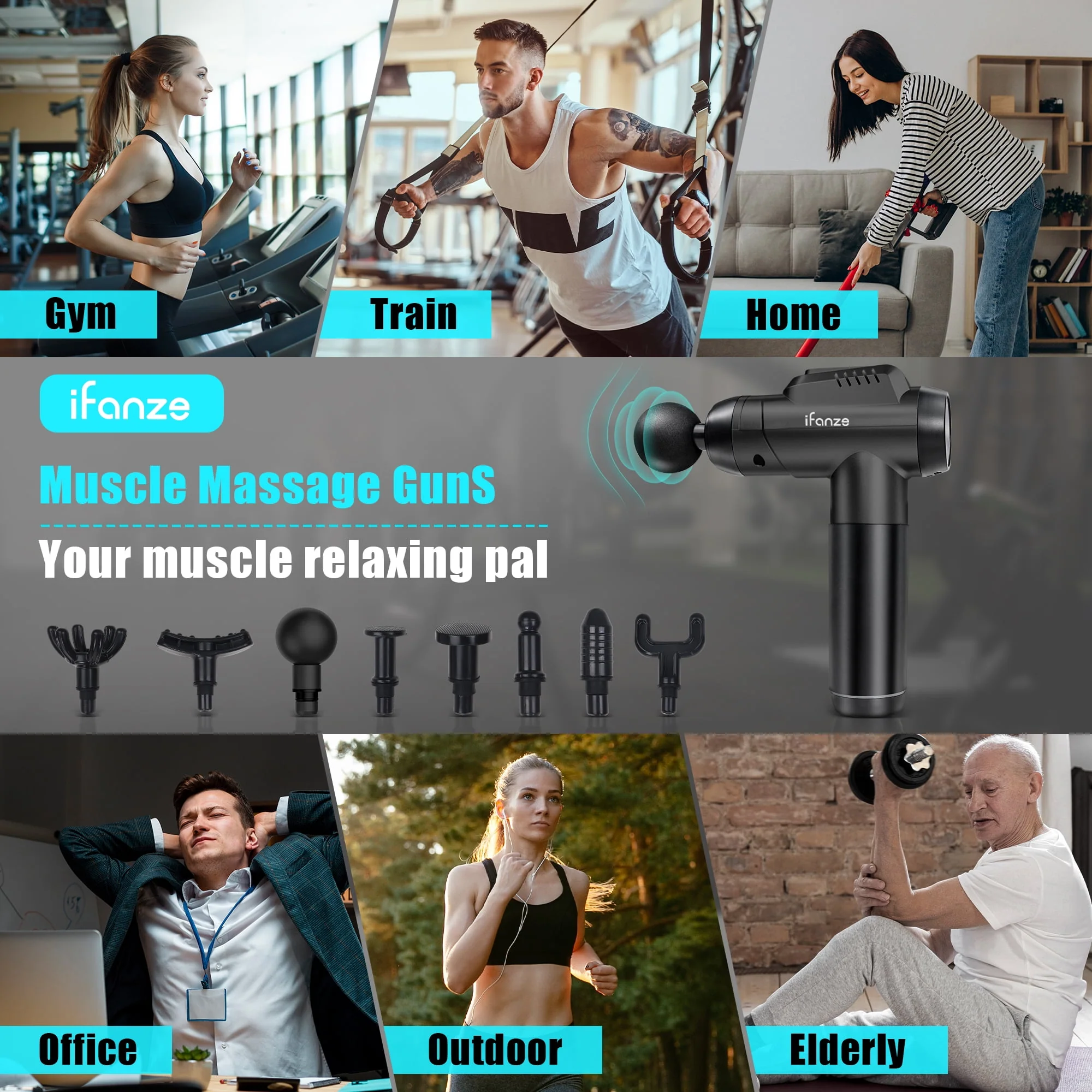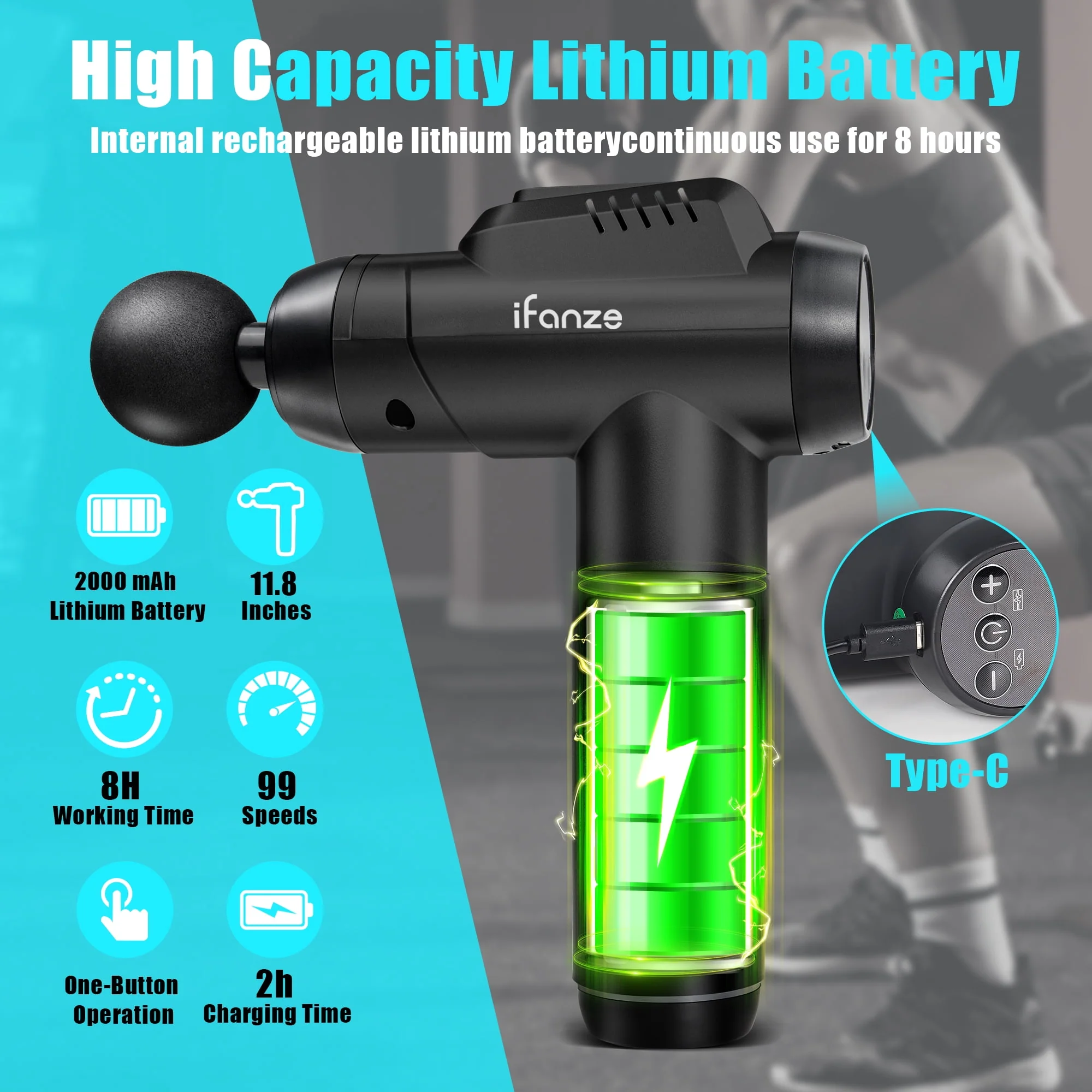 iFanze Massage Gun Deep Tissue, 99 Speeds Quiet Handheld Electric Muscle Massager with 8 Replacement Heads for Gym Office Home Post-Workout Recovery, Black
