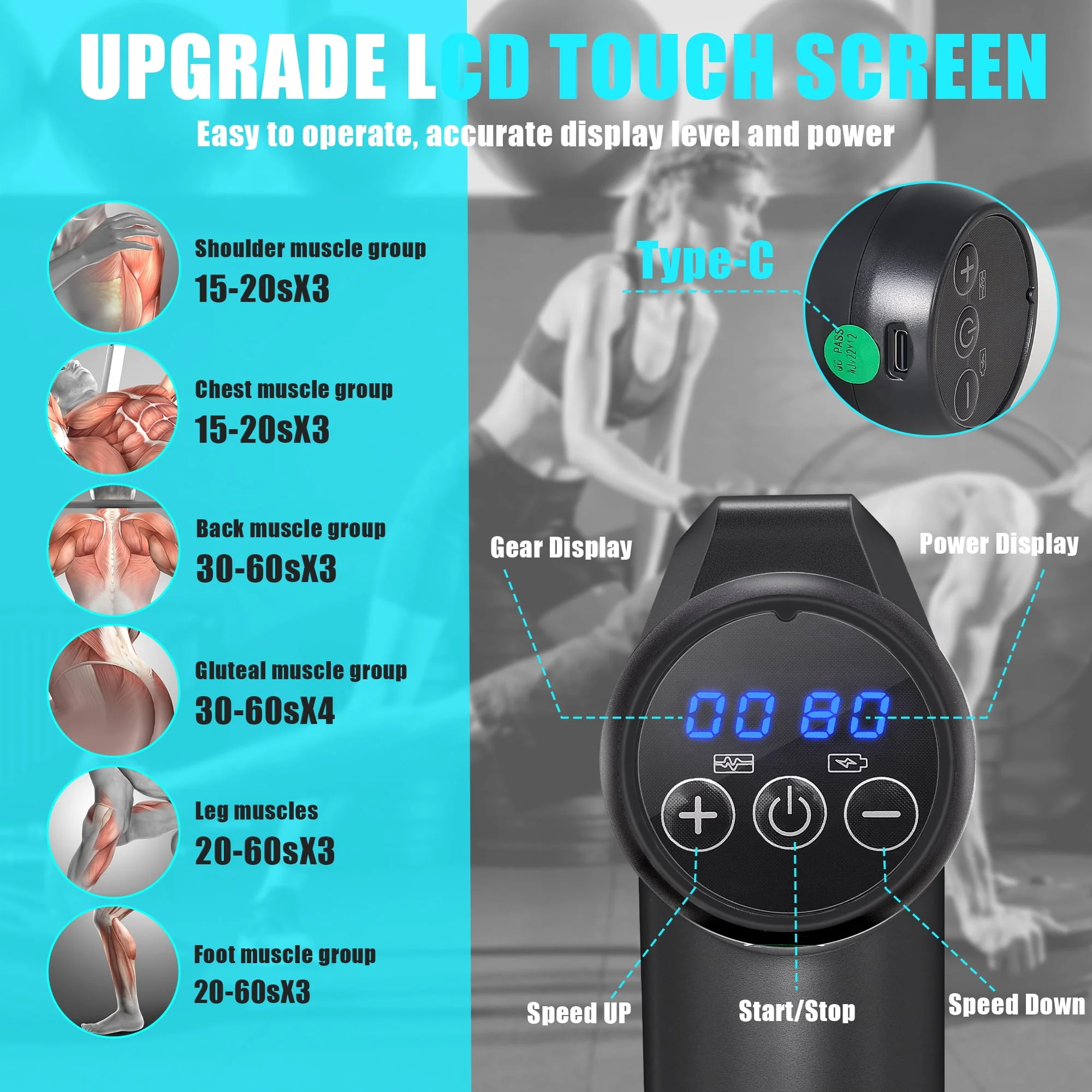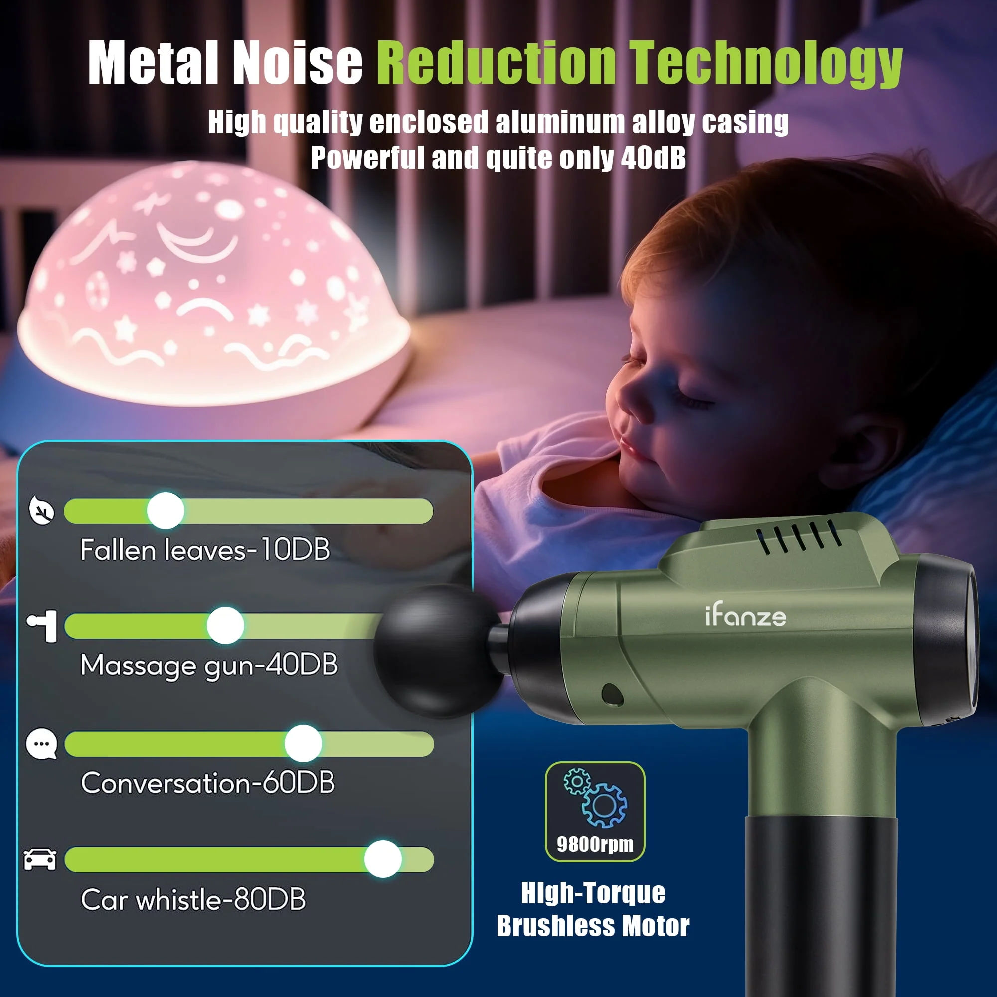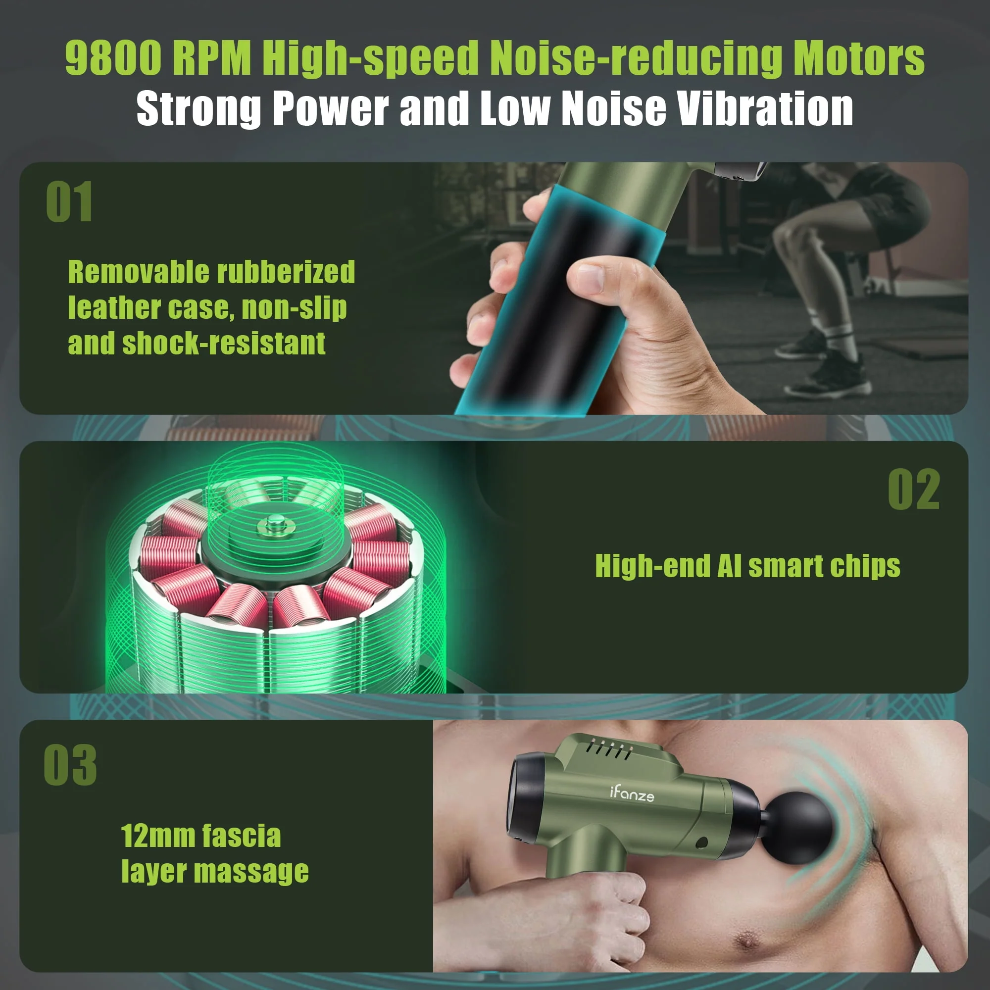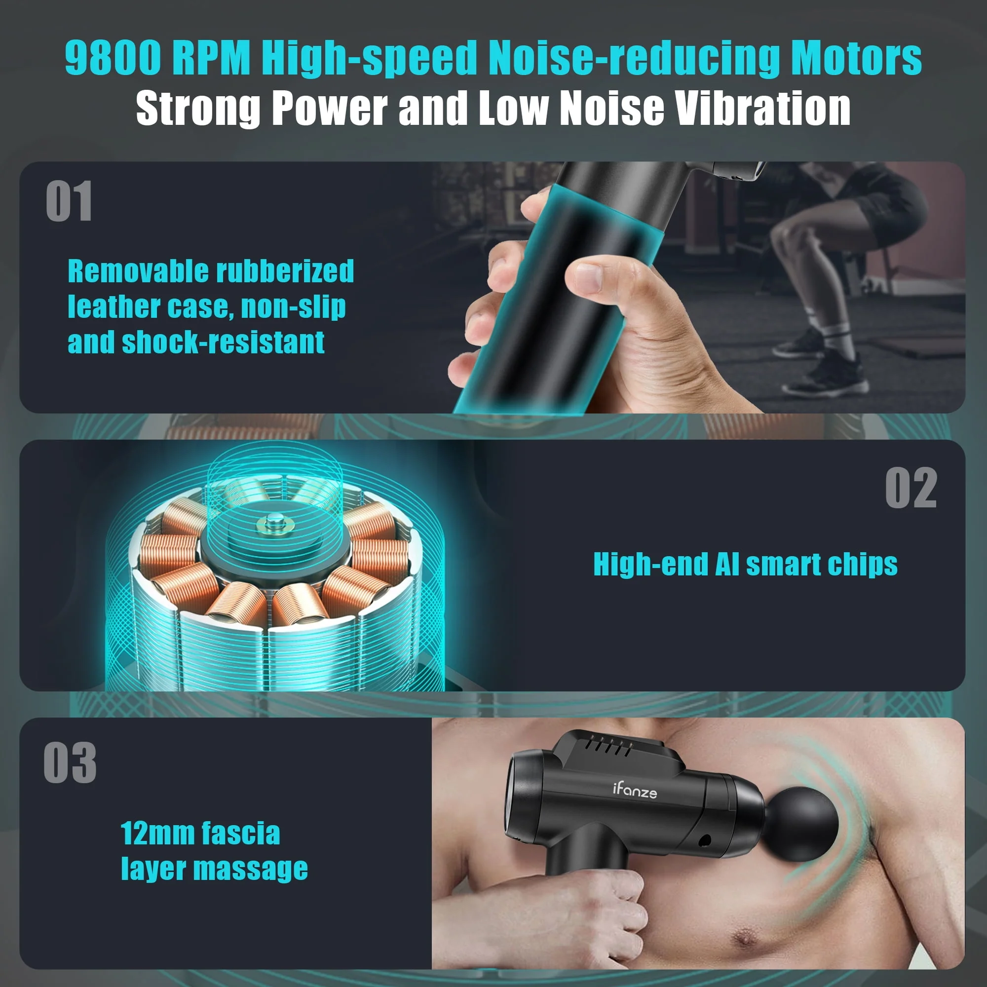 iFanze Massage Gun Deep Tissue, 99 Speeds Quiet Handheld Electric Muscle Massager with 8 Replacement Heads for Gym Office Home Post-Workout Recovery, Black