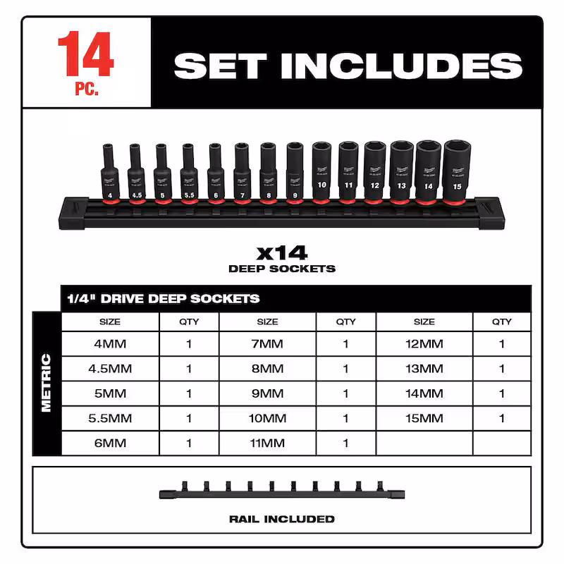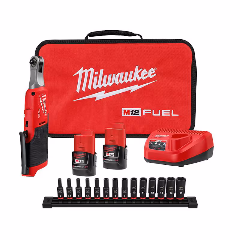 M12 FUEL 12V Cordless High Speed 1/4 in. Ratchet Kit with 1/4 in. Drive Metric Deep Well Impact Socket Set(14-Piece)