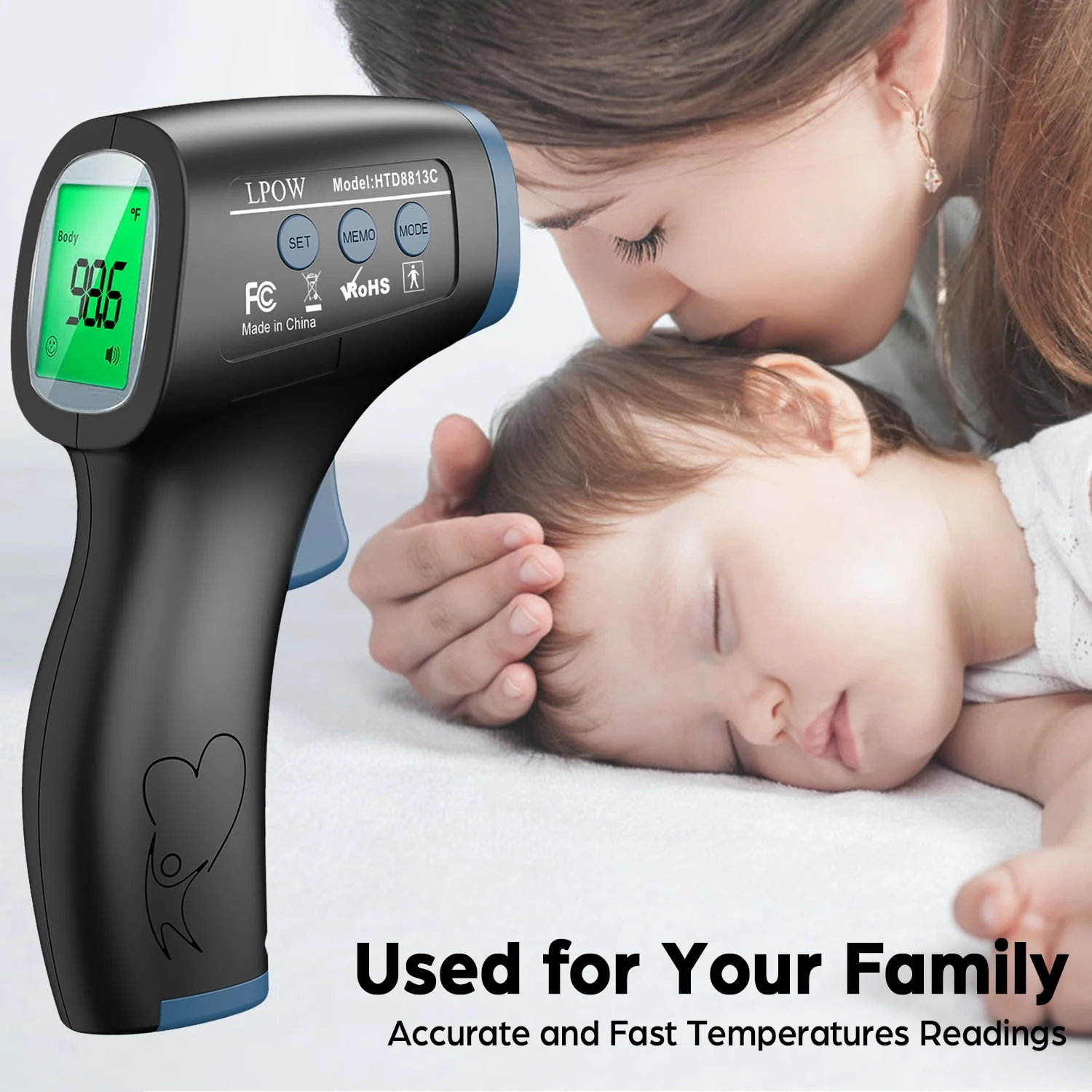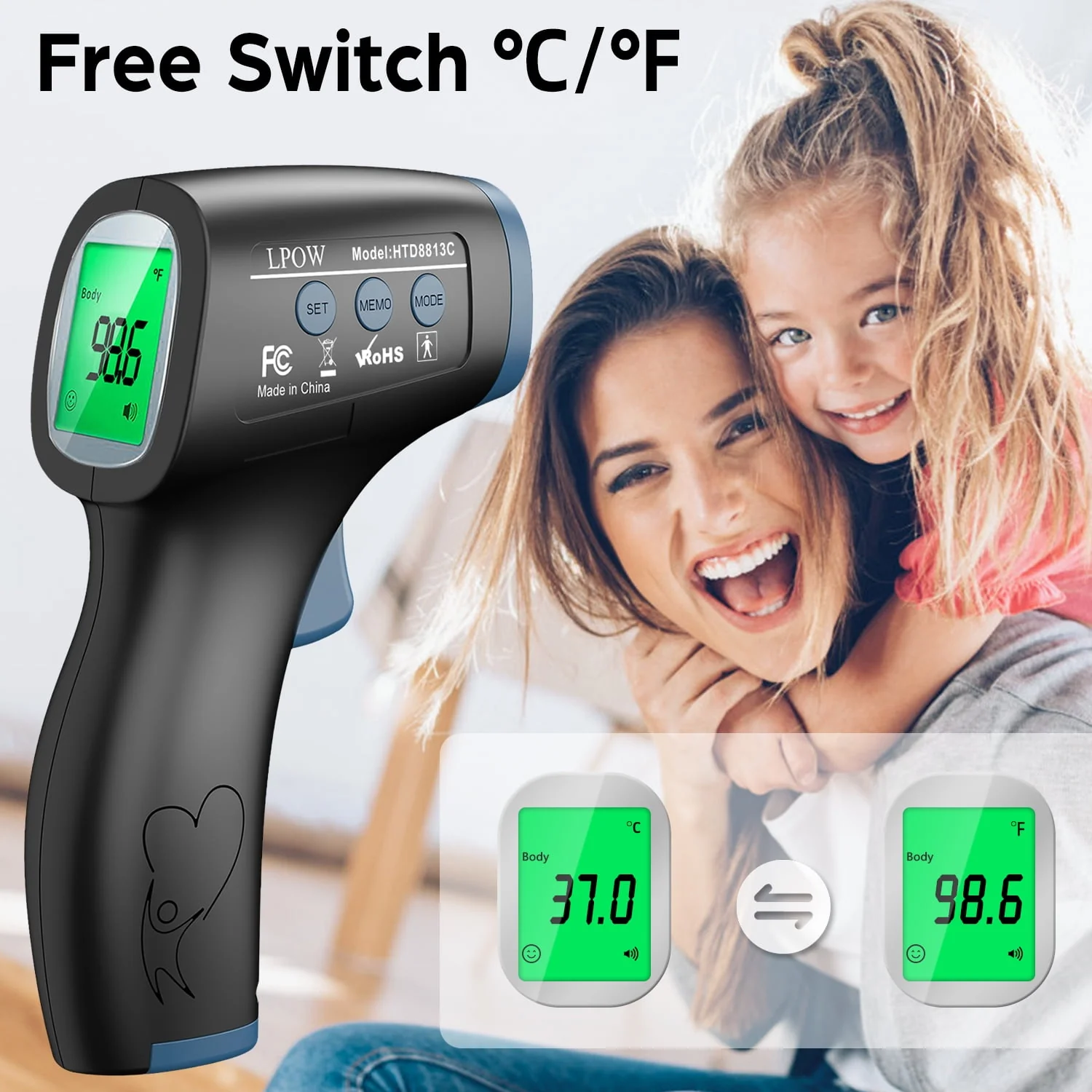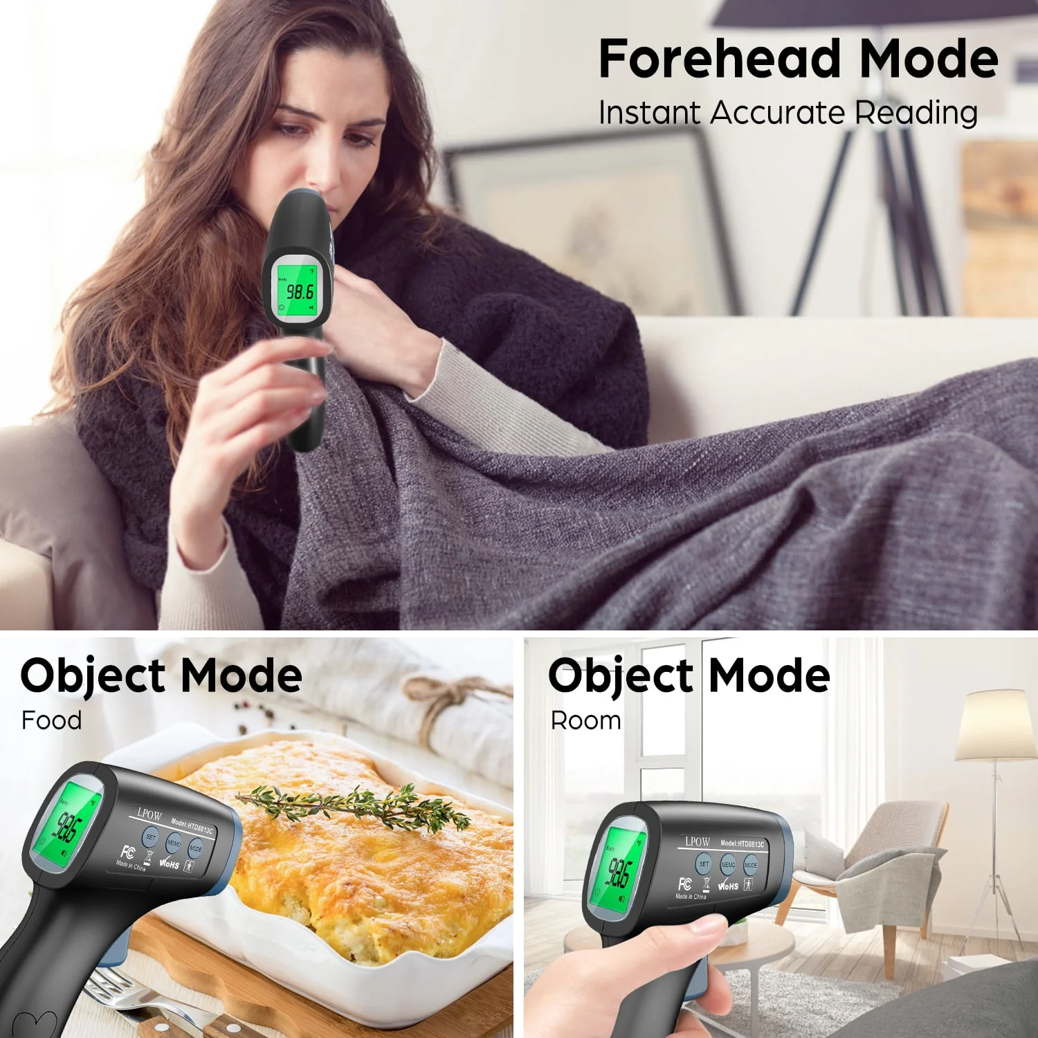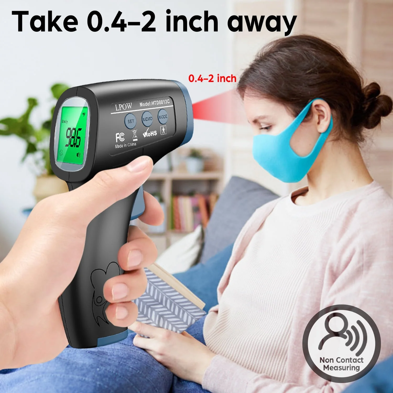 LPOW Infrared Digital Forehead Thermometer, 1s Reading, 3 Colors Backlight, 50 Memories Recall, All Ages