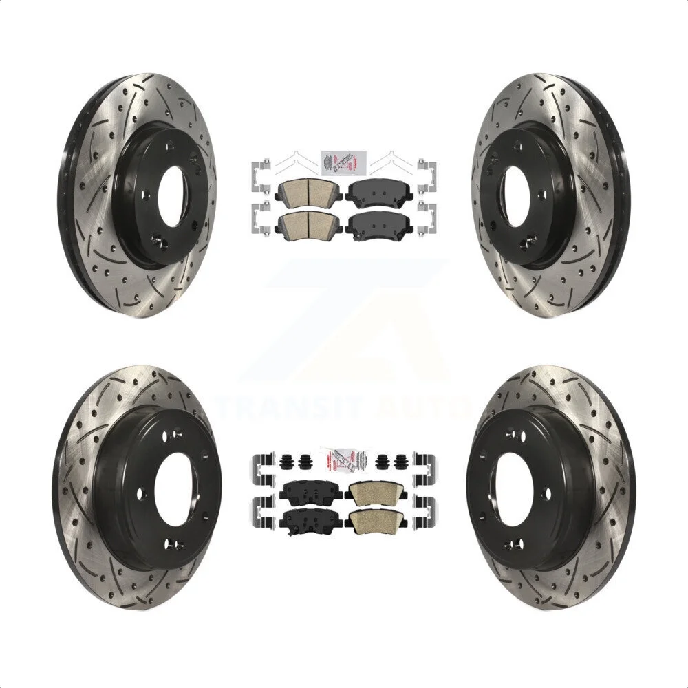 Transit Auto - Front Rear Ceramic Pads And Coated Drilled Slotted Disc Brake Rotors Kit For Kia Forte Hyundai Elantra GT Forte5 Koup KDA-101468 - Curated Treasures Market