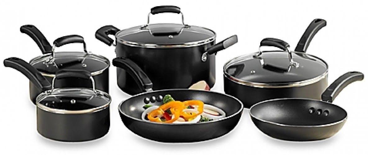Invitations Everyday Nonstick 10-Piece Cookware Set, Black - Megean