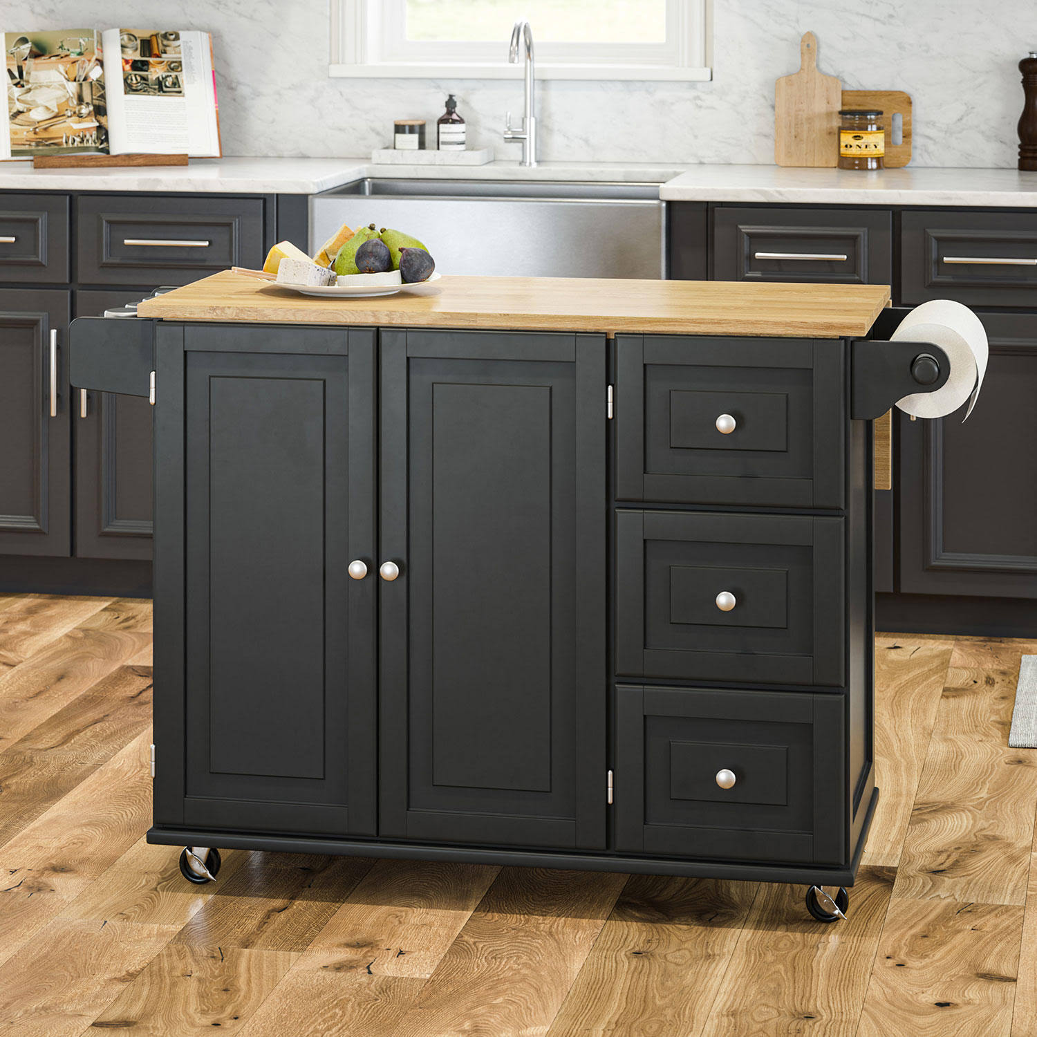 Homestyles Blanche Black Drop Leaf Kitchen Cart - Black - Megean