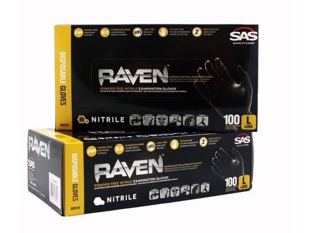 SAS Safety 66518 Raven Powder-Free Black Nitrile 6 Mil Gloves, Large, 2 Pack - Avayadevconnect