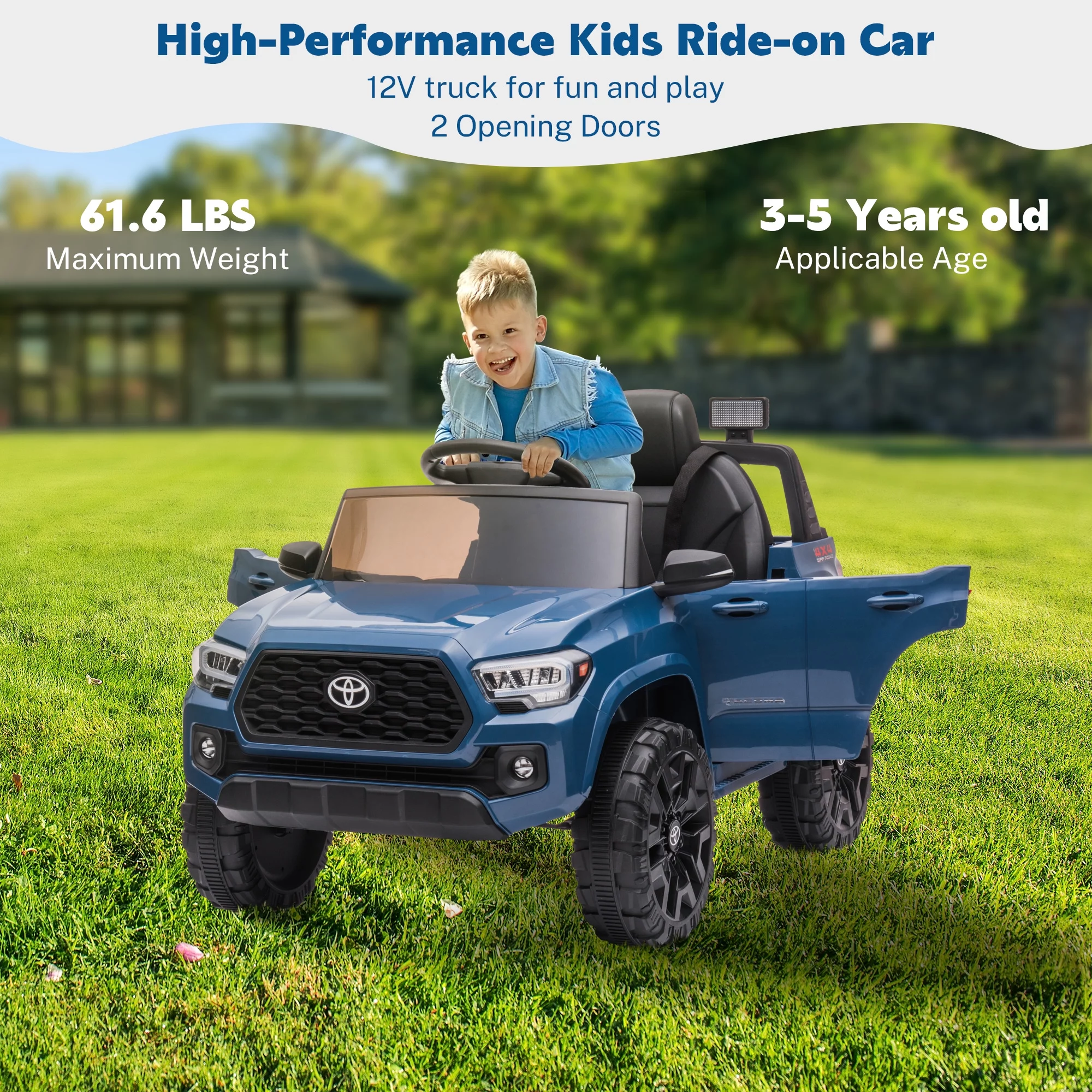 12V Kids Licensed Toyota Tacoma Electric Vehicle, Ride On Car Truck w/ Remote Control, 4 Tries Boys Girls Ride-on Toy with Brakes and Gas Pedal, 2 LED Headlights, Blue, SS2629 - Curated Treasures Market