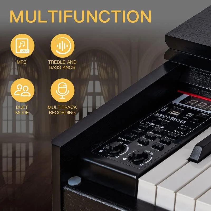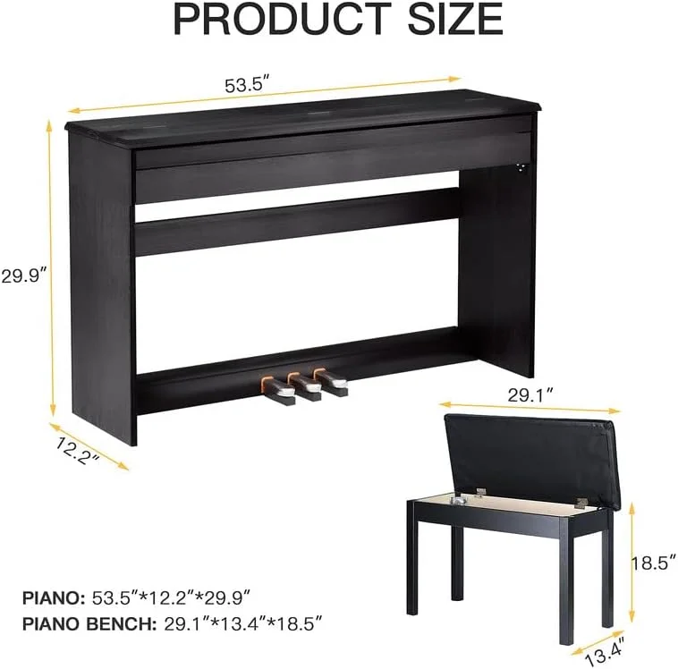 HEXANT 88-Key Weighted Digital Piano, Full-Size Semi-Weighted Upright Flip Electric Keyboard Piano with 3 Pedal and Multi-Functional Keyboard for Beginner(with Bench,Black) - Curated Treasures Market