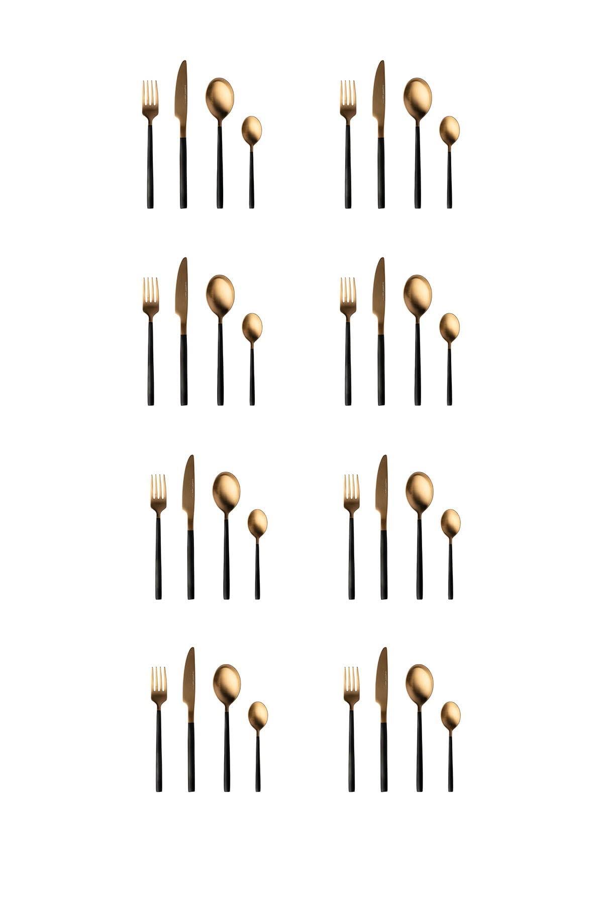 BergHOFF Gem 32-Piece Flatware Set, Black and Gold Plated - Megean
