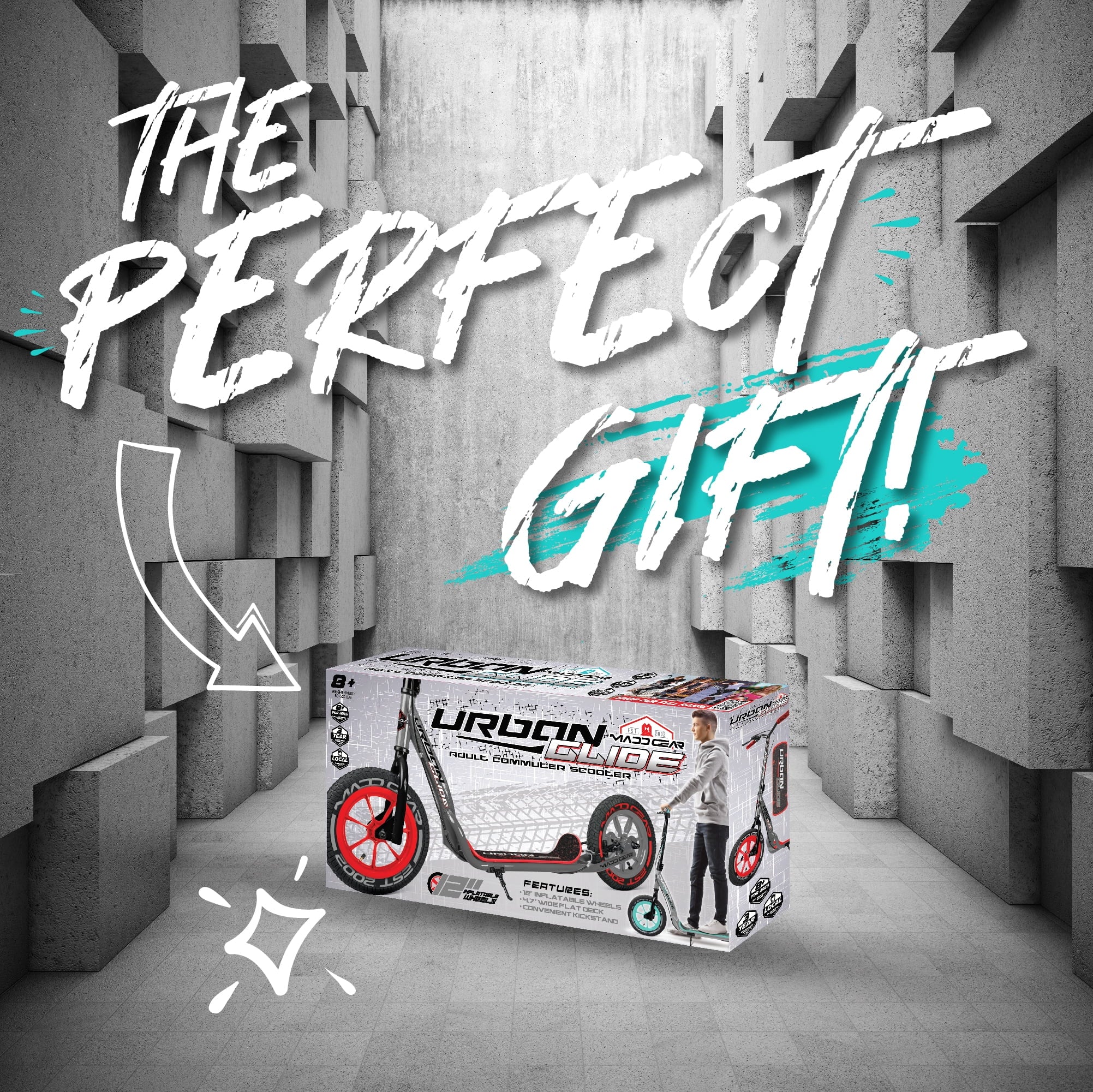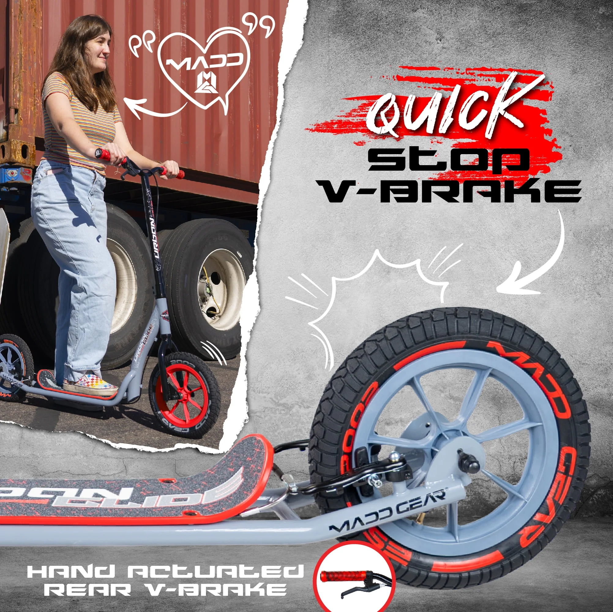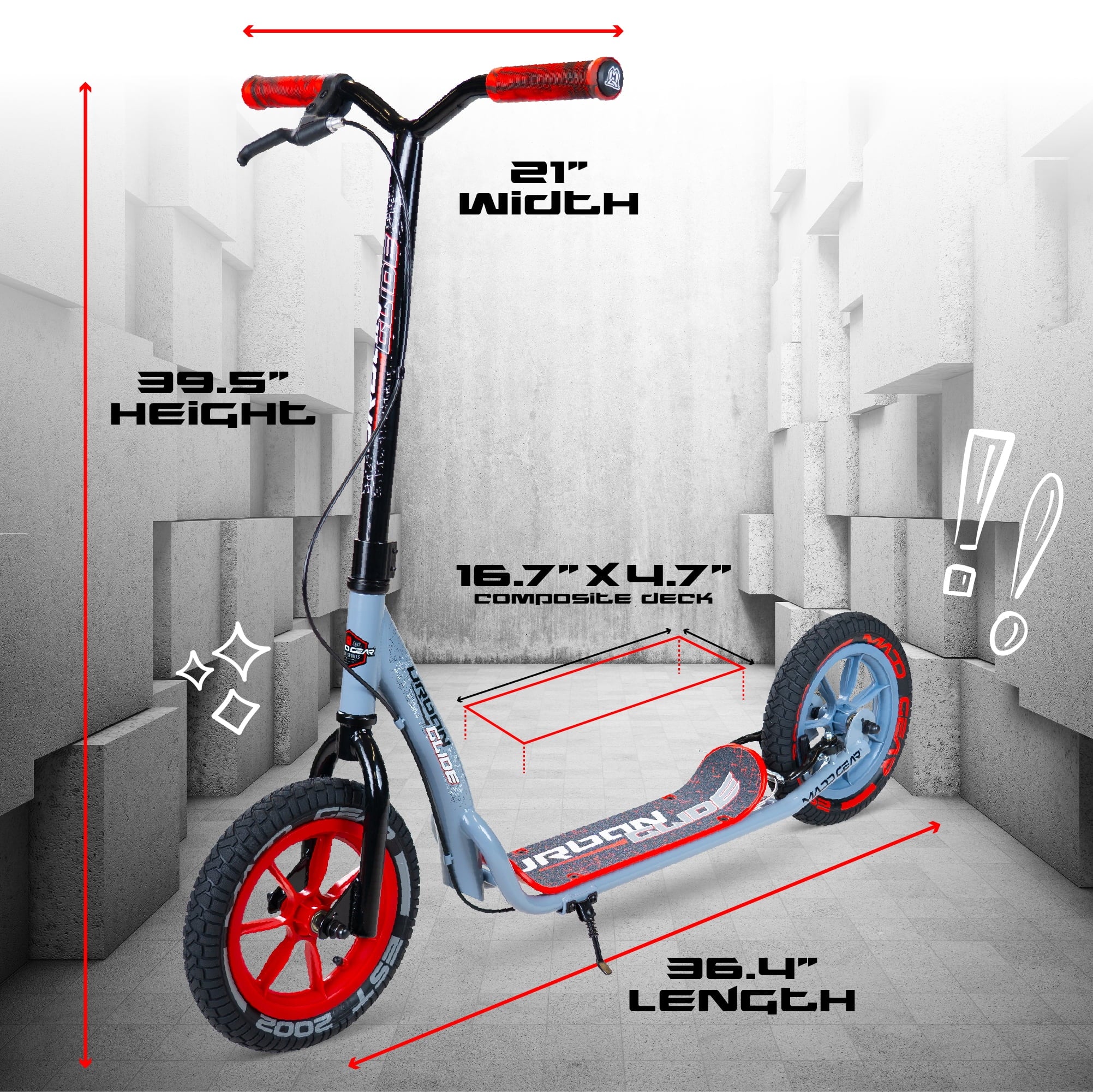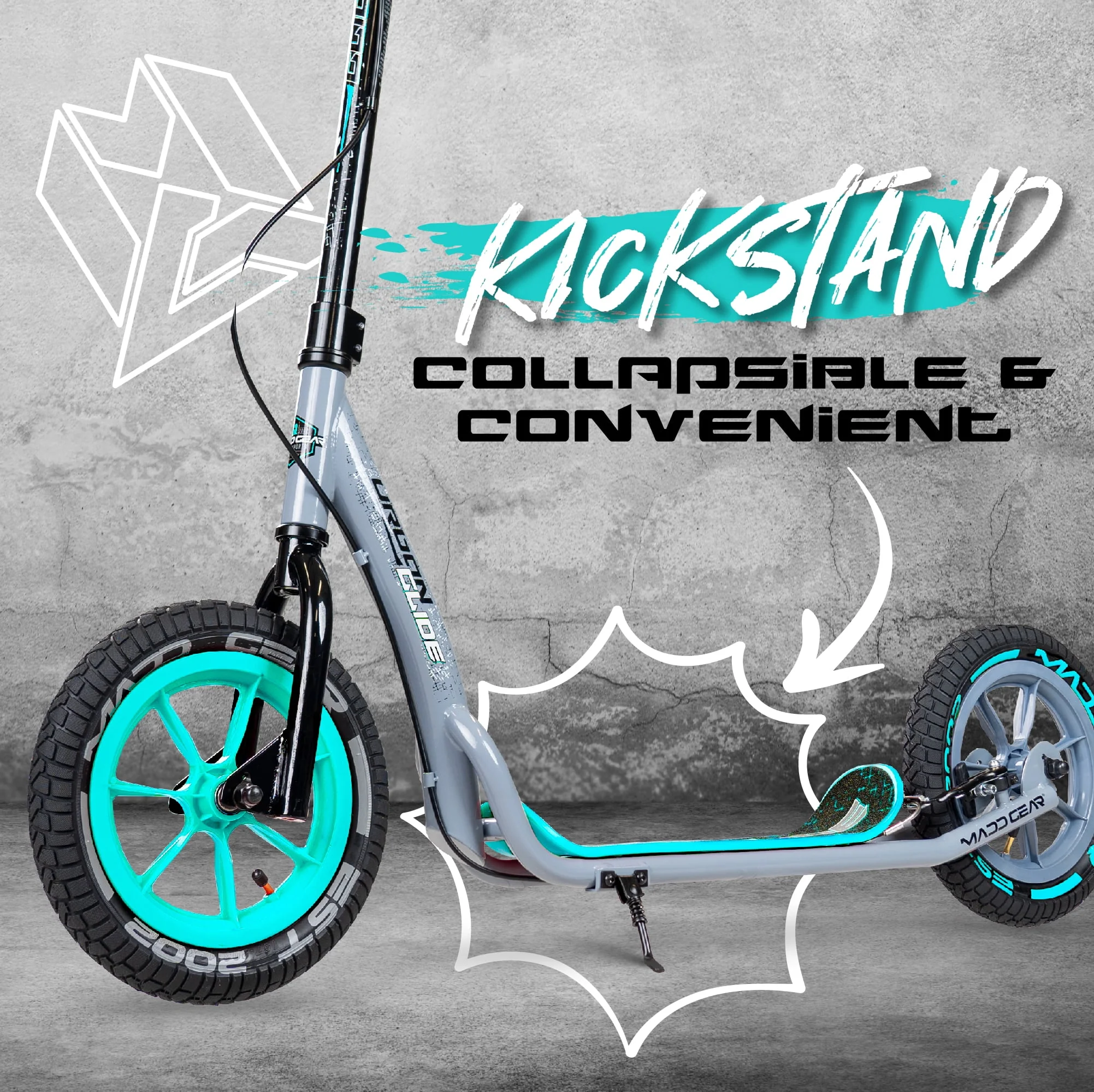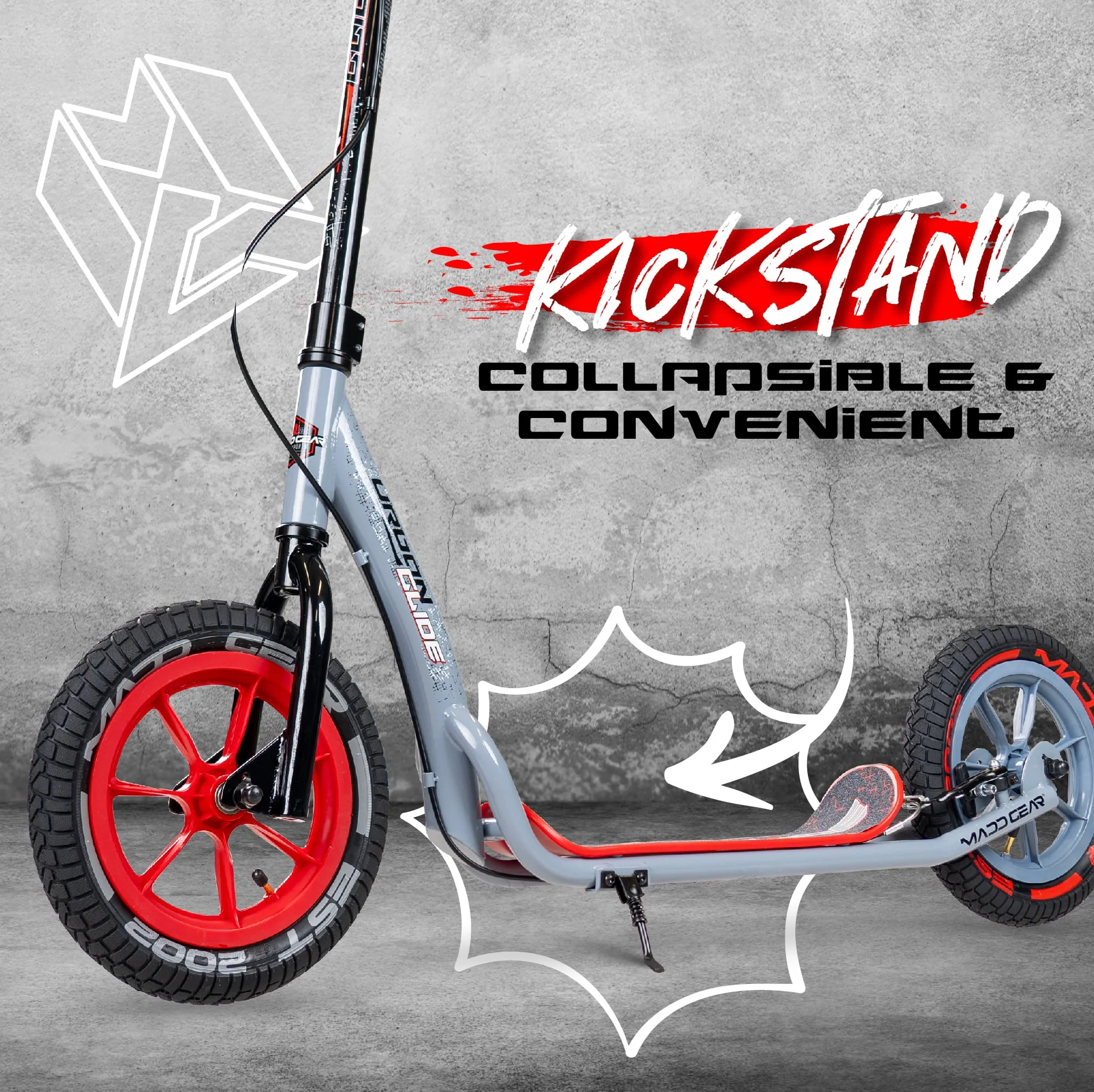 Madd Gear Urban Glide Commuter Kick Scooter for Adults and Teens with Large Smooth Rolling Rubber Tires.