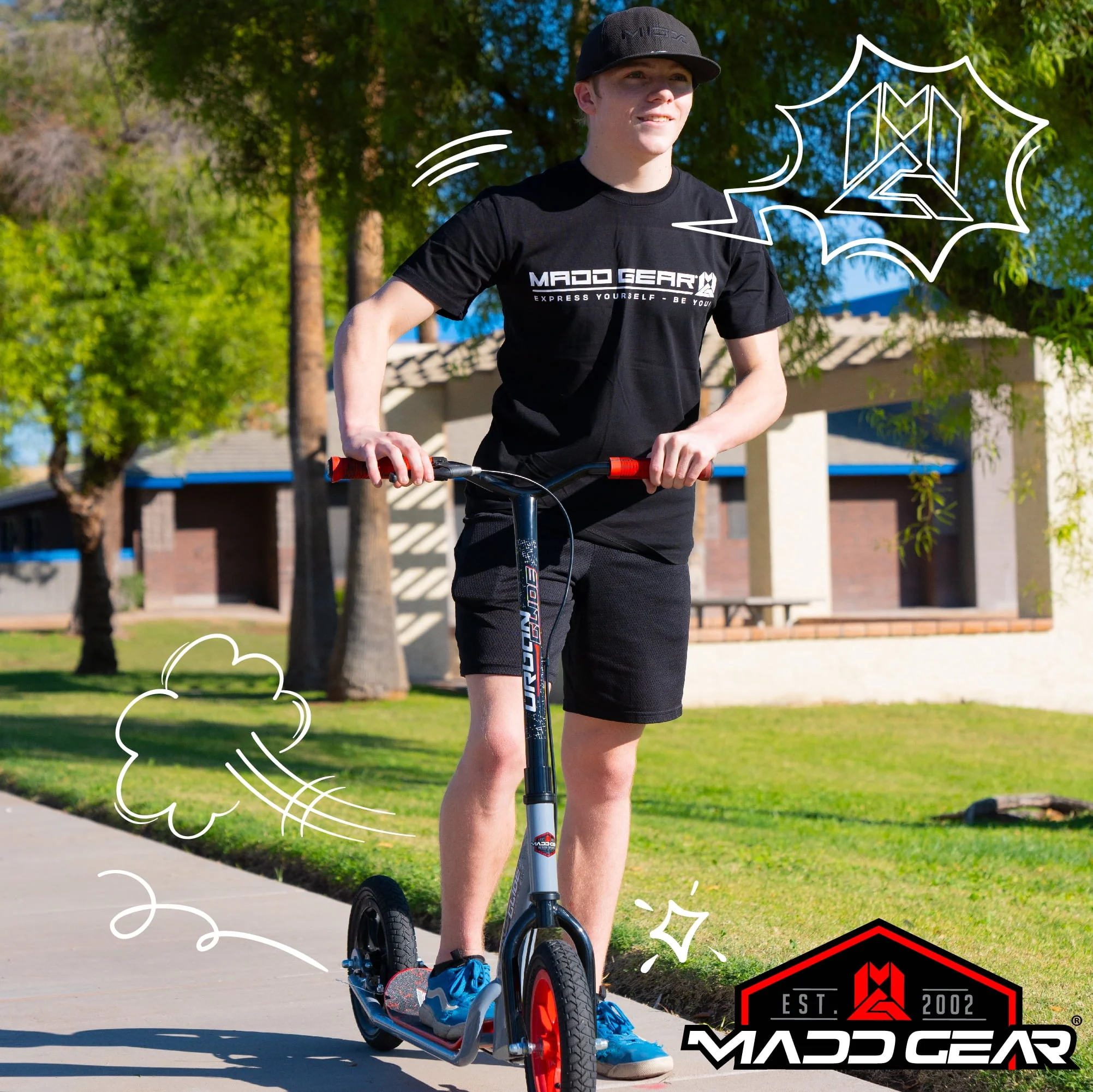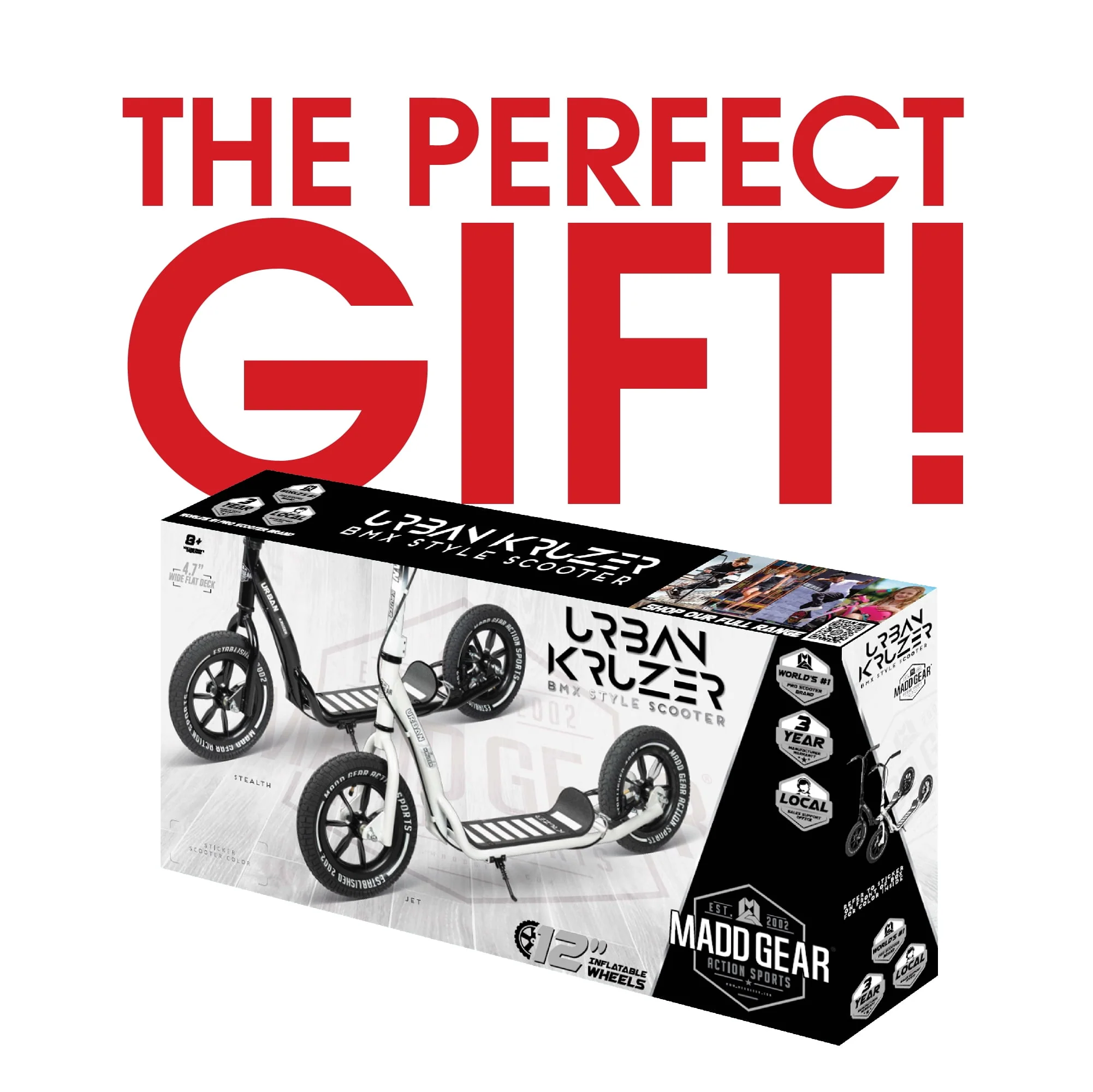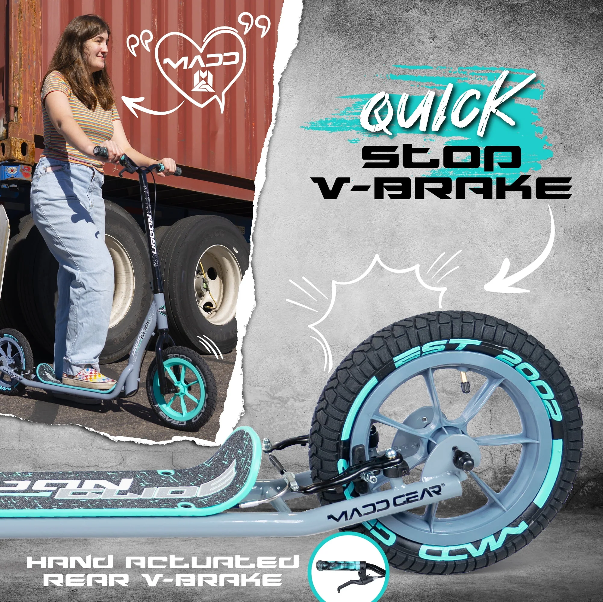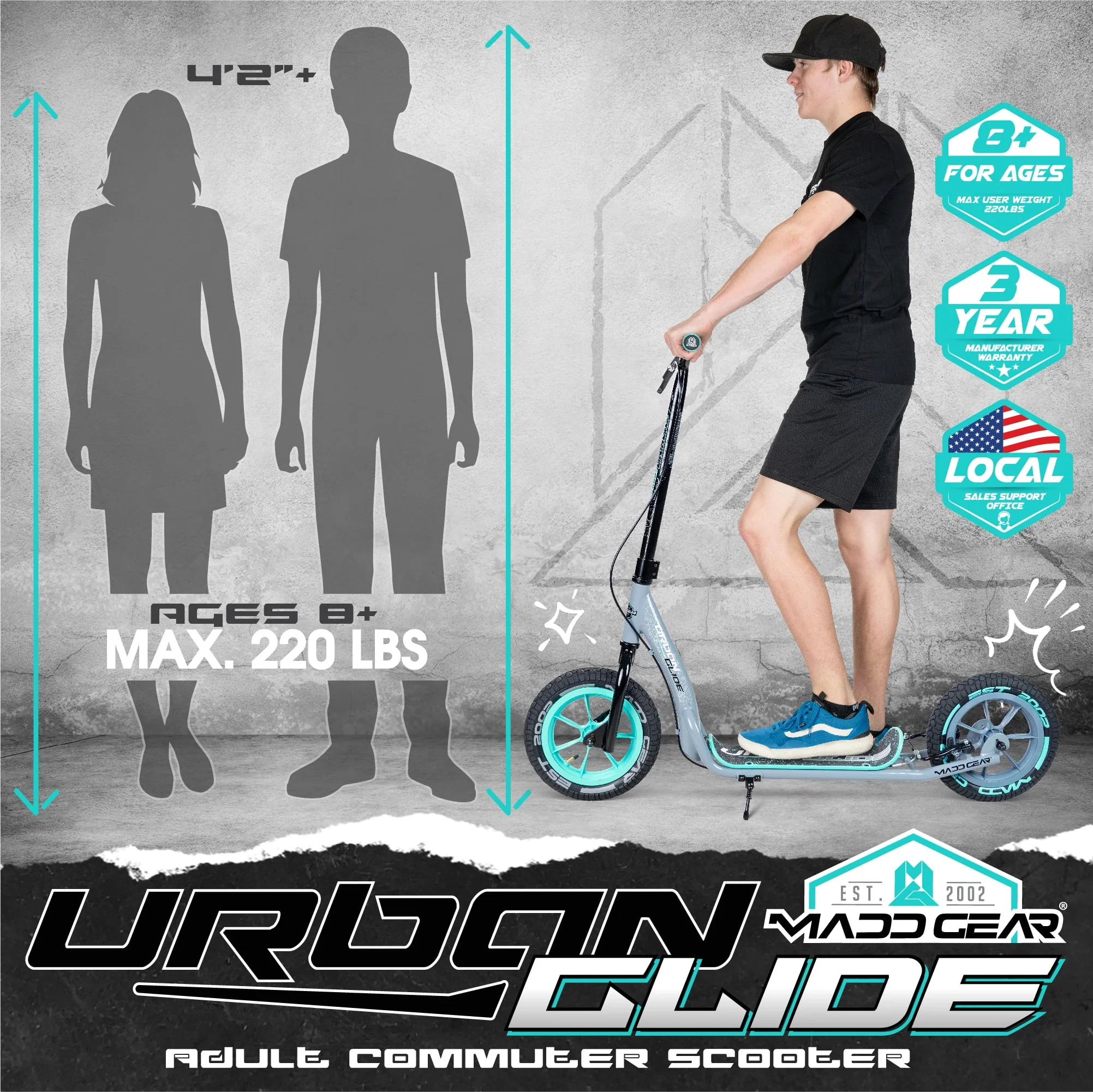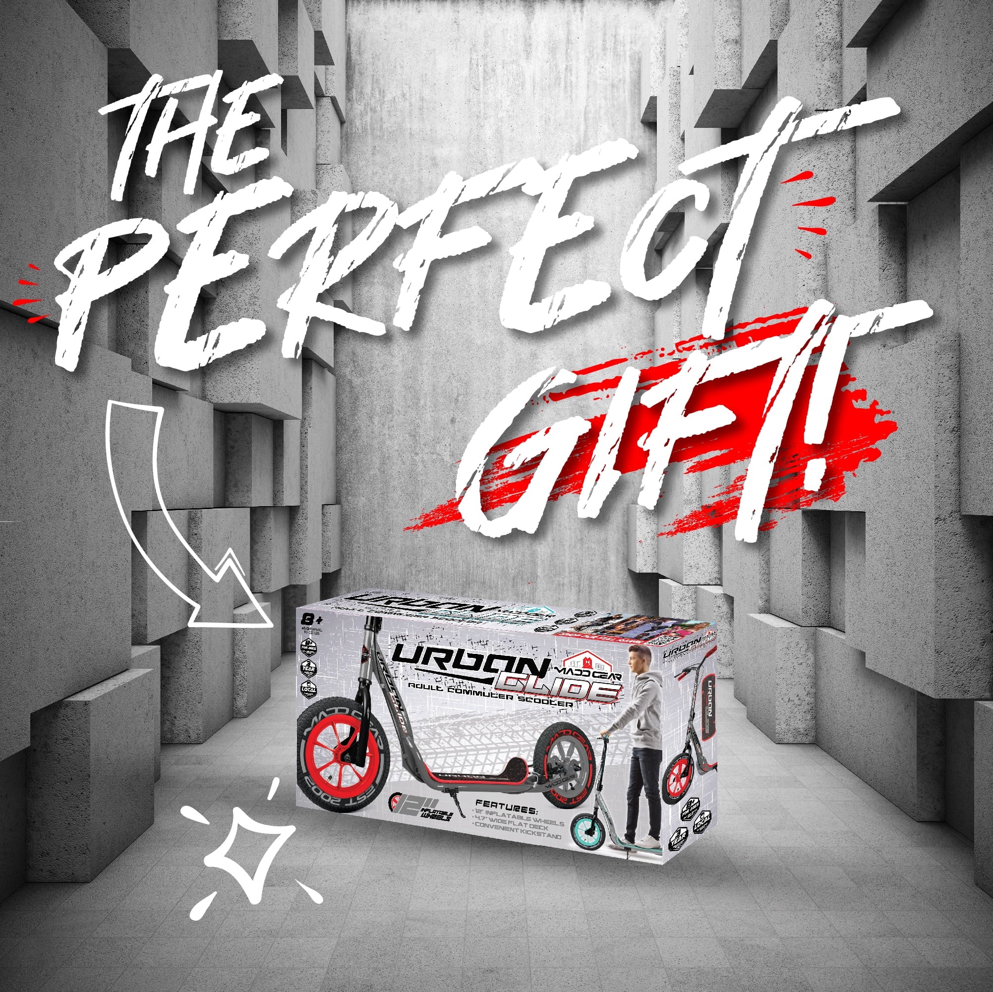 Madd Gear Urban Glide Commuter Kick Scooter for Adults and Teens with Large Smooth Rolling Rubber Tires.