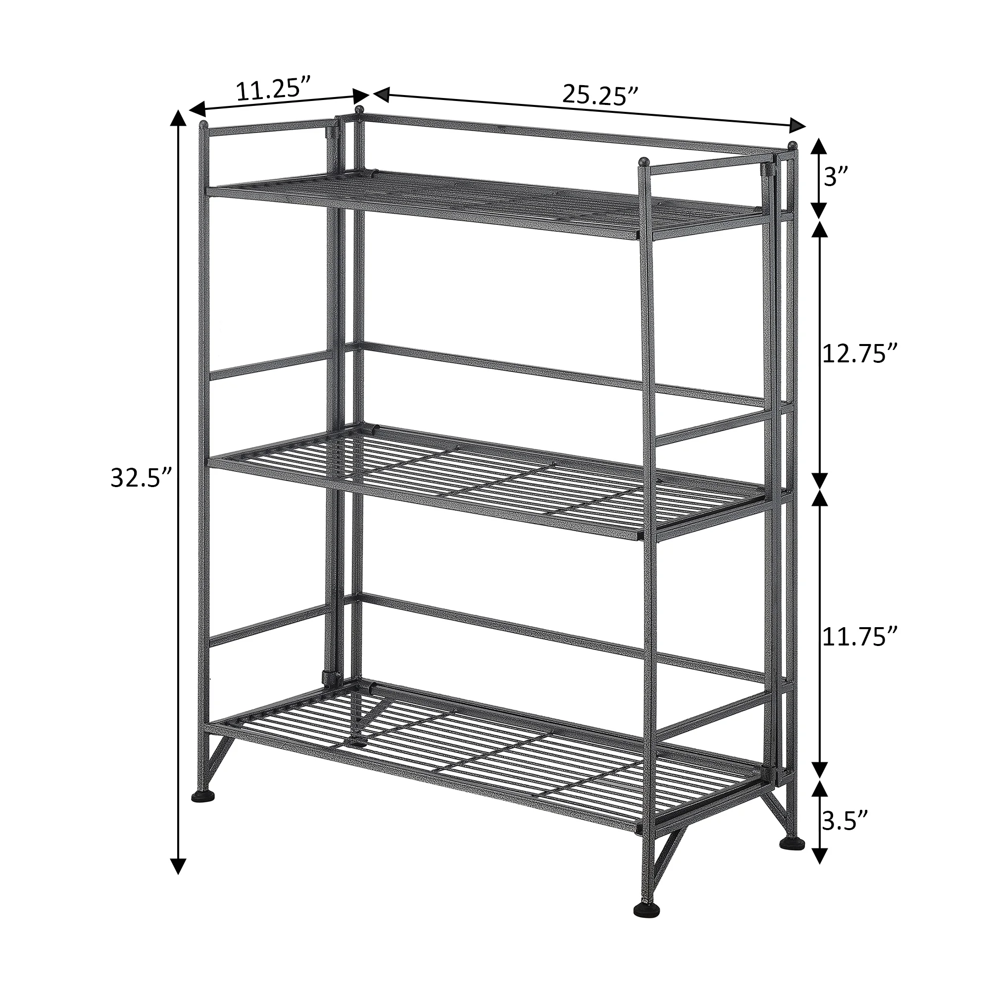 Convenience Concepts Xtra Storage 3 Tier Wide Folding Metal Shelf, Speckled Gray - Curated Treasures Market