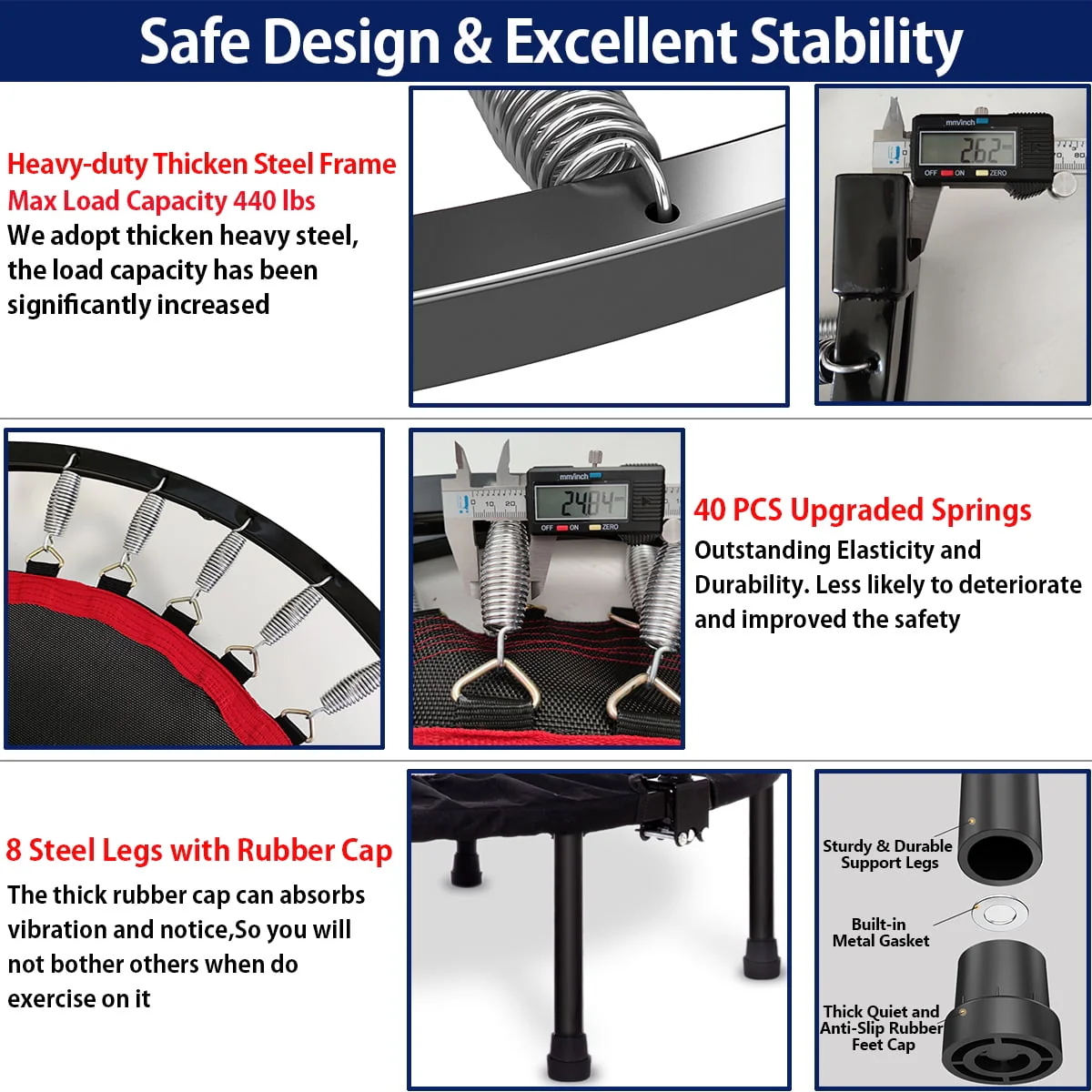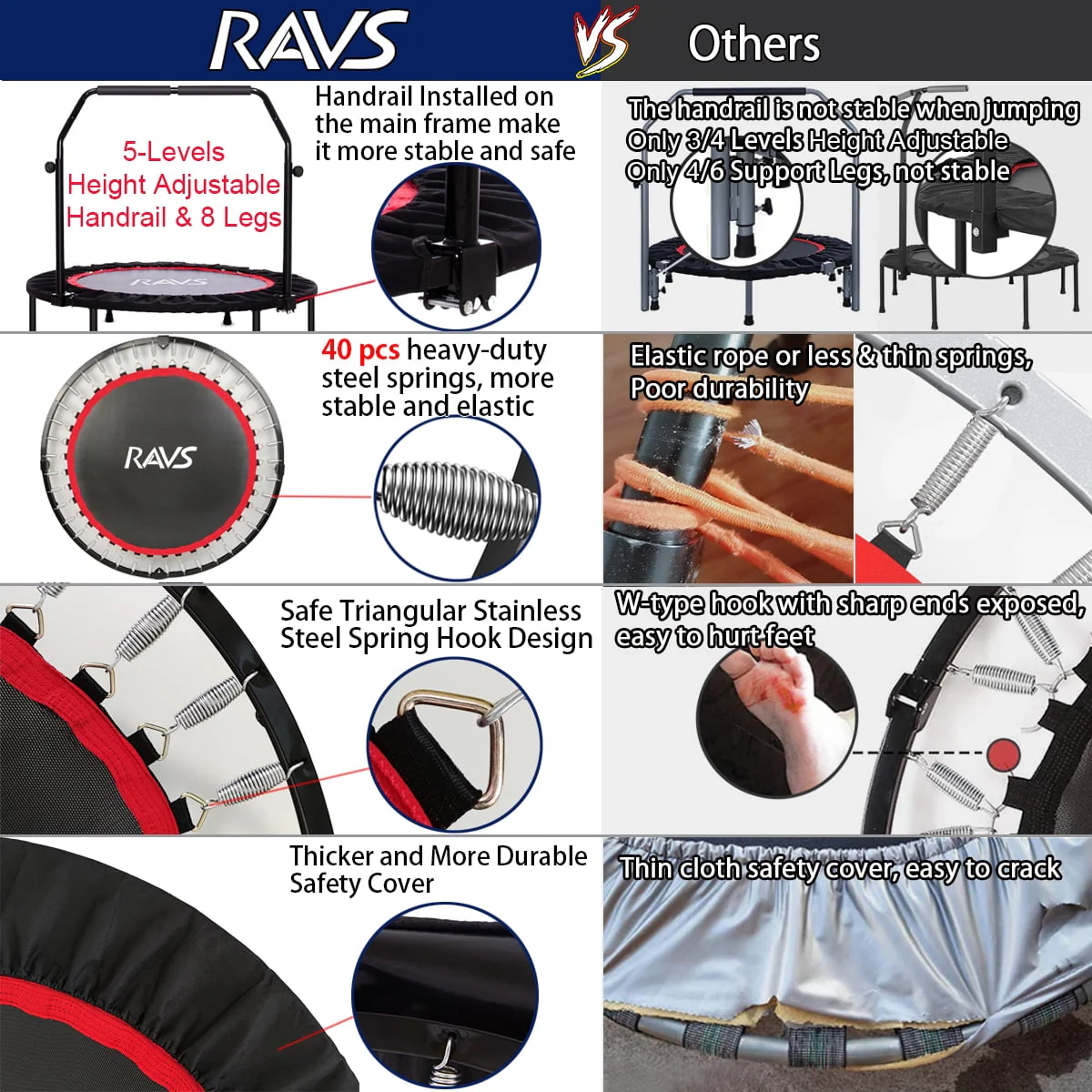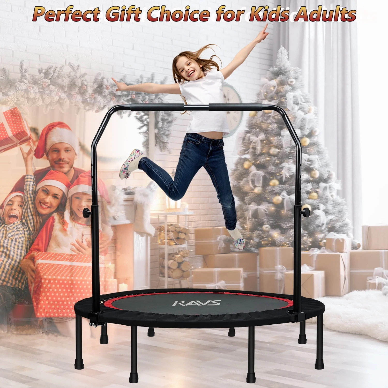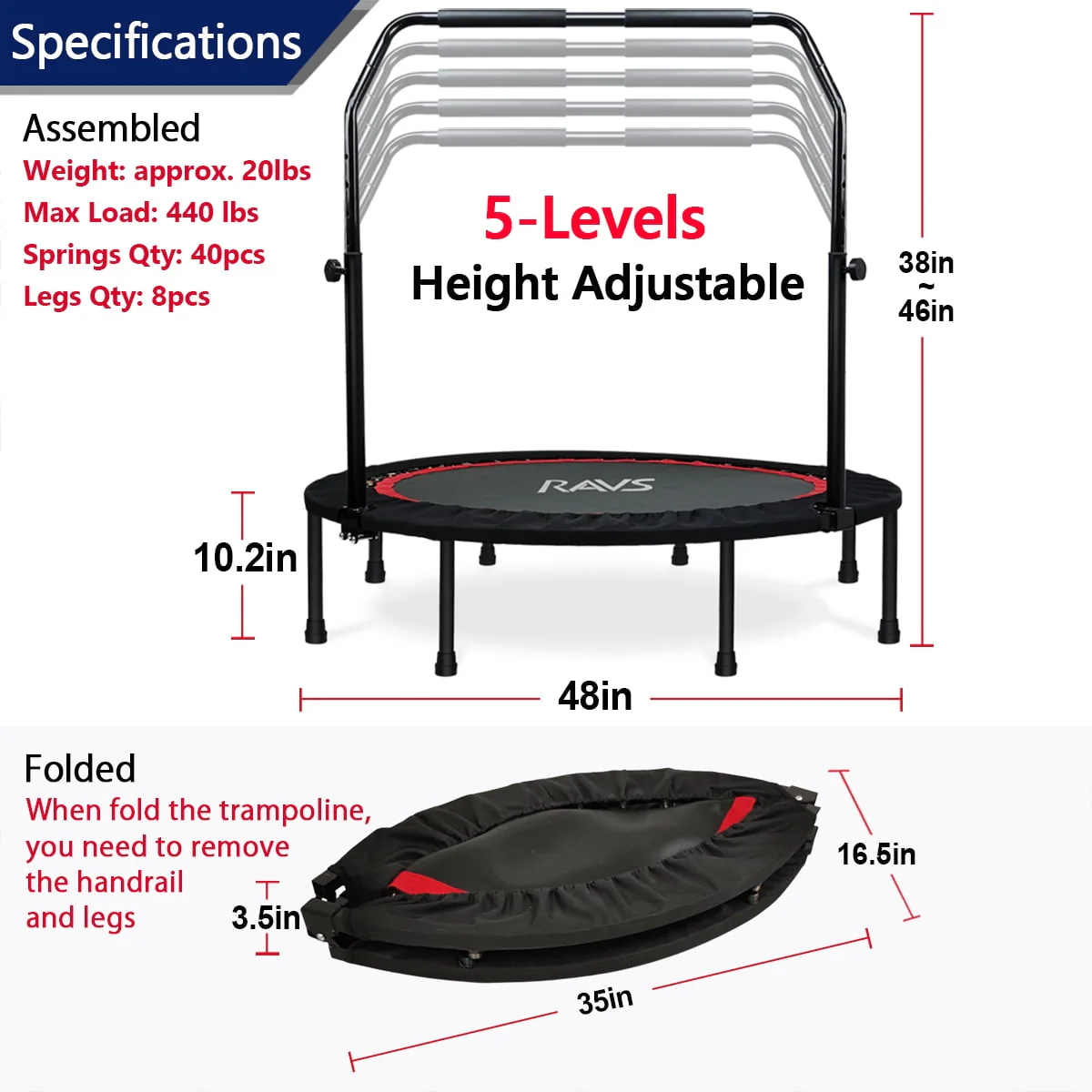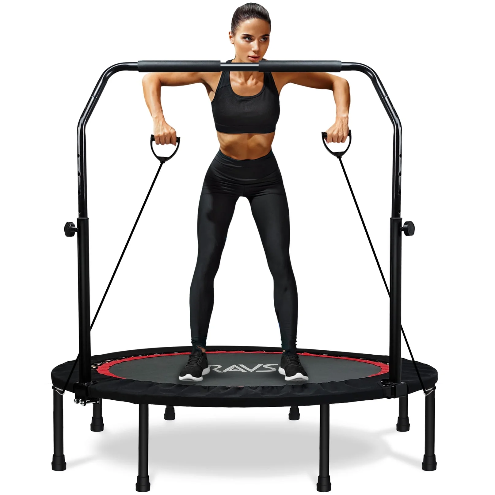 RAVS 48'' Inch Black Foldable Mini Fitness Trampoline Rebounder for Kids and Adults with Handle