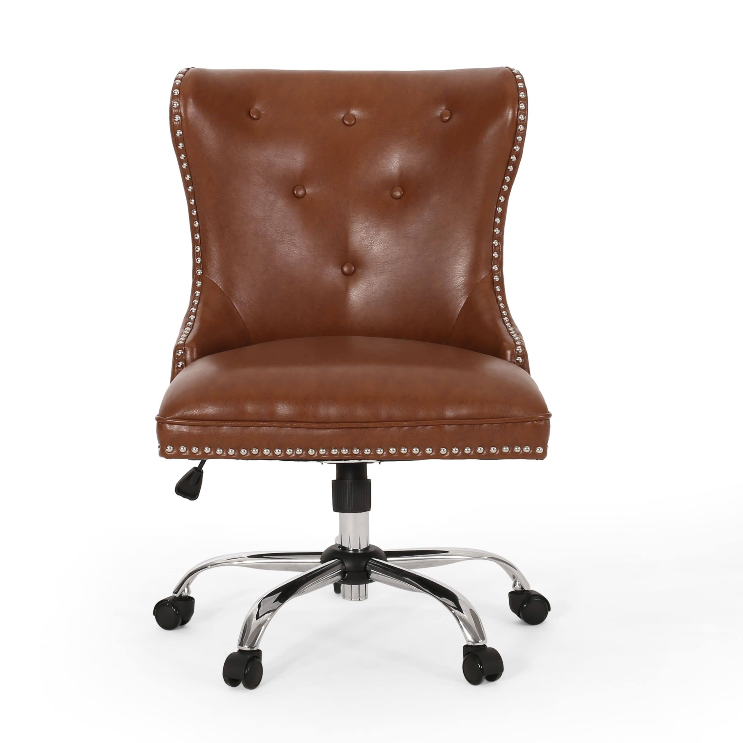 Christopher Knight Home Keith Contemporary Tufted Swivel Office Chair, Cognac Brown, Chrome - Avayadevconnect