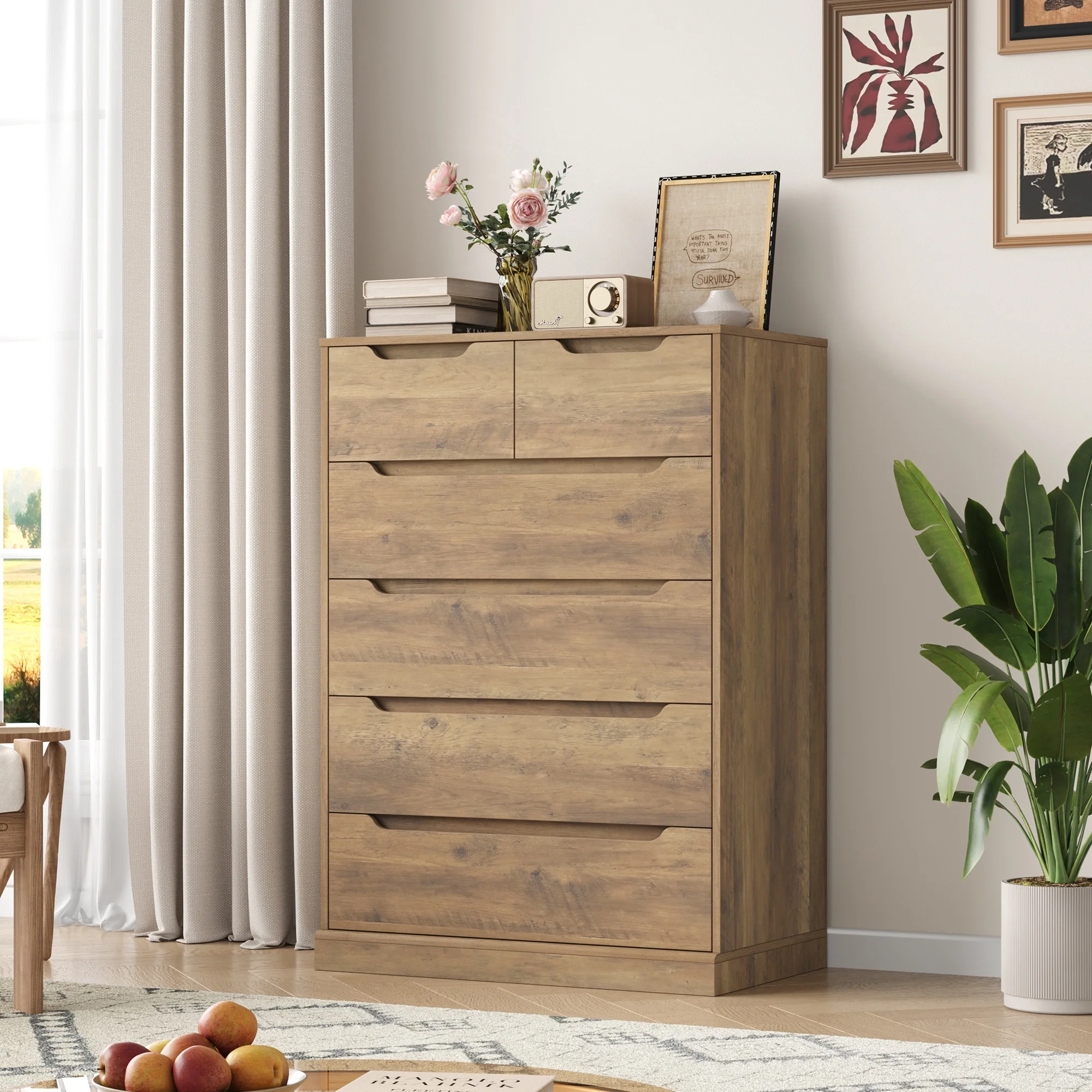 Homfa 6 Drawer White Dresser, Vertical Chest of Drawers Wood Storage Cabinet for Bedroom Living Room