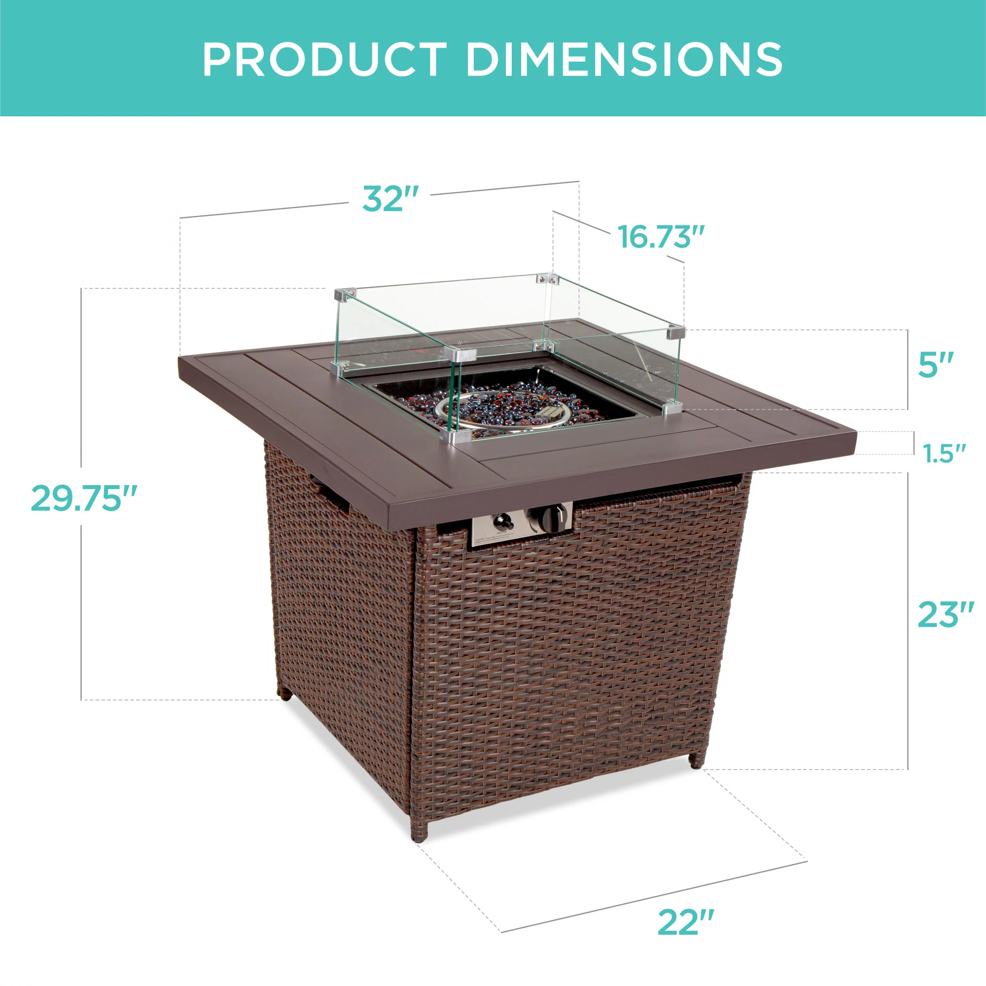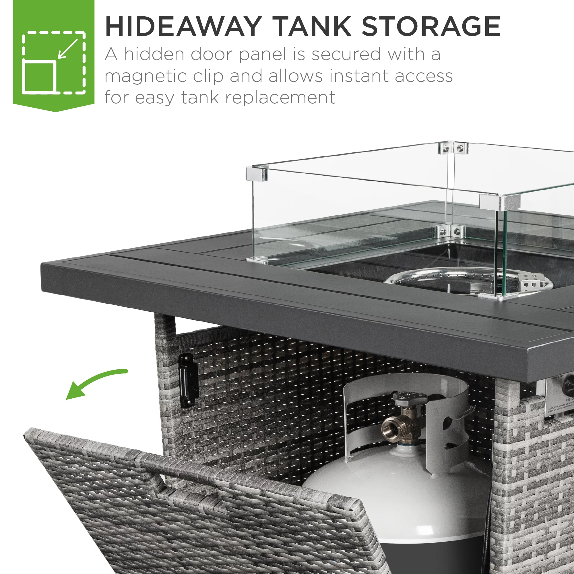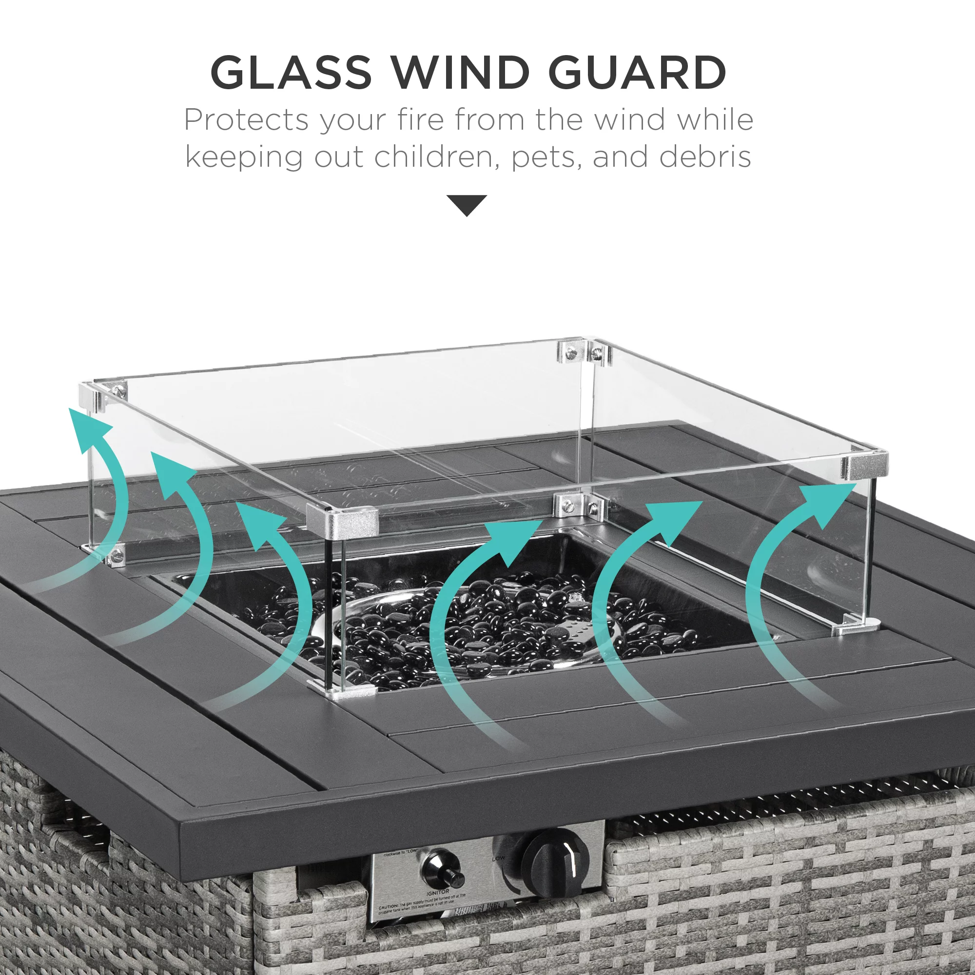 Best Choice Products 32in Fire Pit Table 50,000 BTU Outdoor Wicker Patio w/ Wind Guard, Glass Beads, Cover - Ash Gray