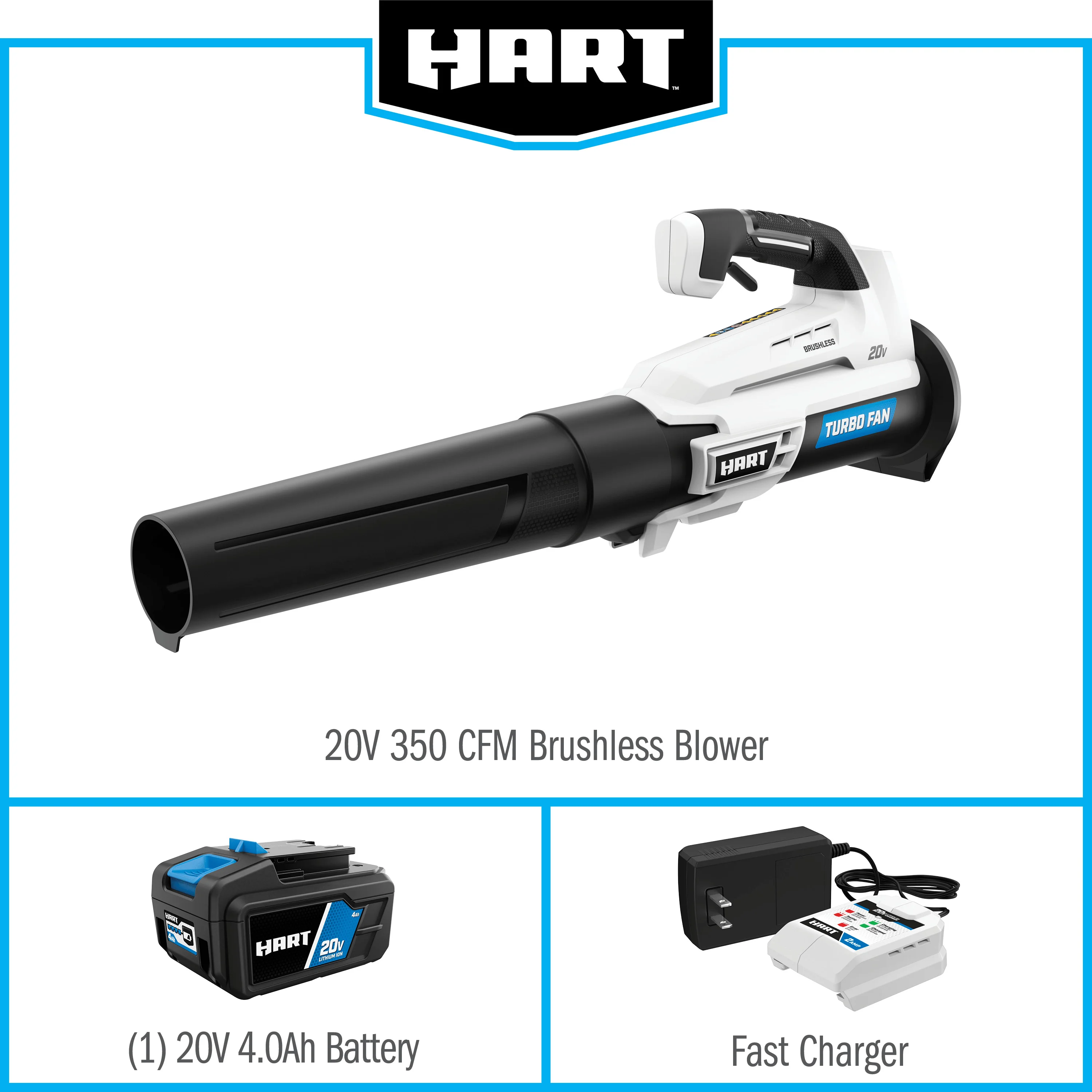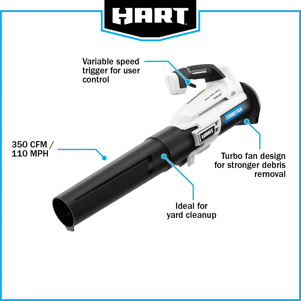 HART 20-Volt Brushless 110 mph at 350 CFM Turbo Fan Blower Kit, (1) 4.0Ah Lithium-Ion Battery