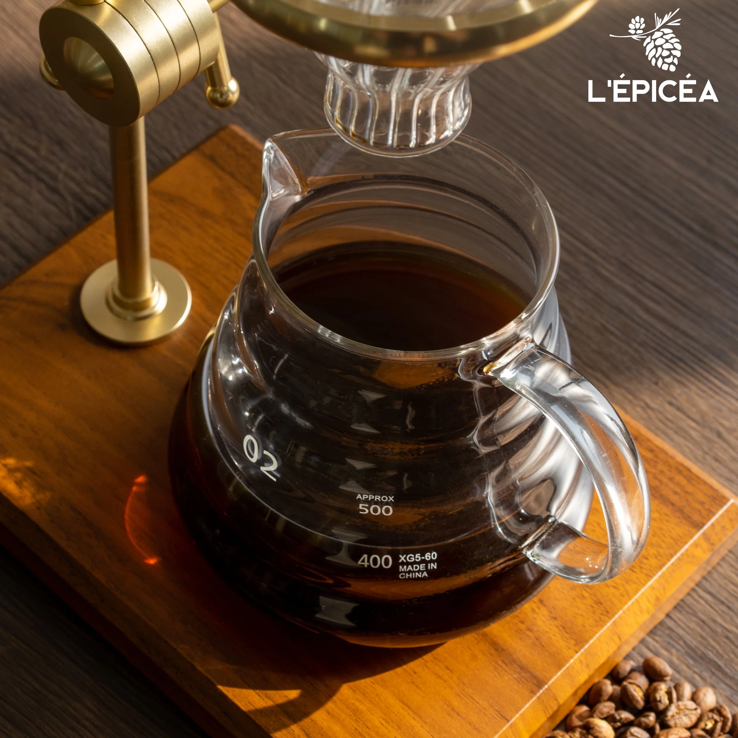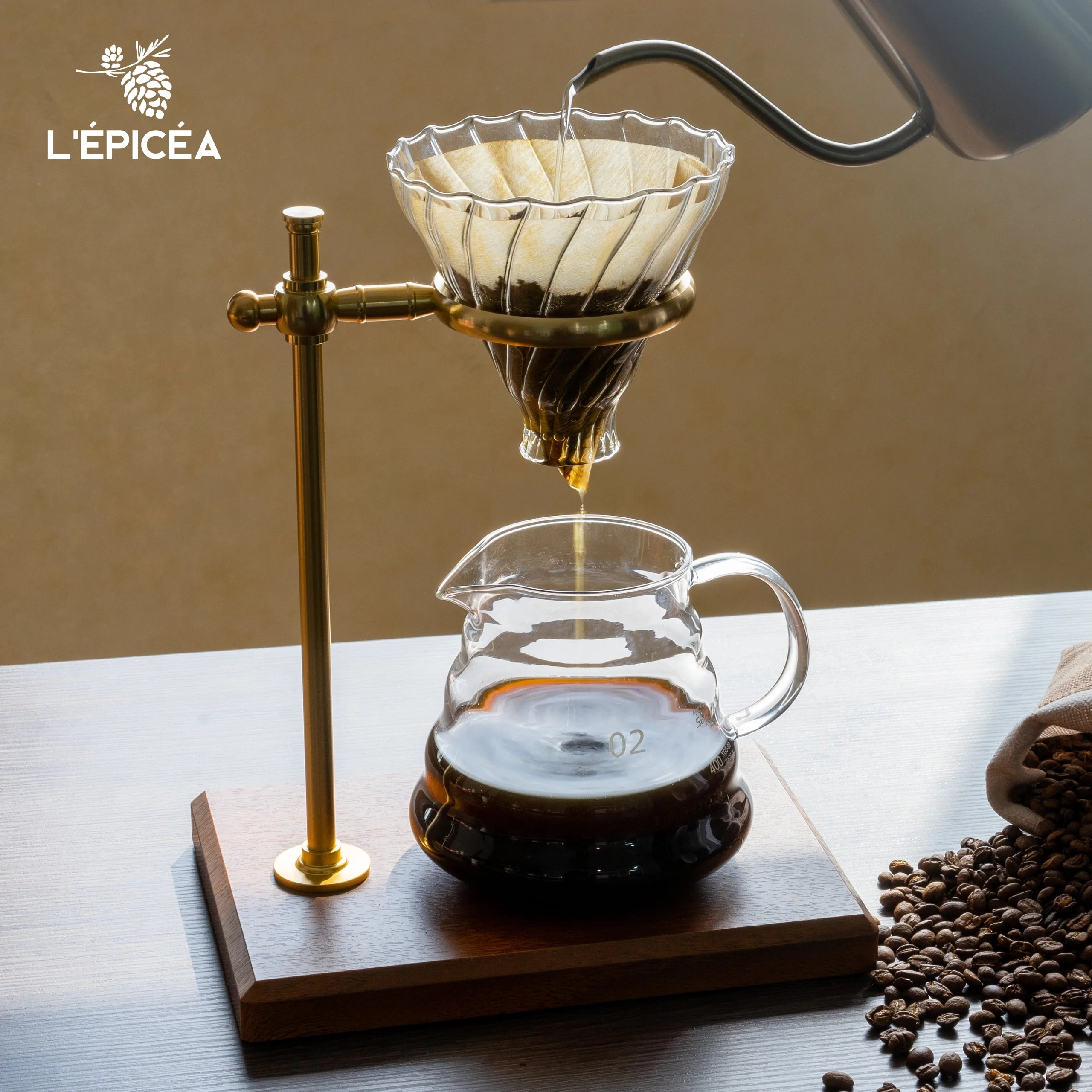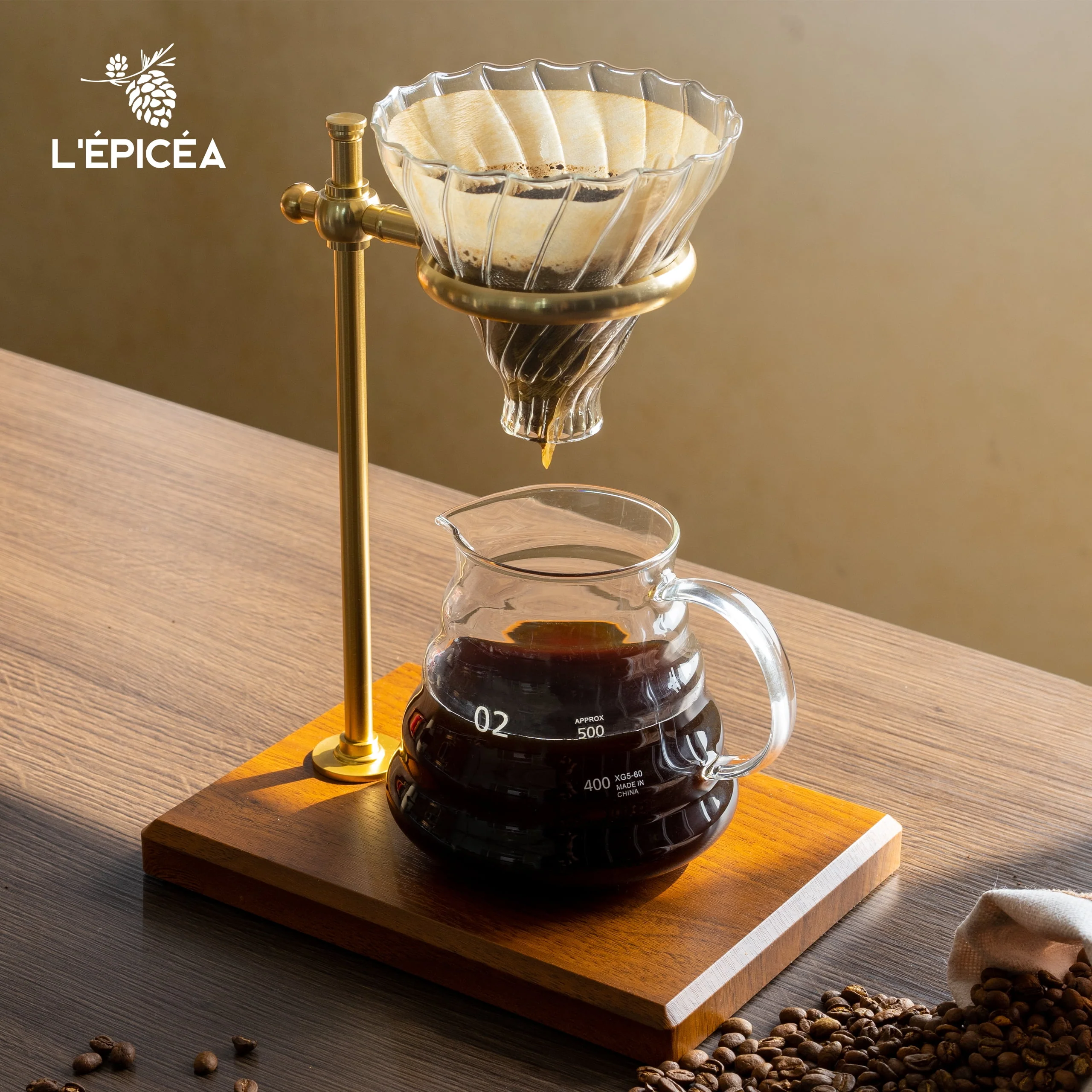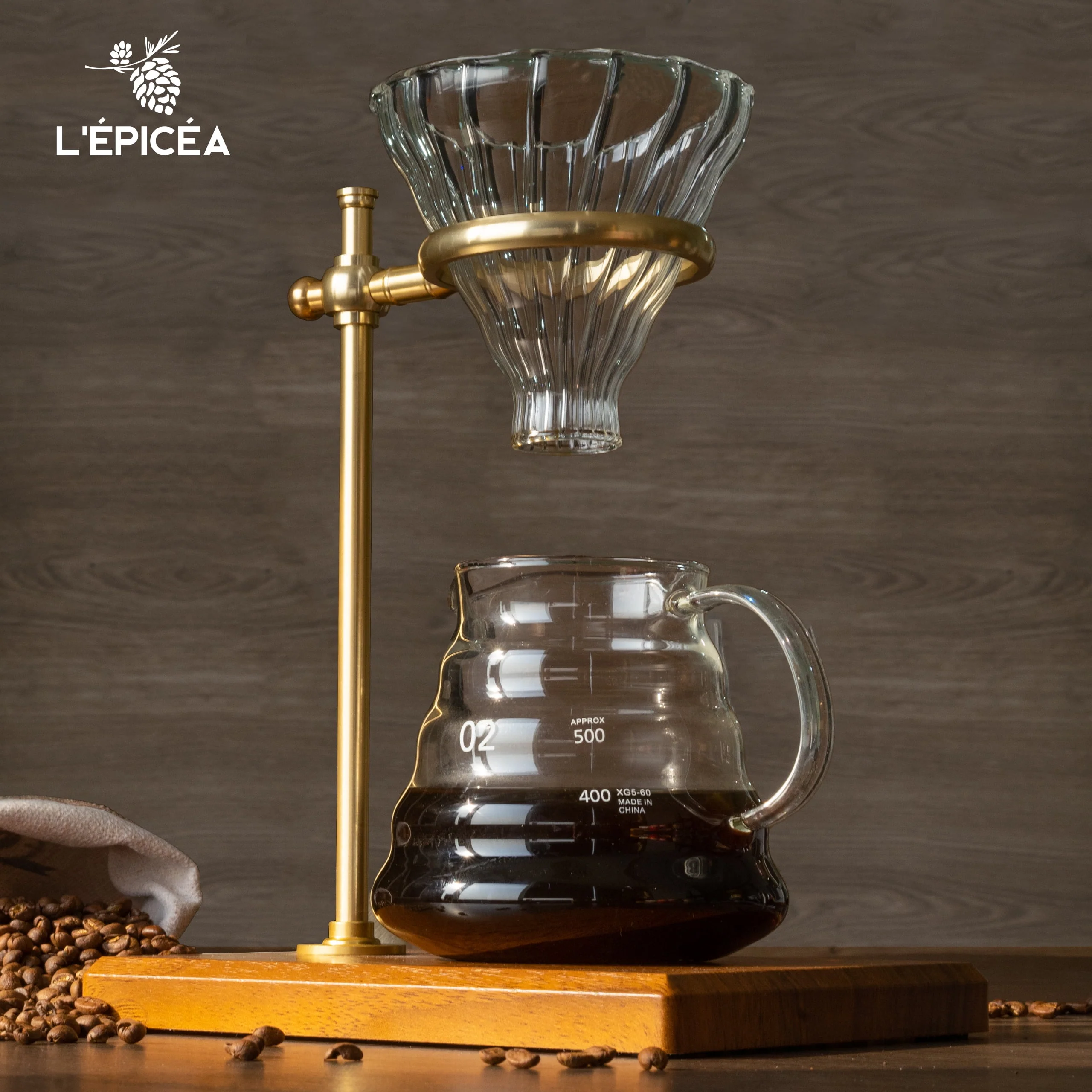 L'ÉPICÉA Pour over Coffee Maker Set,Stainless Steel Stand, Wooden Base, Glass Coffee Dripper