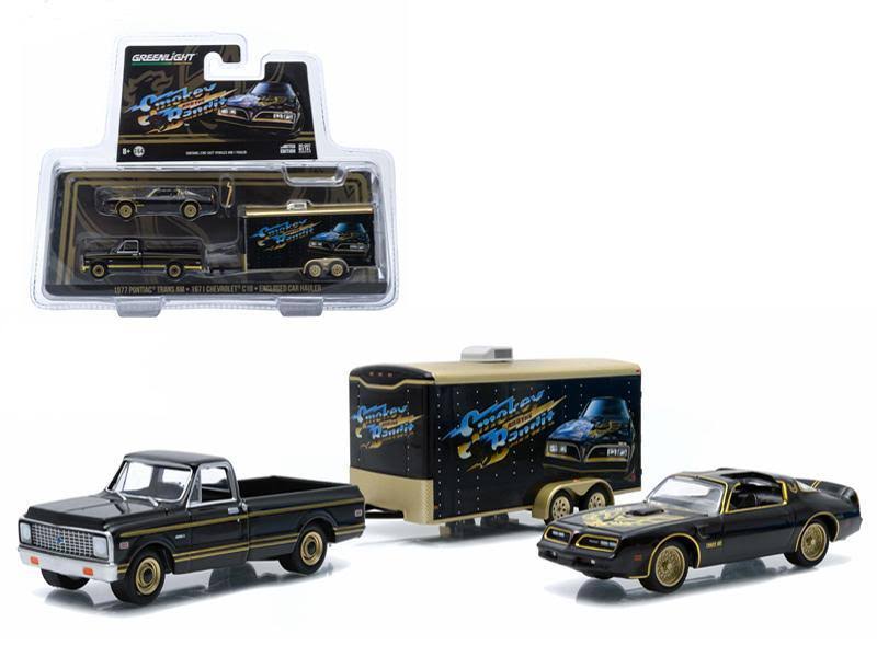 1977 Pontiac Firebird Trans Am u0026 1971 Chevrolet C10 Pickup with Enclosed Car Hauler Set Smokey and The Bandit Movie - Avayadevconnect