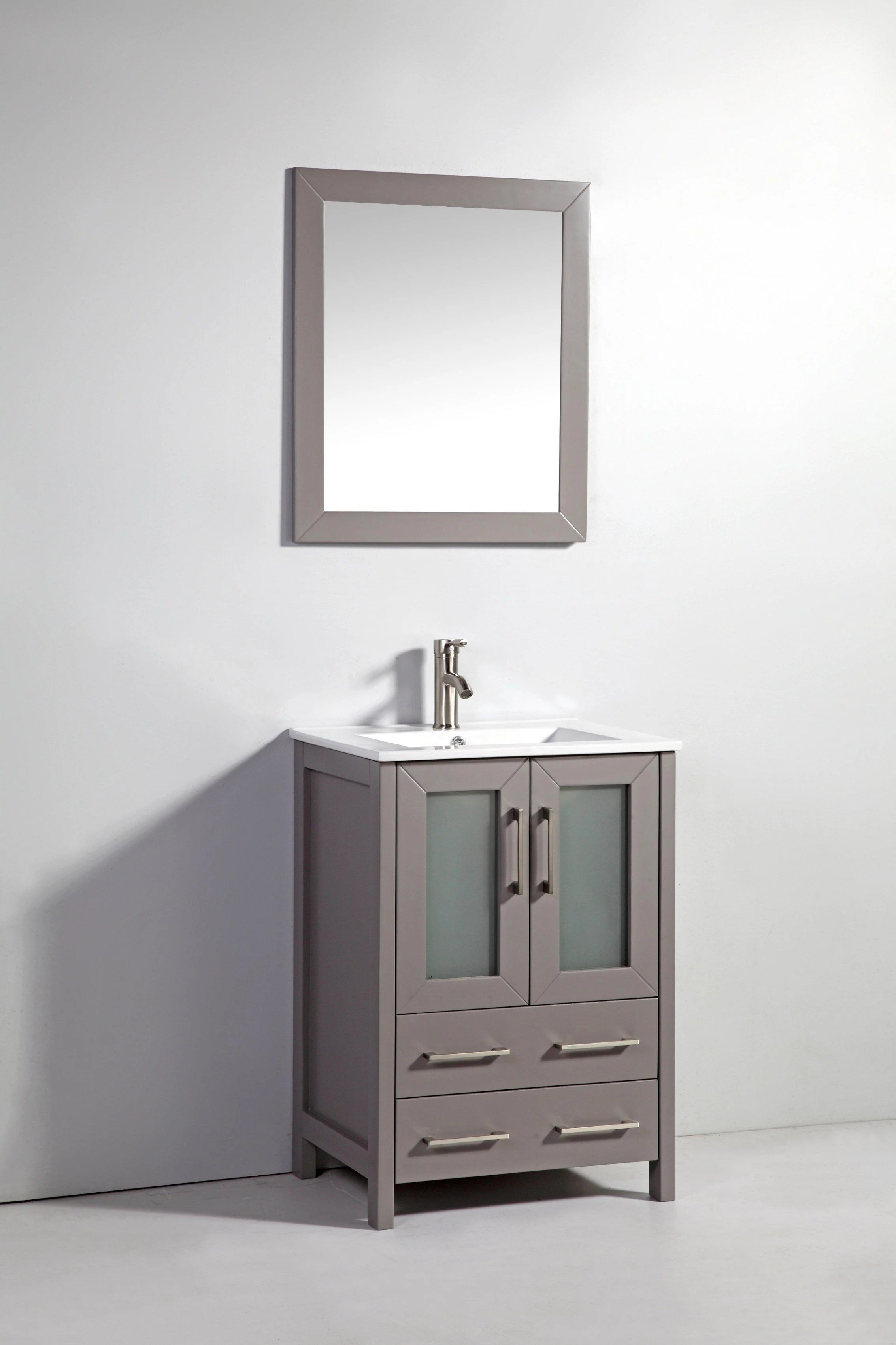 Vanity Art 24 in. Single Sink Vanity Cabinet with Ceramic Sink & Mirror - Grey, VA3024G