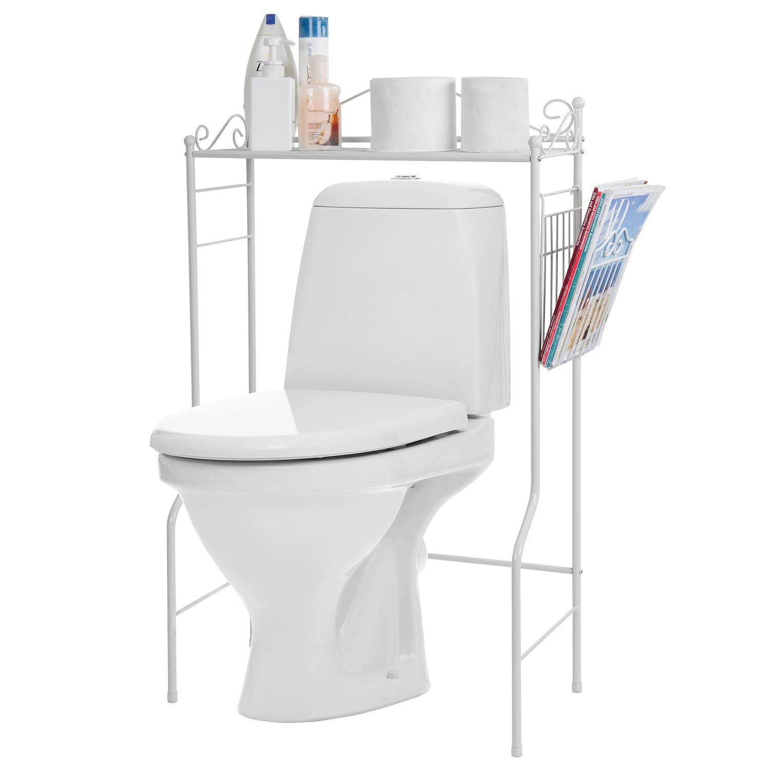 Space Saver Design Metal Storage Organizer Rack / Freestanding Bathroom Shelf w/ Magazine Basket, White - Avayadevconnect